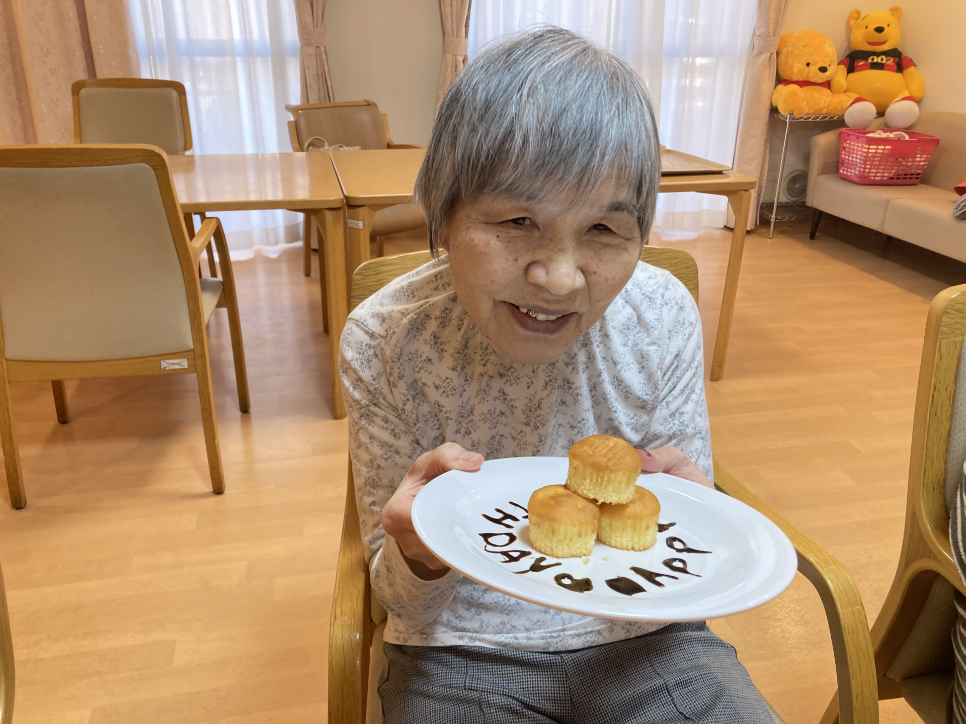 朝からD様はとても穏やかな表情で、職員や他のご利用者様からの「お誕生日おめでとうございます」の声に、笑顔で応えてくださいました。