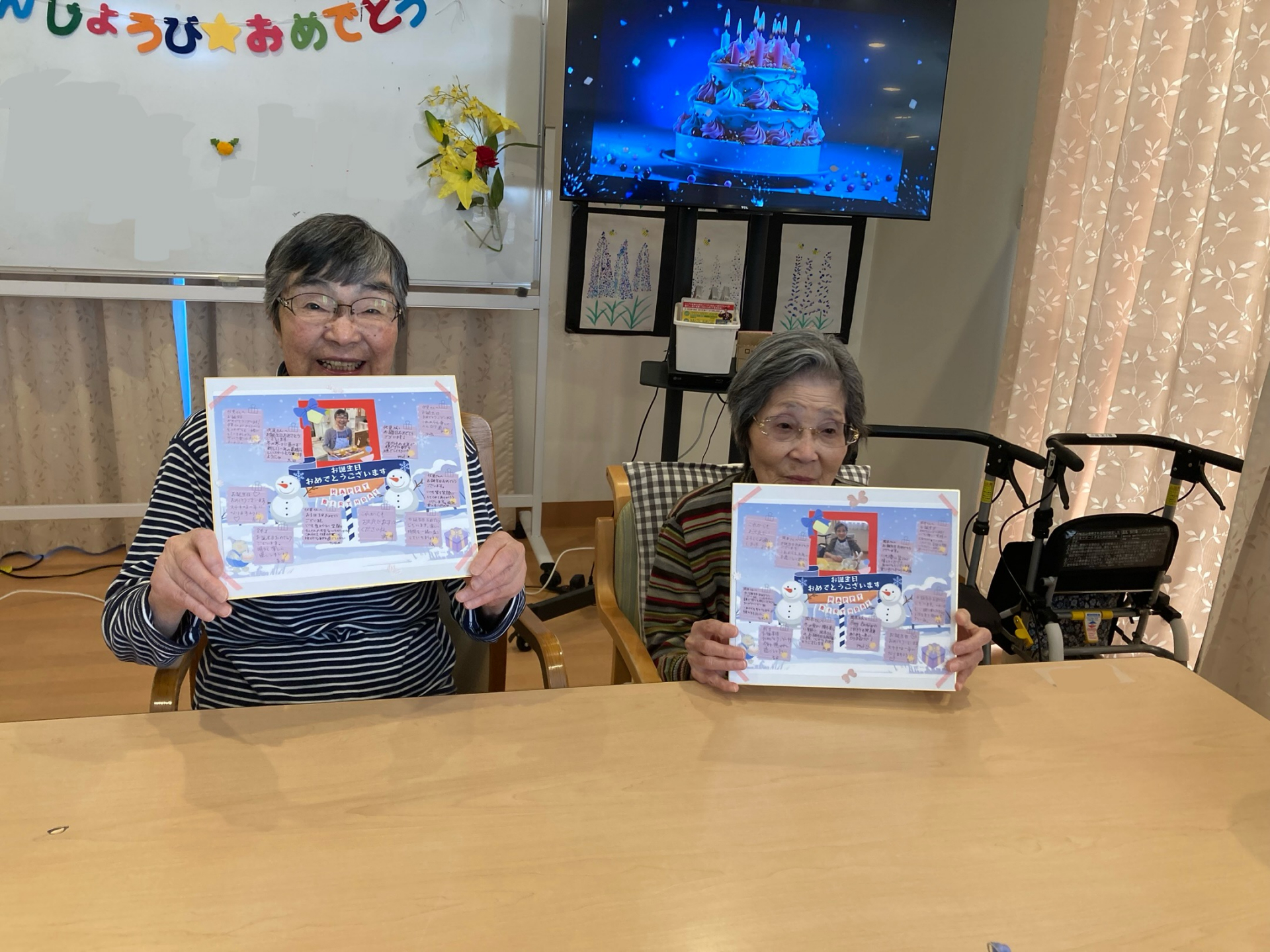 本日は、1月生まれのF様とO様のお誕生日を、皆さんとスタッフで一緒にお祝いしました。