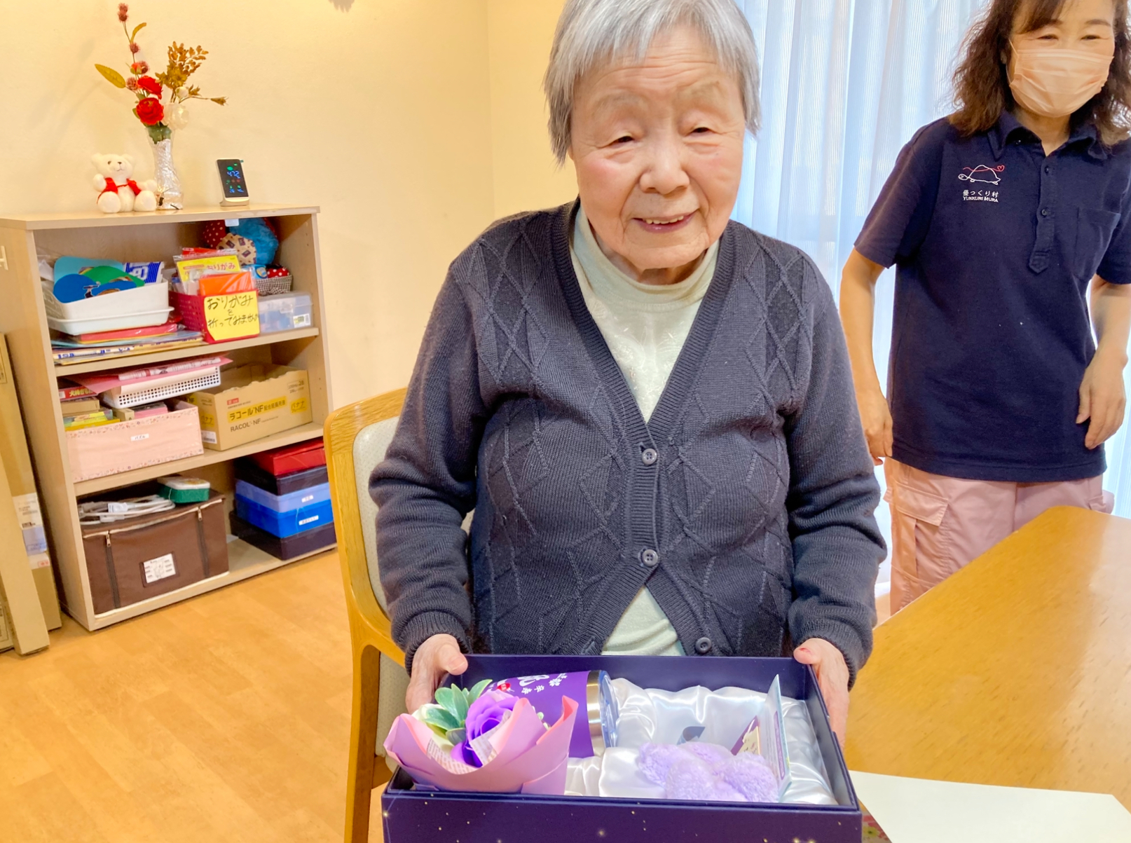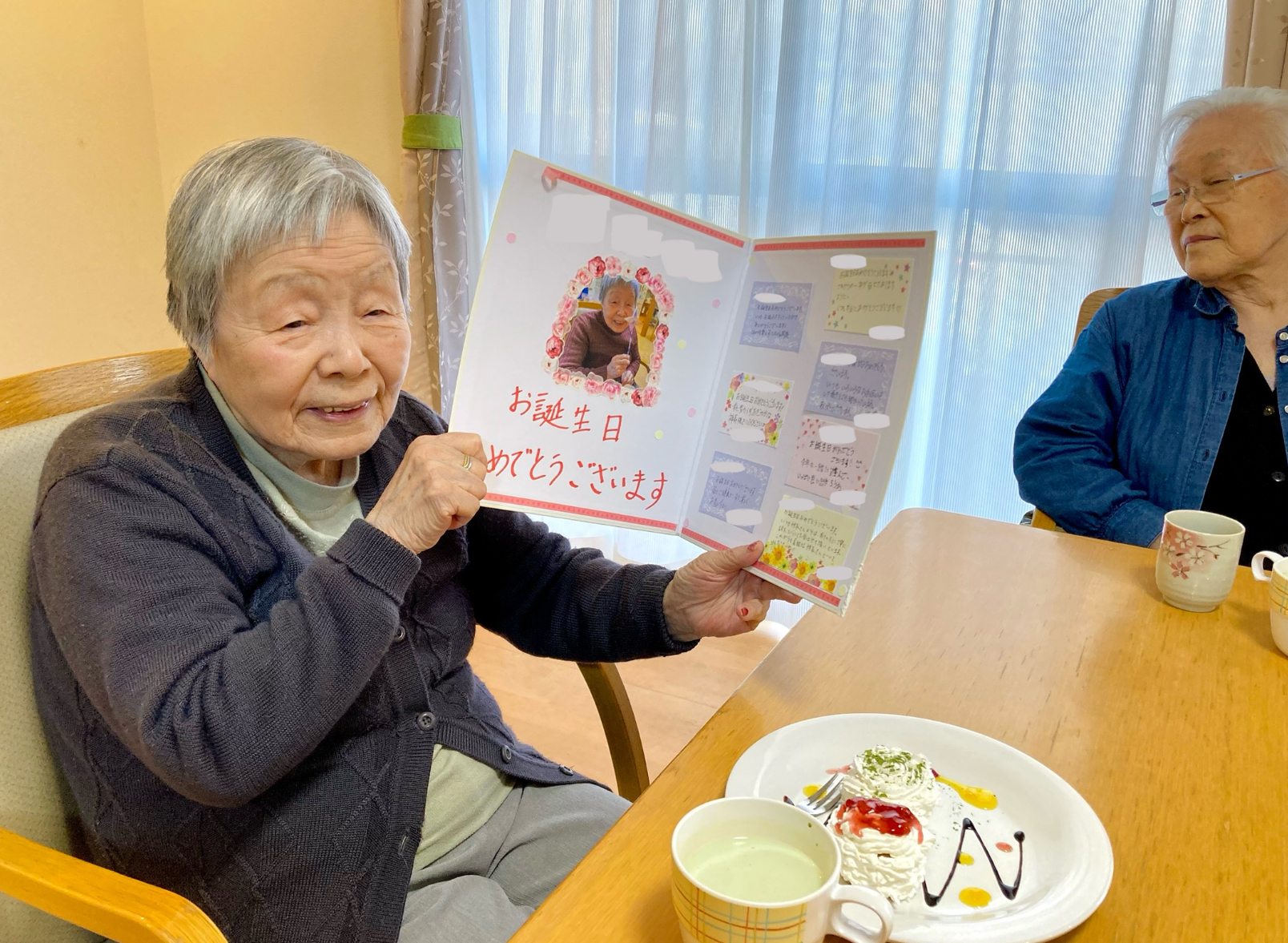 会場は大きな拍手に包まれ、その後、誕生日プレゼントとともに、心を込めて書いたバースデーカードをお渡ししました。