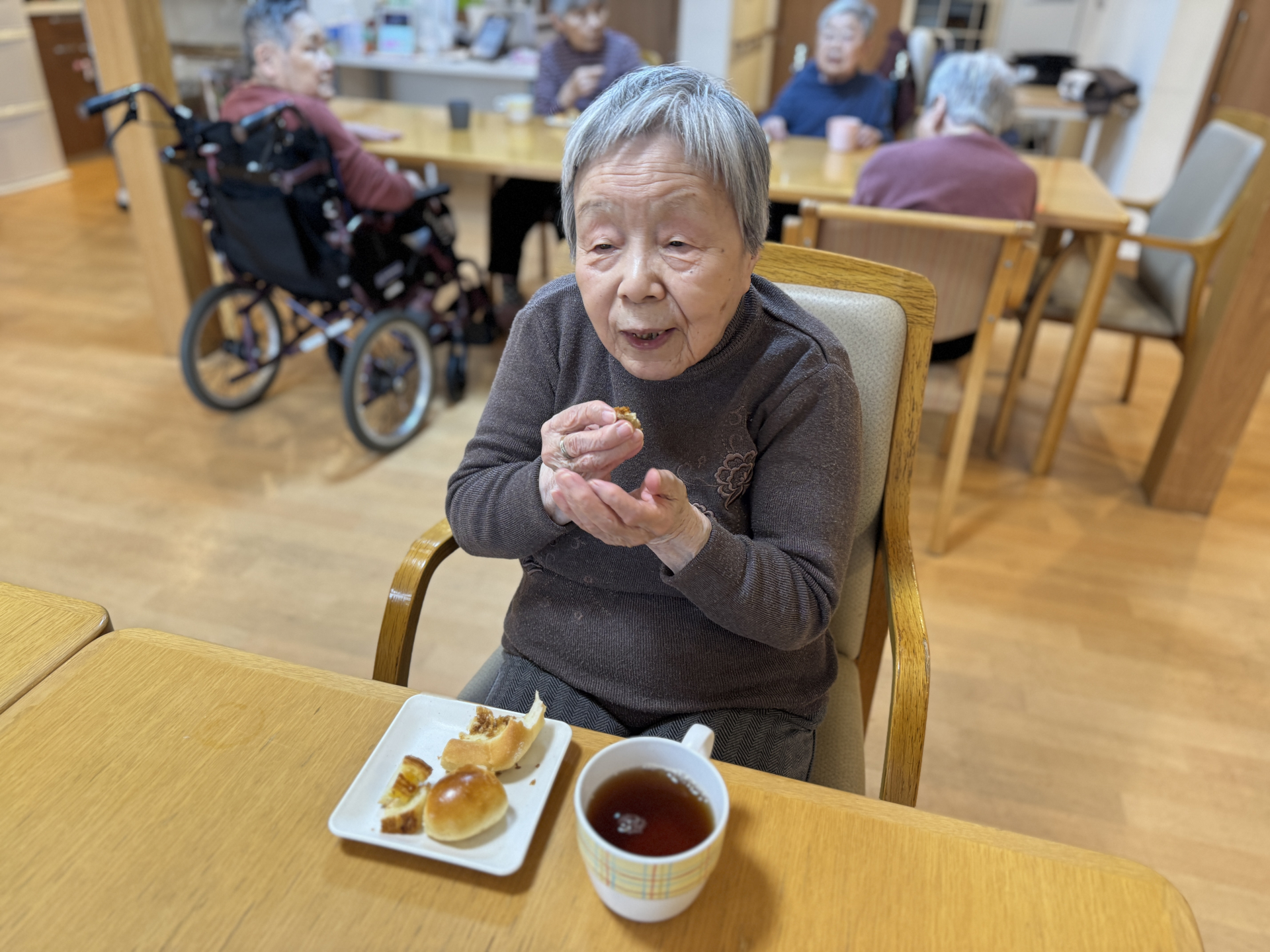 3時のおやつでパンを召し上がって頂きました。