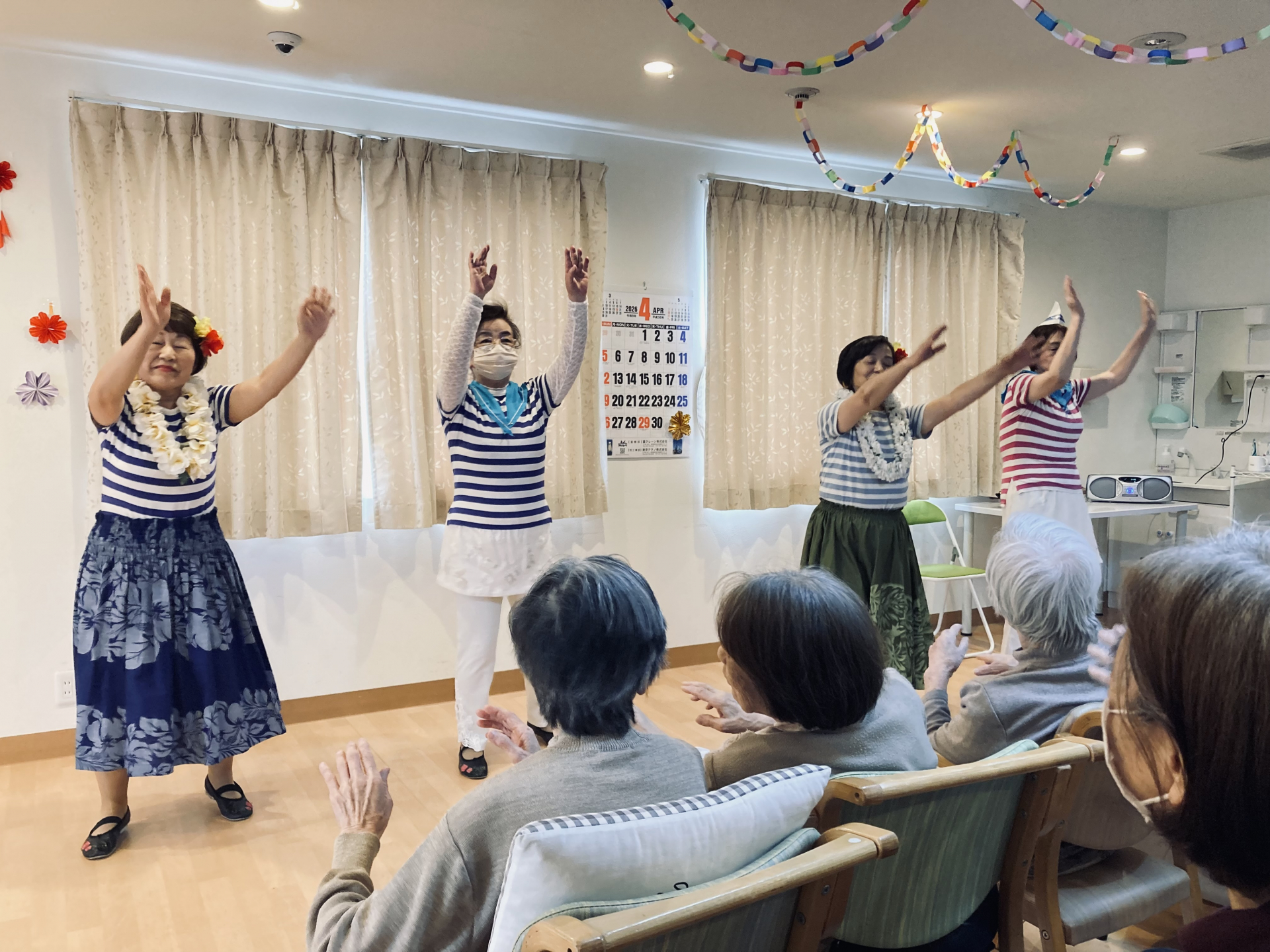 本日は、ボランティアの皆さまが来てくださり、皆さんと一緒にダンスを楽しみました、、、(笑)