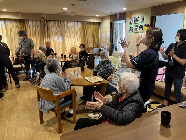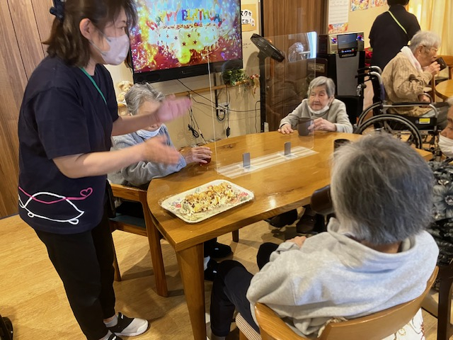 ご利用者様と職員でhappybirthdayソングを歌い♪🙌🙌