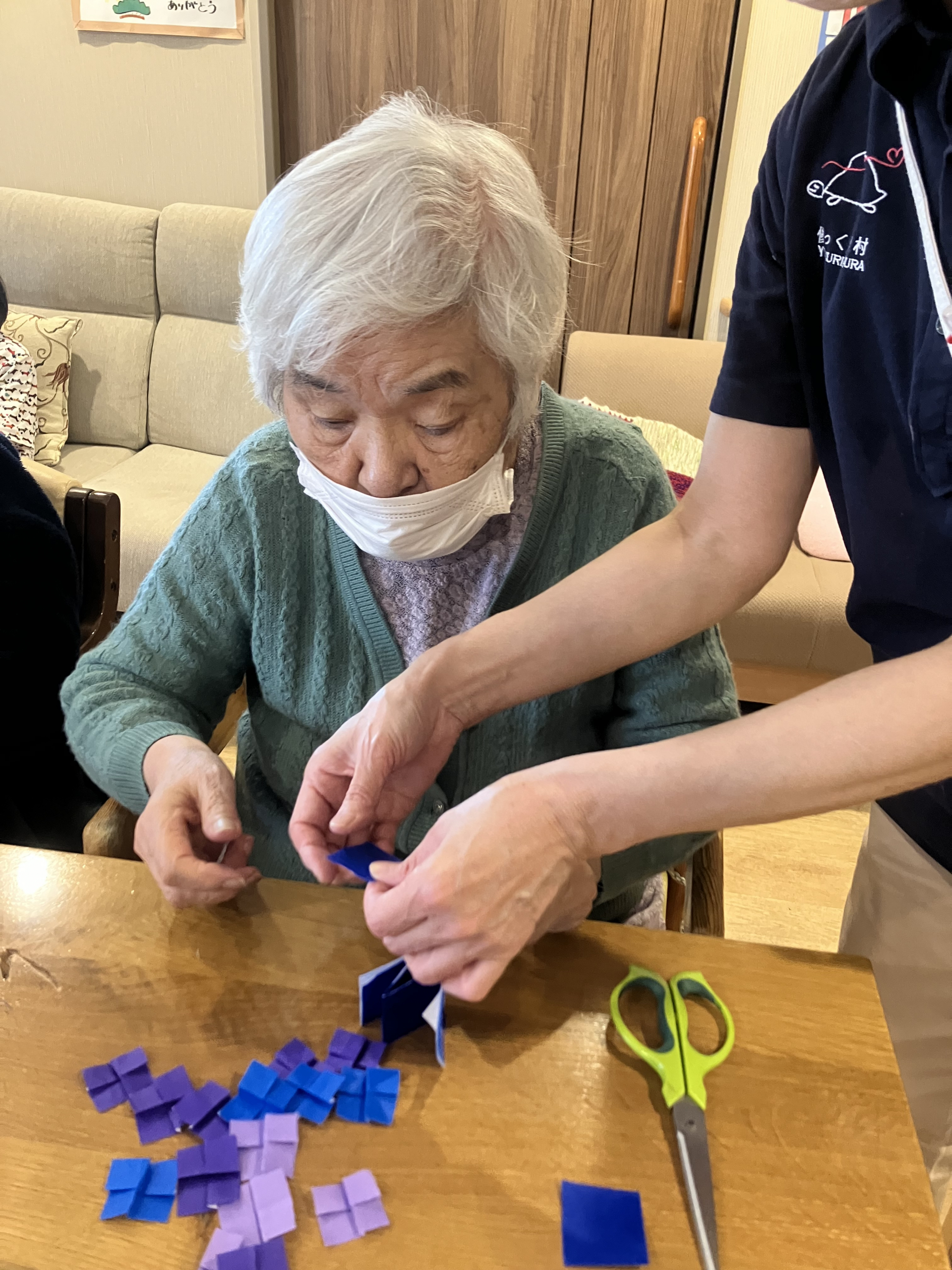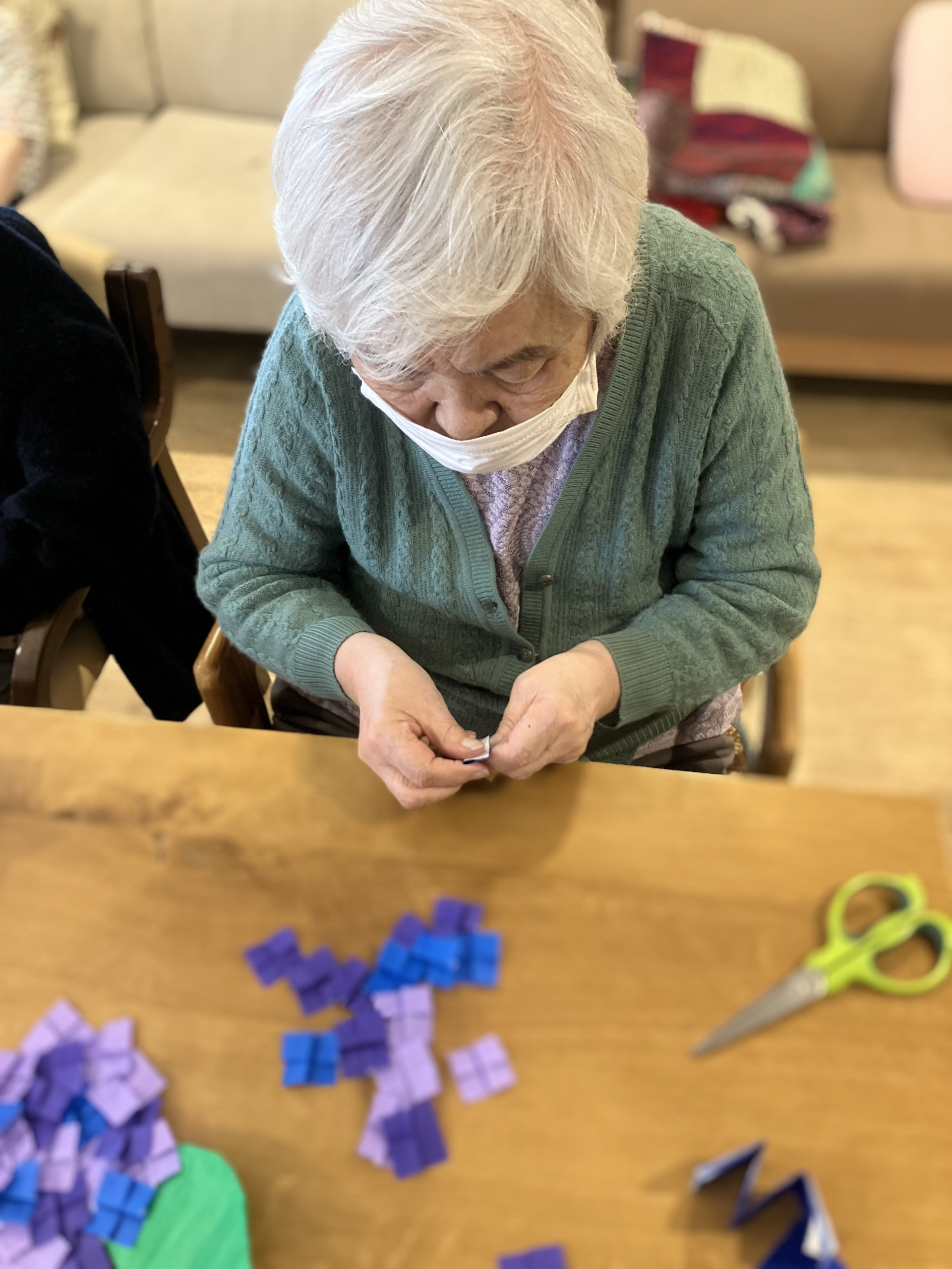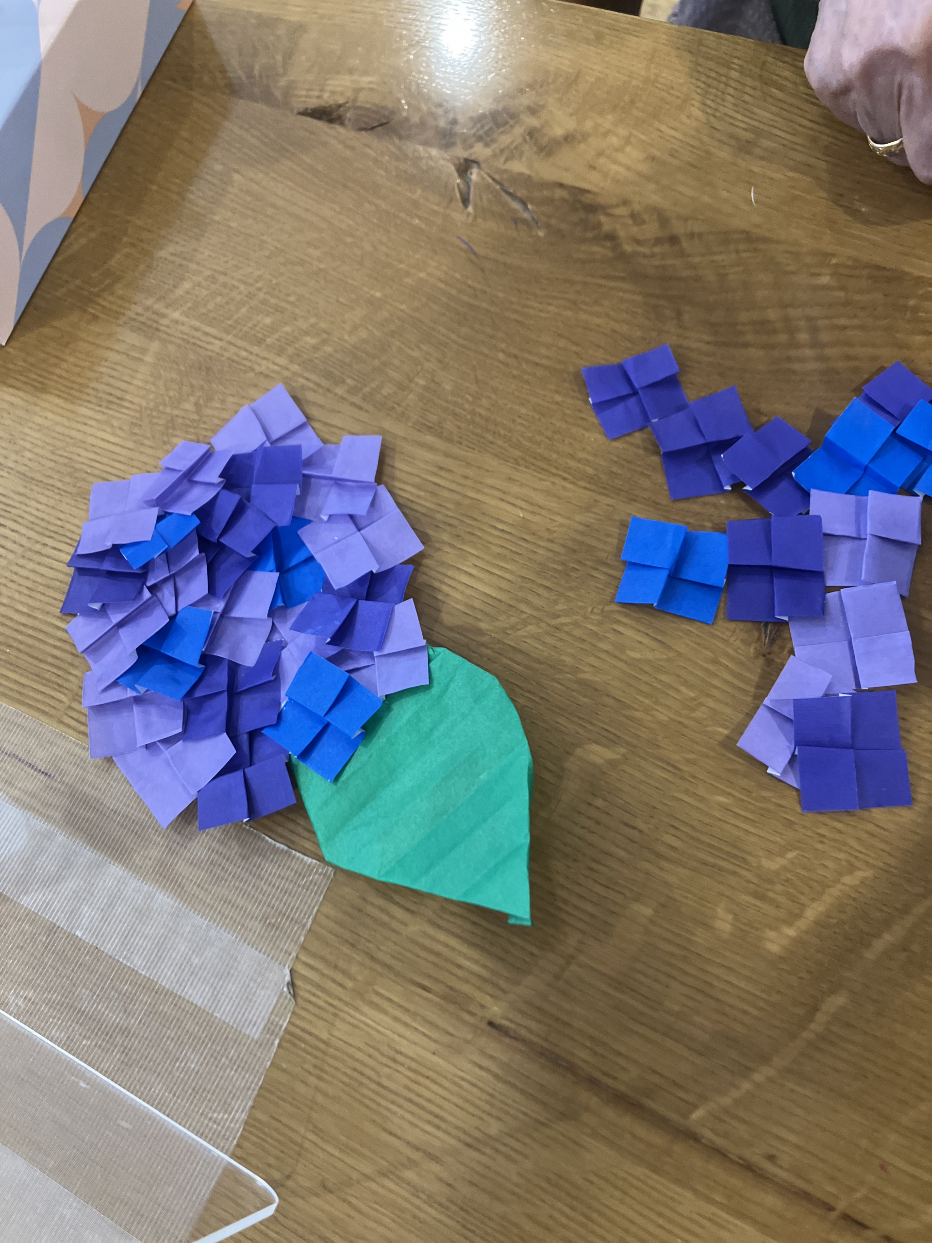 組み立てて貼り付けて「紫陽花」を作成しています✨