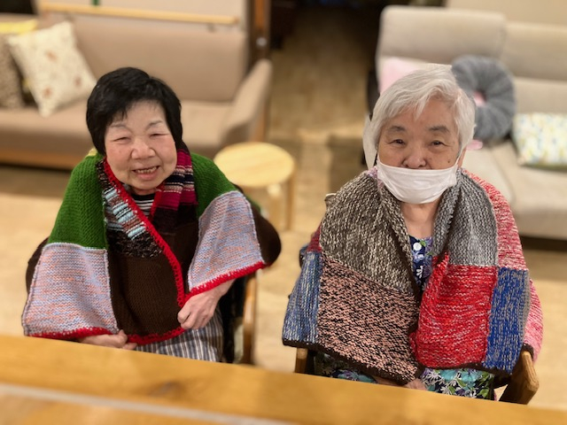 少し肌寒いと仰られたお二人に職員が肩掛けを(*^^*)
