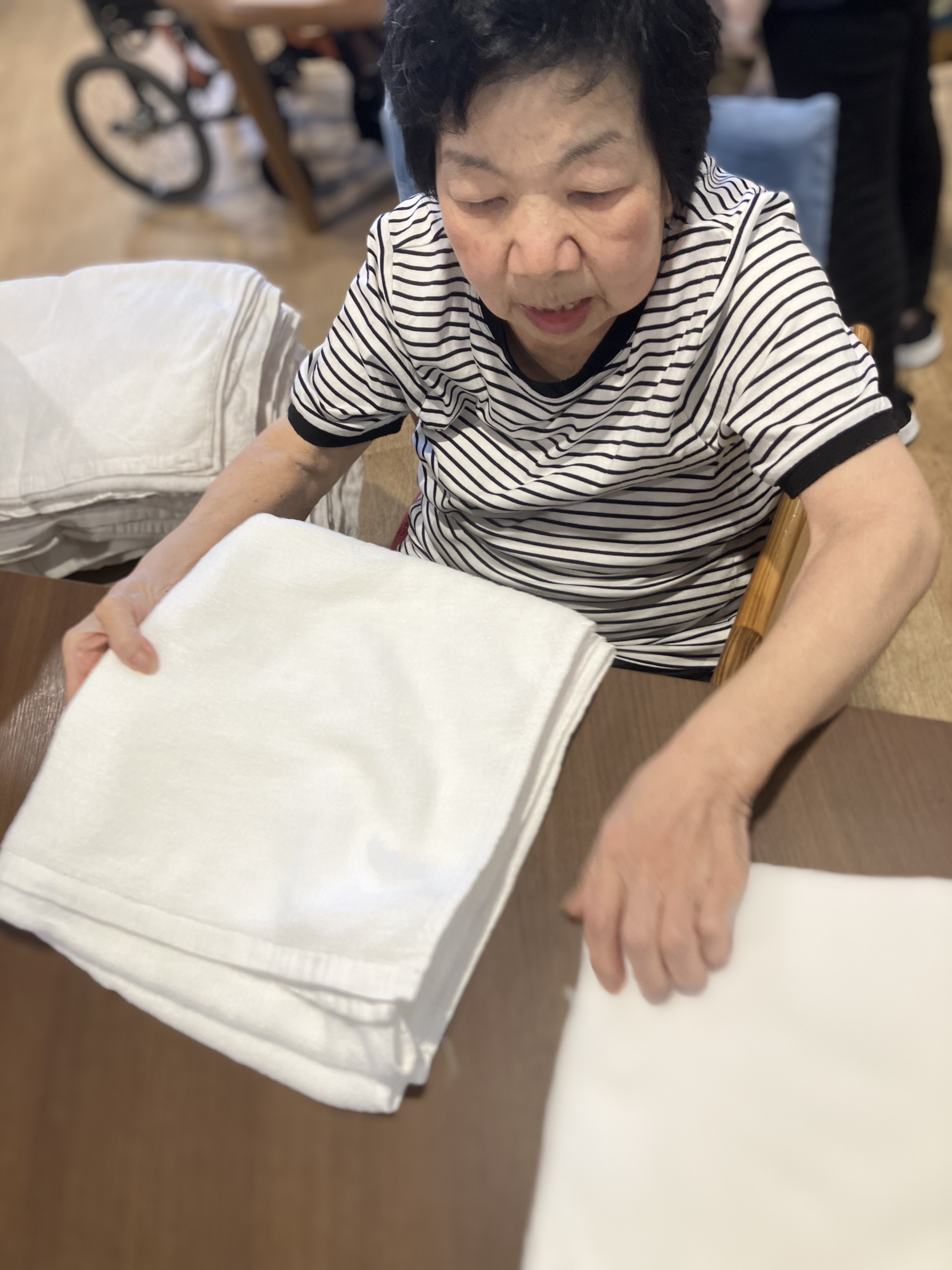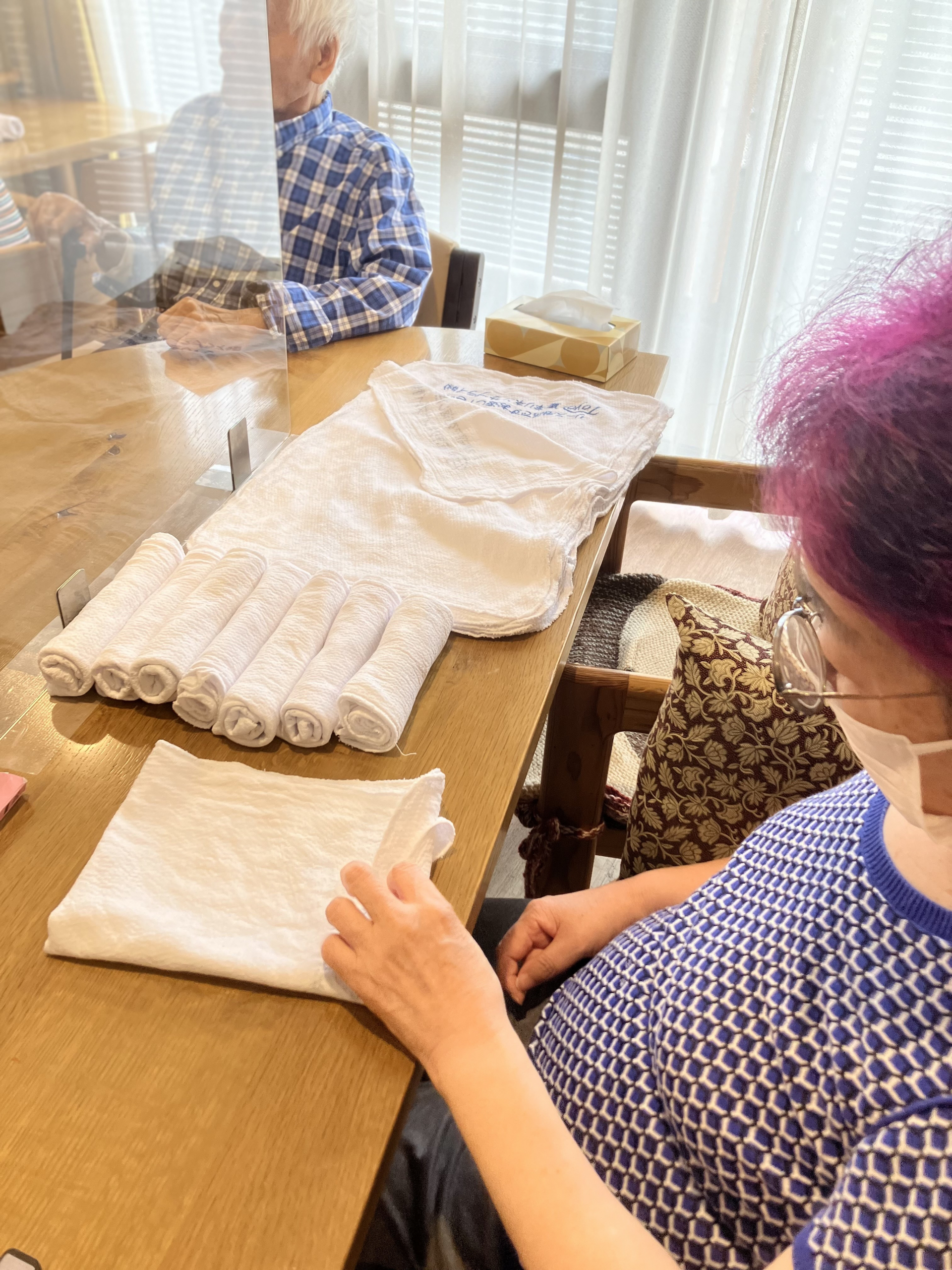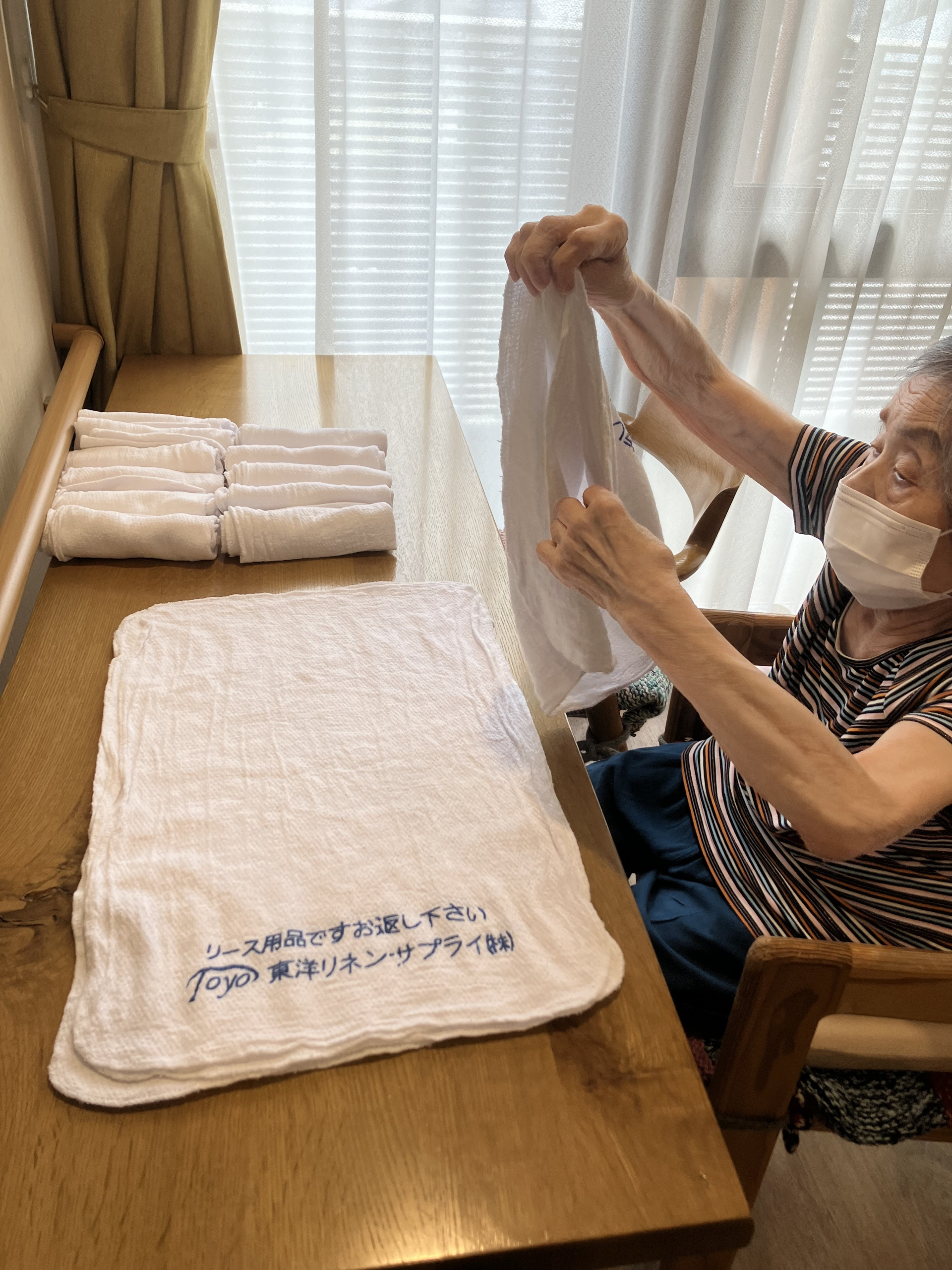 リネンたたみのお手伝いを女性陣にお願いいたしました(^_-)-☆