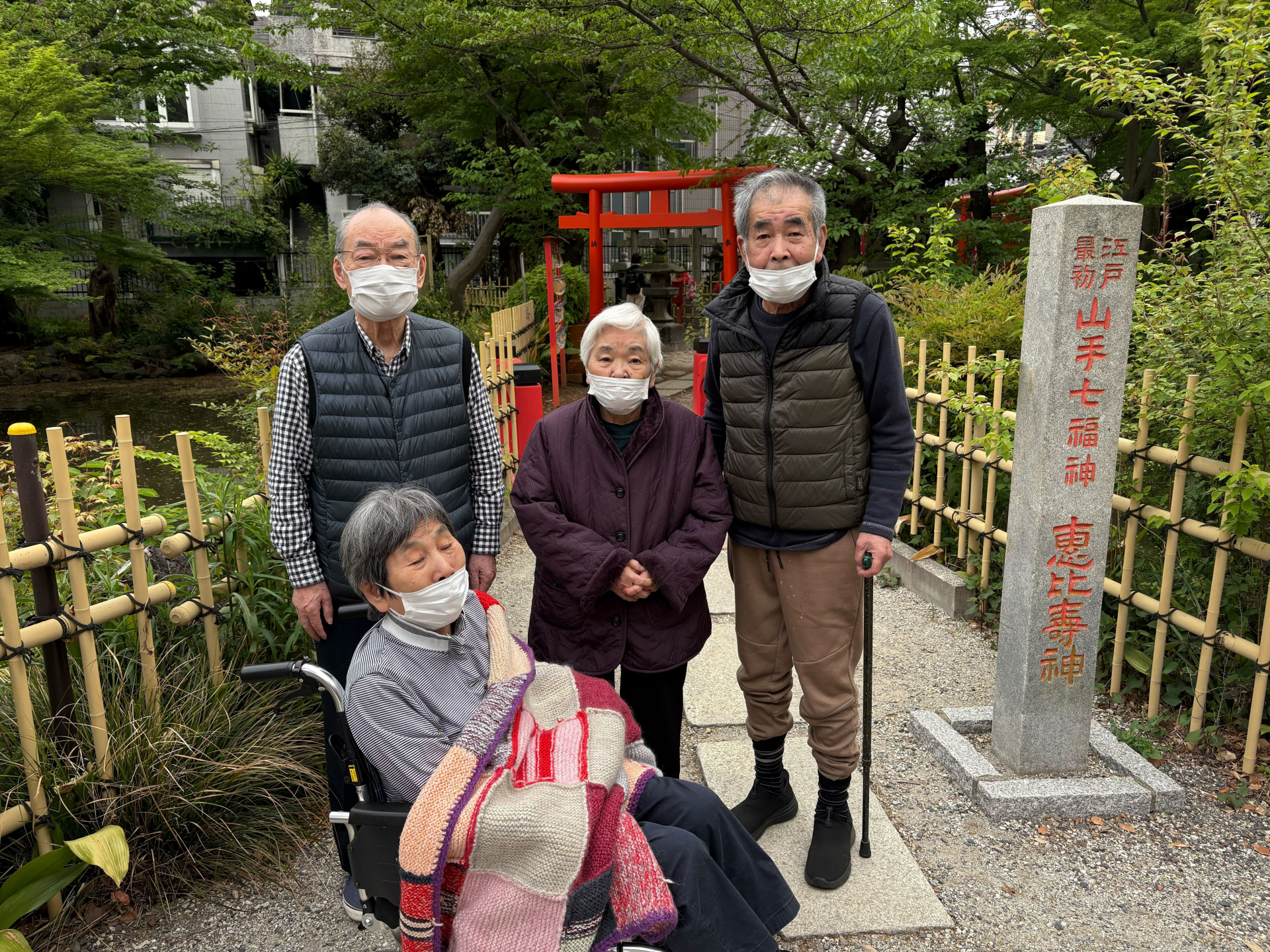 この日は4名のご利用者様と一緒に七福神を祀った神社へドライブに行きました。