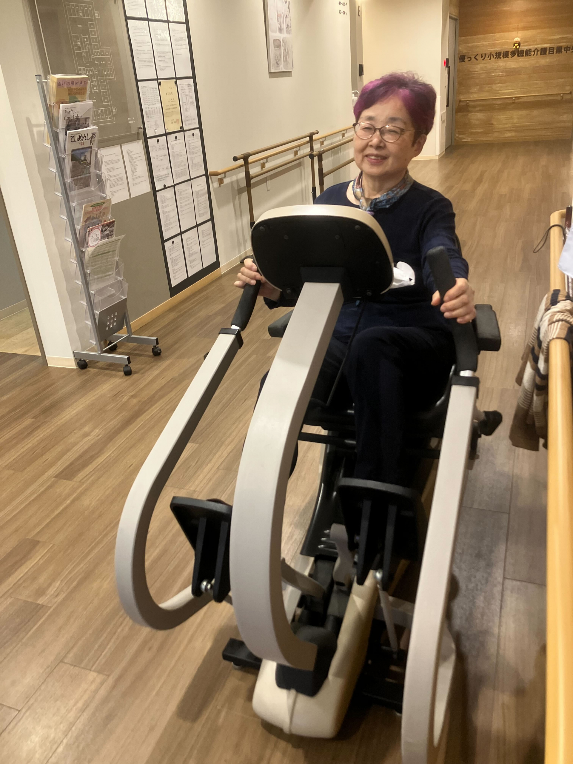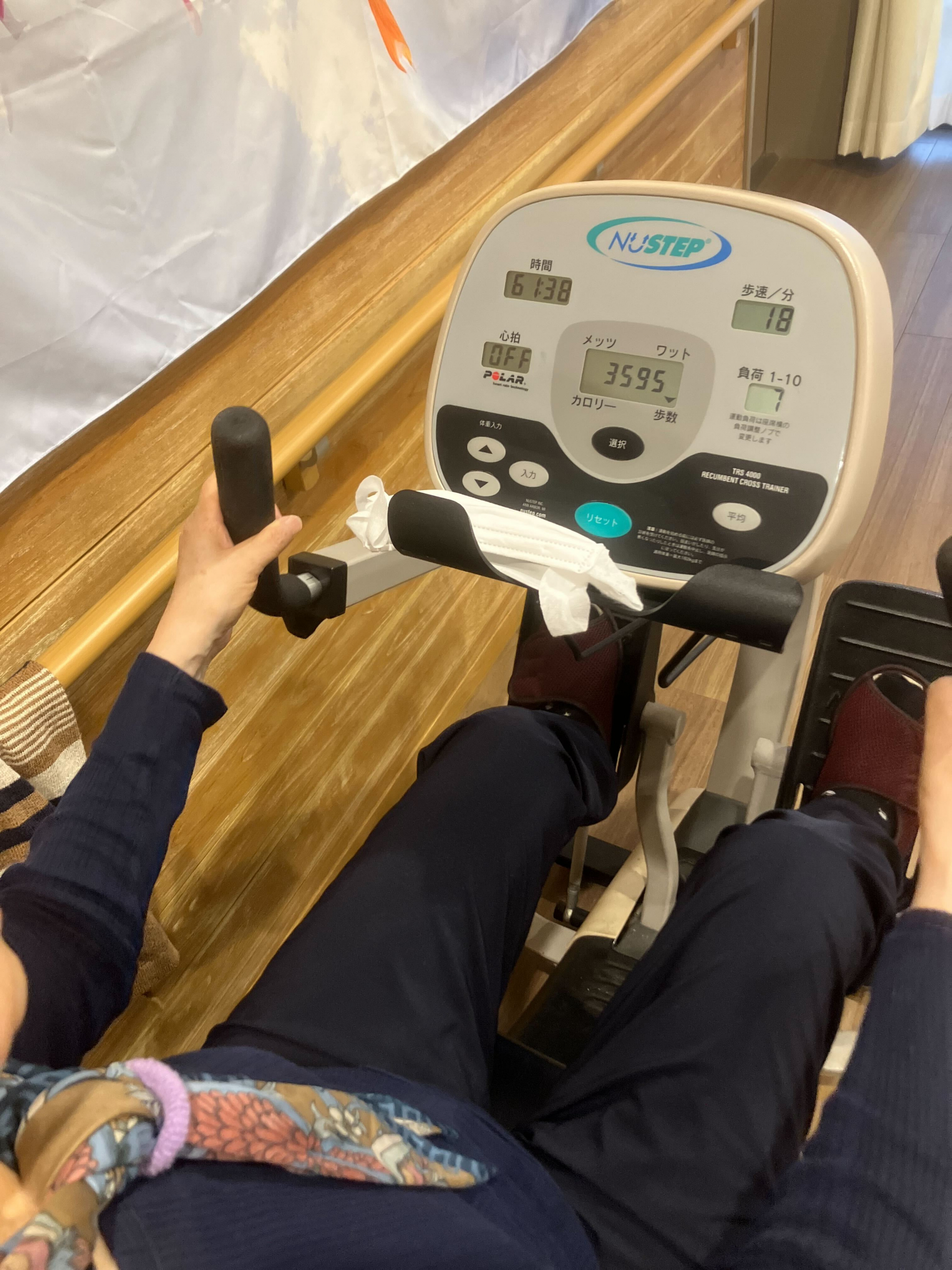 職員と会話されながら笑顔で漕いでおられます(^_^)