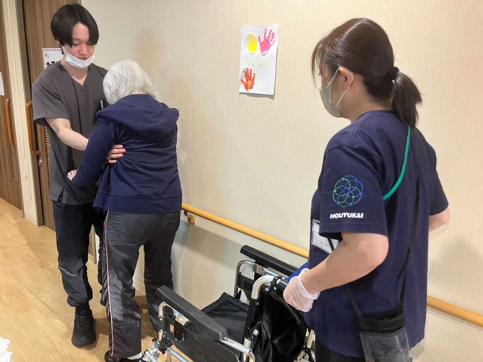 左で支えている職員は看護師M 右のサッカーTシャツ職員は入浴担当だったH職員(*^_^*)