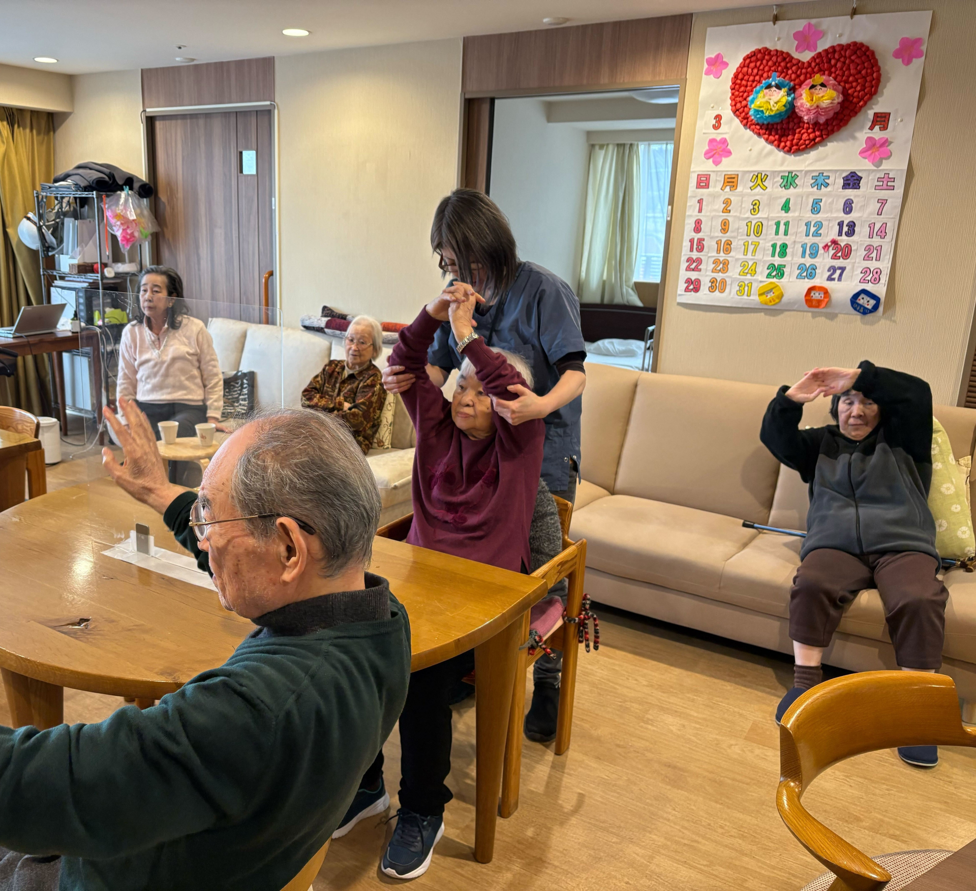 優っくり小規模多機能介護目黒中央 スタッフと一緒に体操