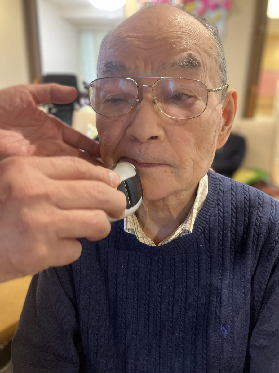 お帰り前に職員による髭剃りを受けられるF様(#^^#)