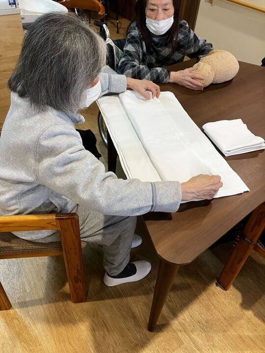 今日は皆様にリネンたたみをお手伝い頂いた様子をお届けします!