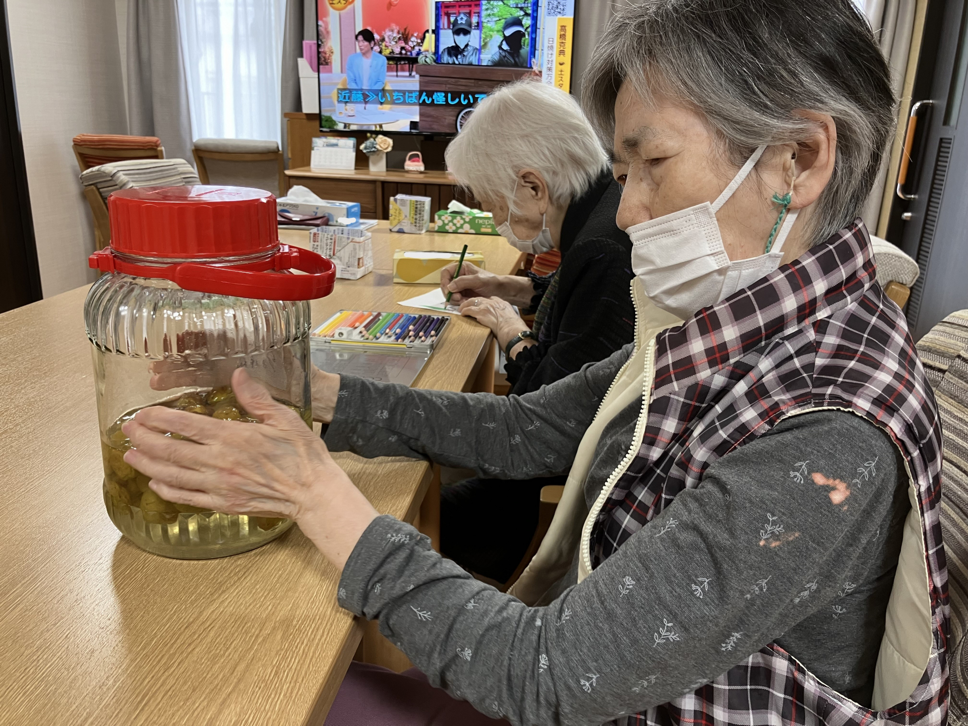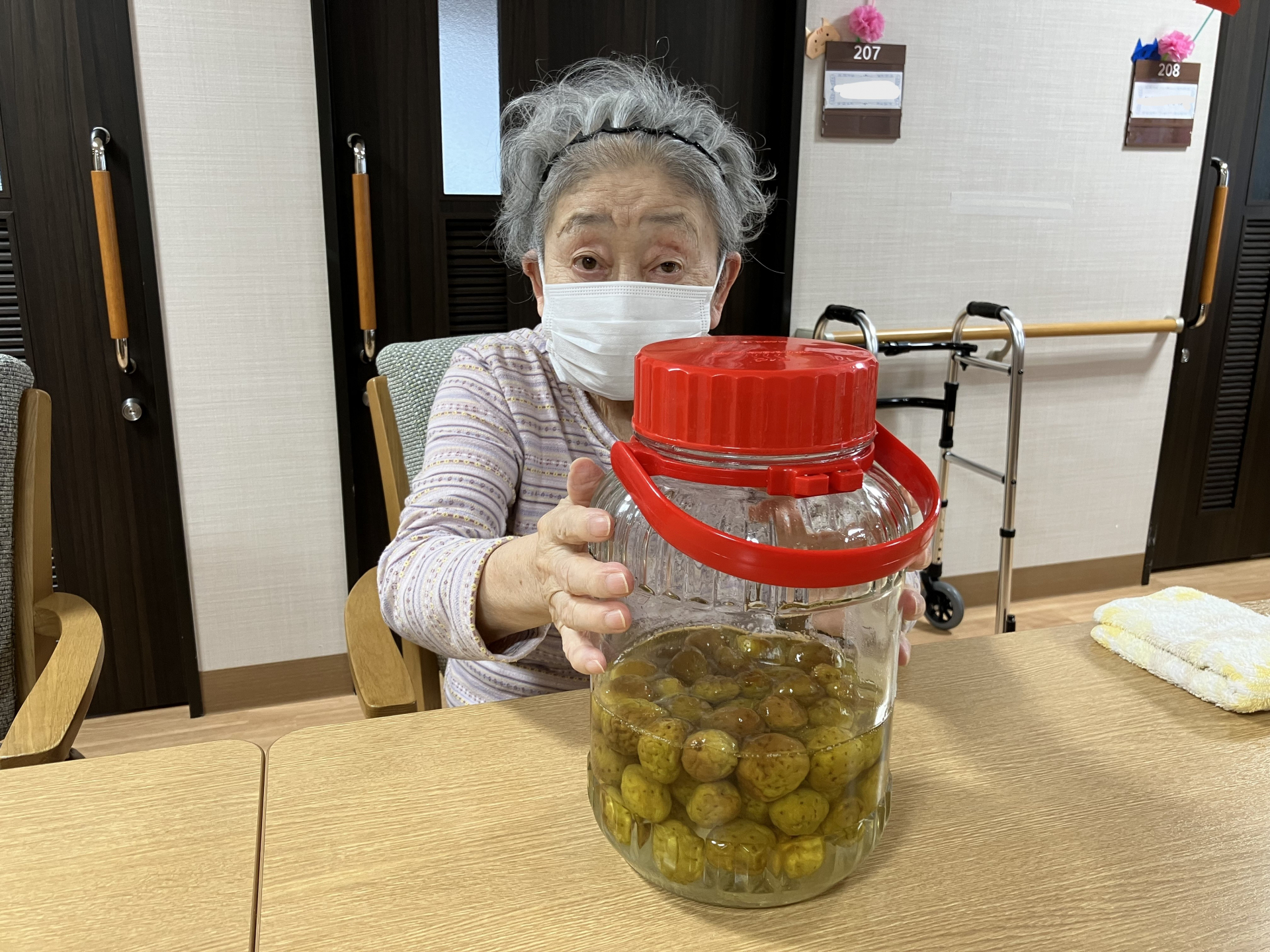 氷砂糖が溶け、段々と梅果汁と混ざり合っています