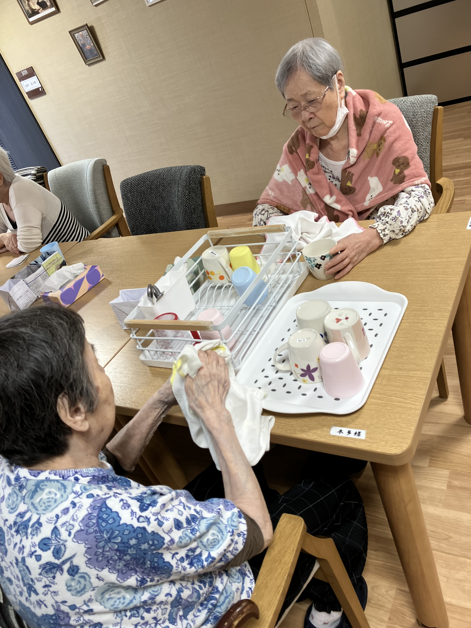ランチ後、お互いに協力して食器洗い、食器拭きを手伝ってくださった。