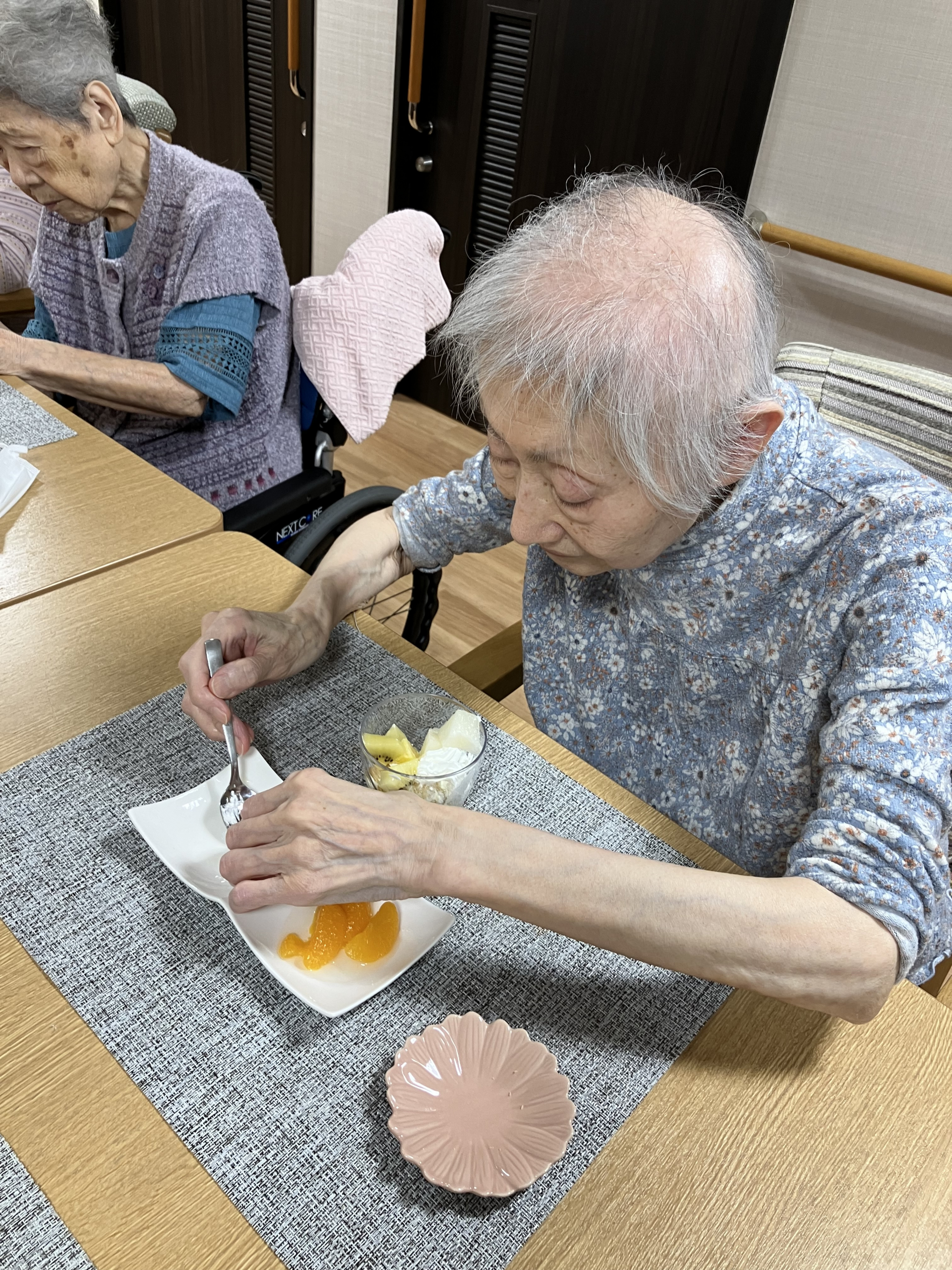 2024.09.22 活動報告(IN) 2階 日中のご様子 Tweet シェアする 皆様でおやつ作りをしました ヨーグルトと果物を使ったフルーツヨーグルトです 旬の梨を使っています こちらは完成したご様子 皆様楽しまれています 優っくりグループホーム豊島南長崎 船山 前の記事 2024.09.22 活動報告(IN) 2階 日中のご様子 次の記事 2024.09.22 活動報告(IN) 2階 日中のご様子 一覧へ戻る