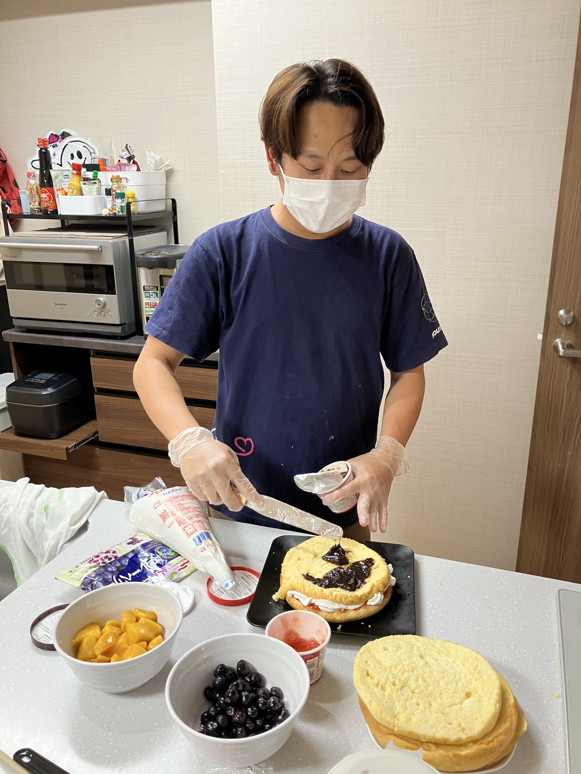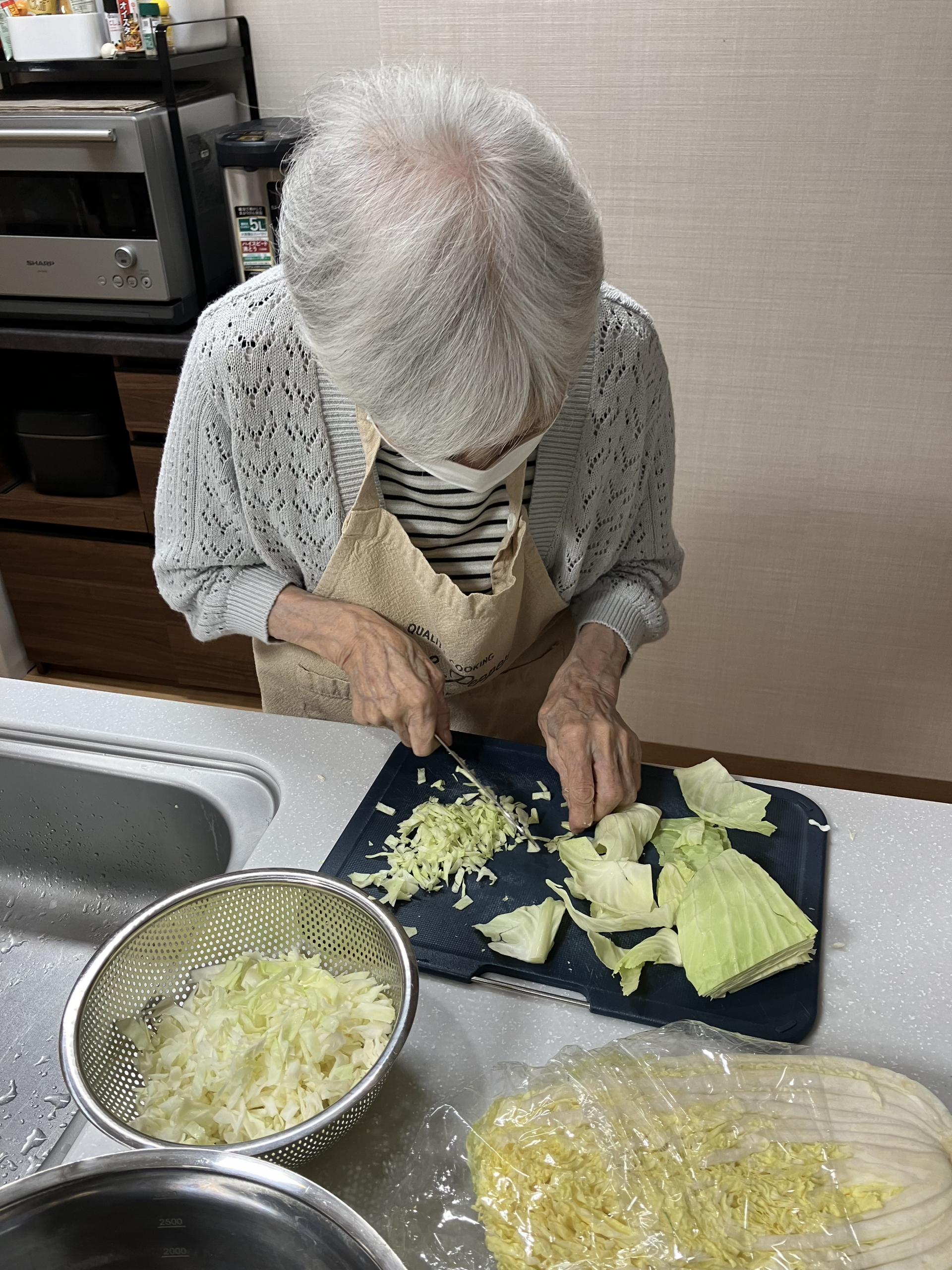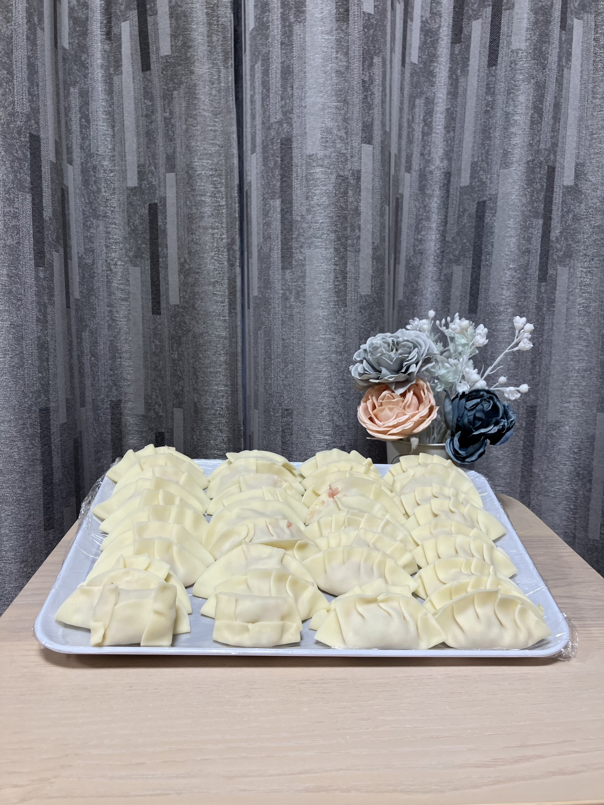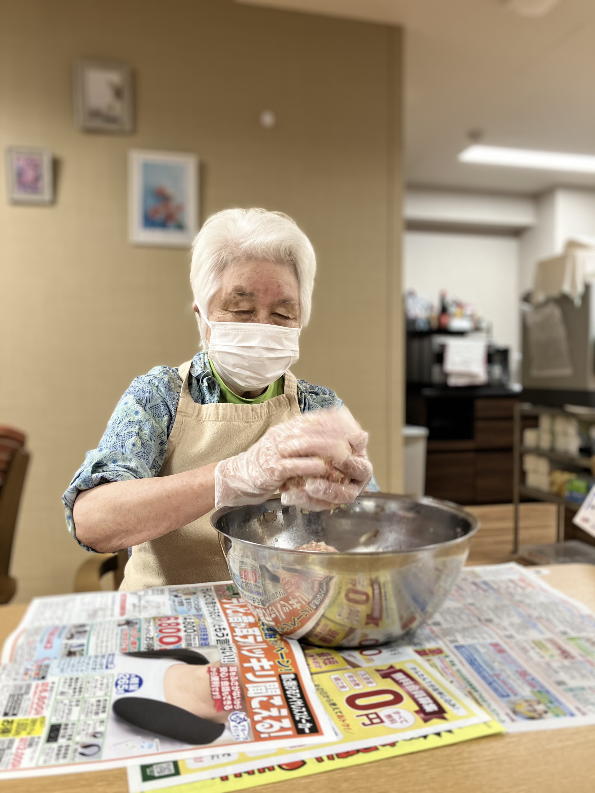 誕生日会 お食事の様子です。まずは餃子を作っているようです。