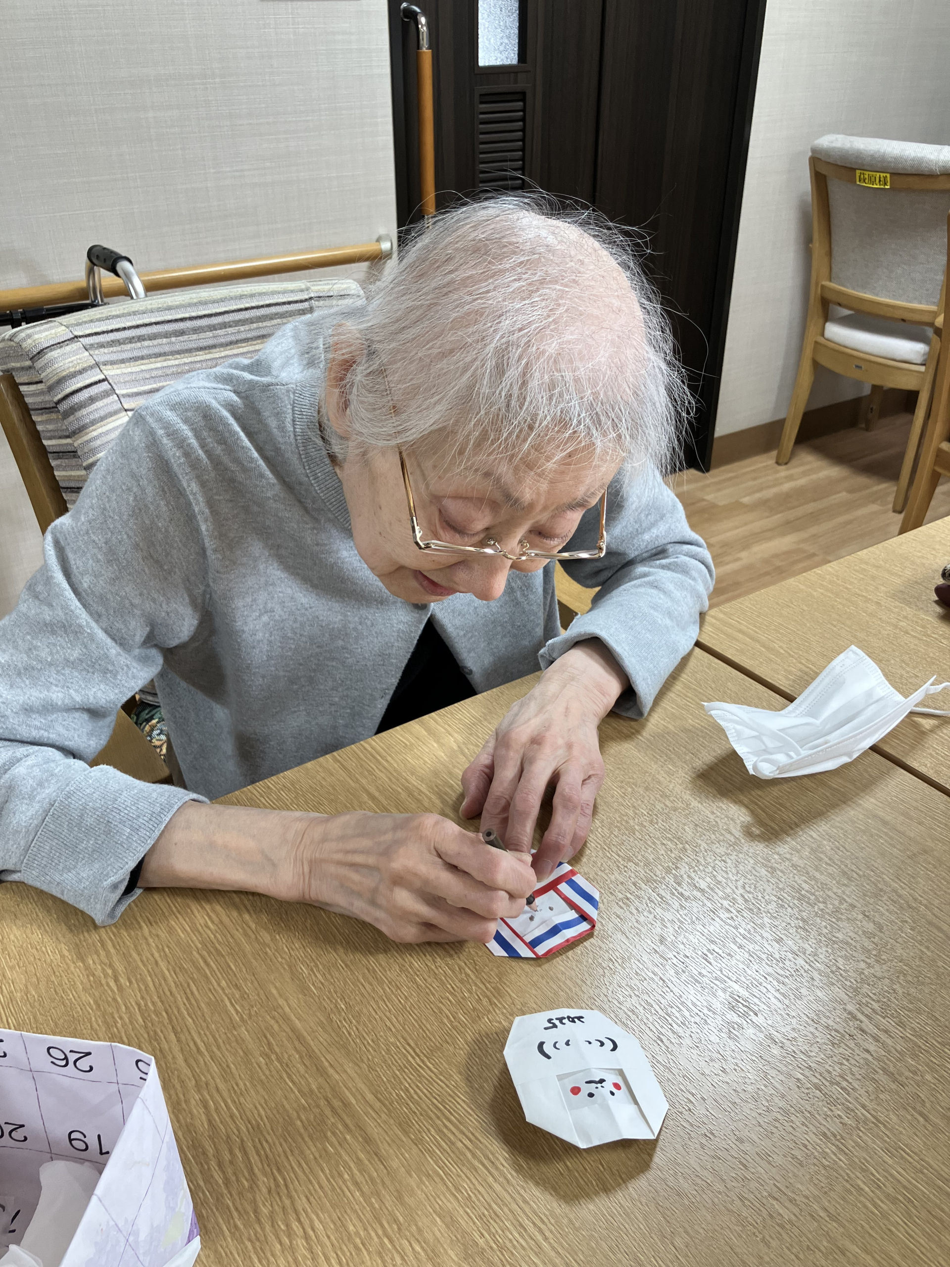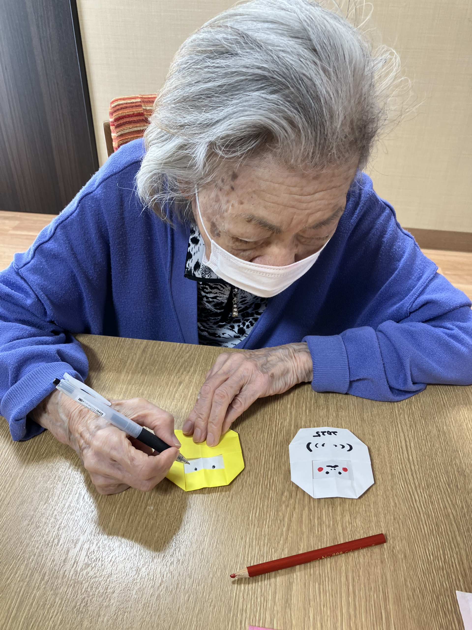 1月となり、折角なので皆様と居室のネームプレートの飾りを作成しました