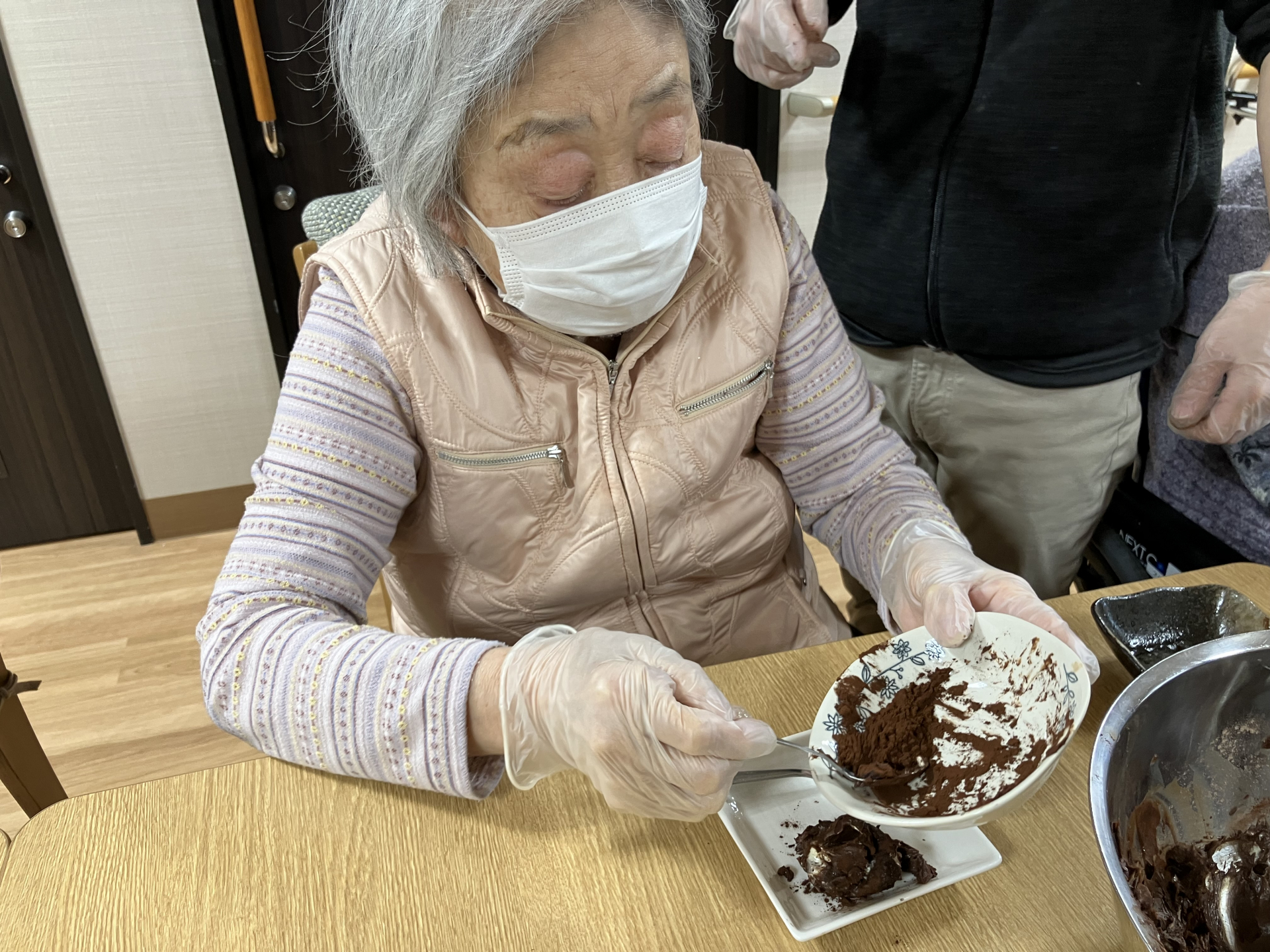 2025.03.12 活動報告(IN) 2階 おやつ作り② Tweet シェアする チョコレートを分けています 分けたチョコレートをココアパウダーでコーティング 簡単ですが楽しめていただけました 優っくりグループホーム豊島南長崎 船山 前の記事 2025.03.12 活動報告(IN) 2階 おやつ作り③ 次の記事 2025.03.11 活動報告(IN) 2階 おやつ作り① 一覧へ戻る