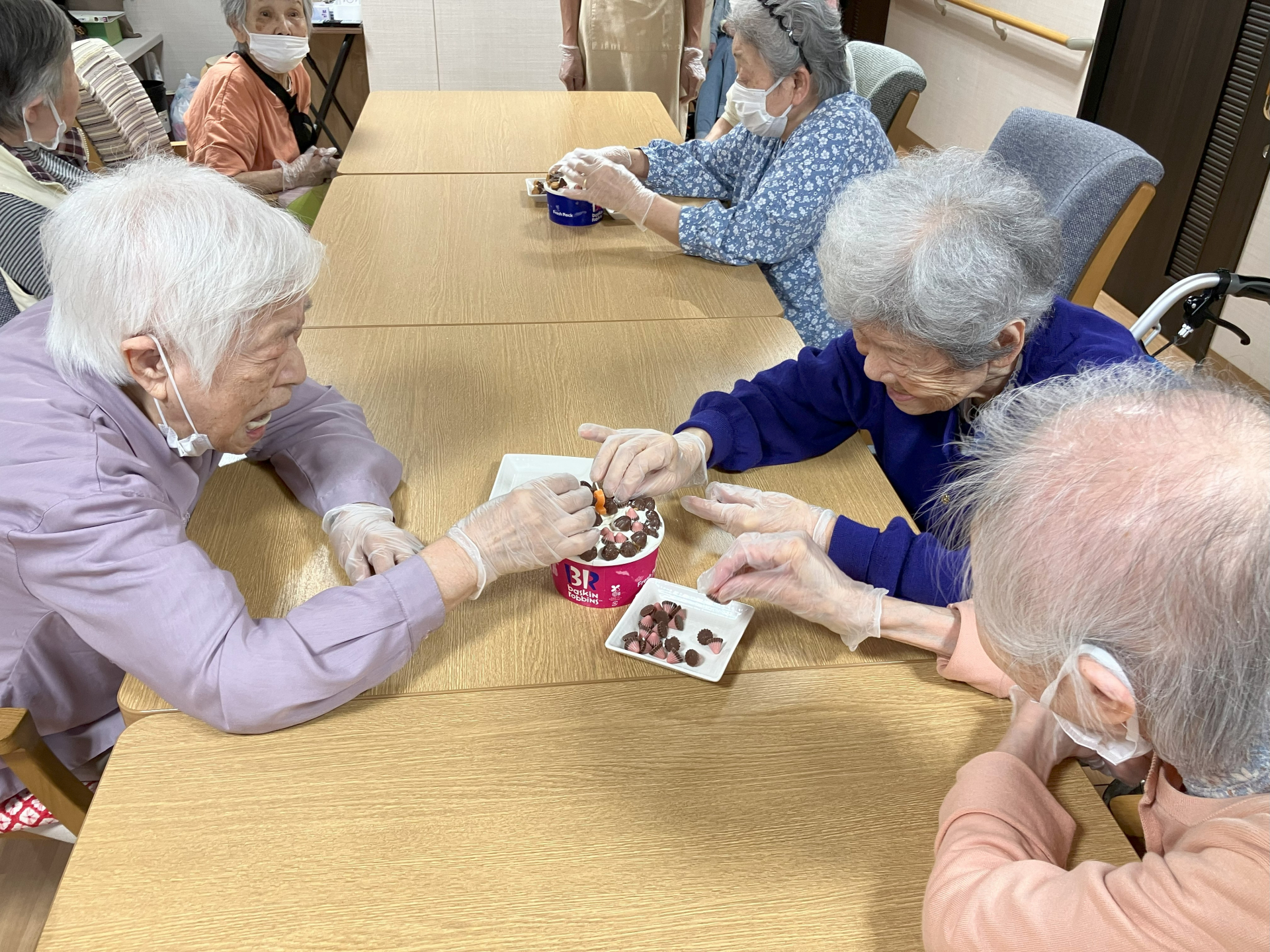 皆様と誕生会に向けてアイスケーキを準備中、、、