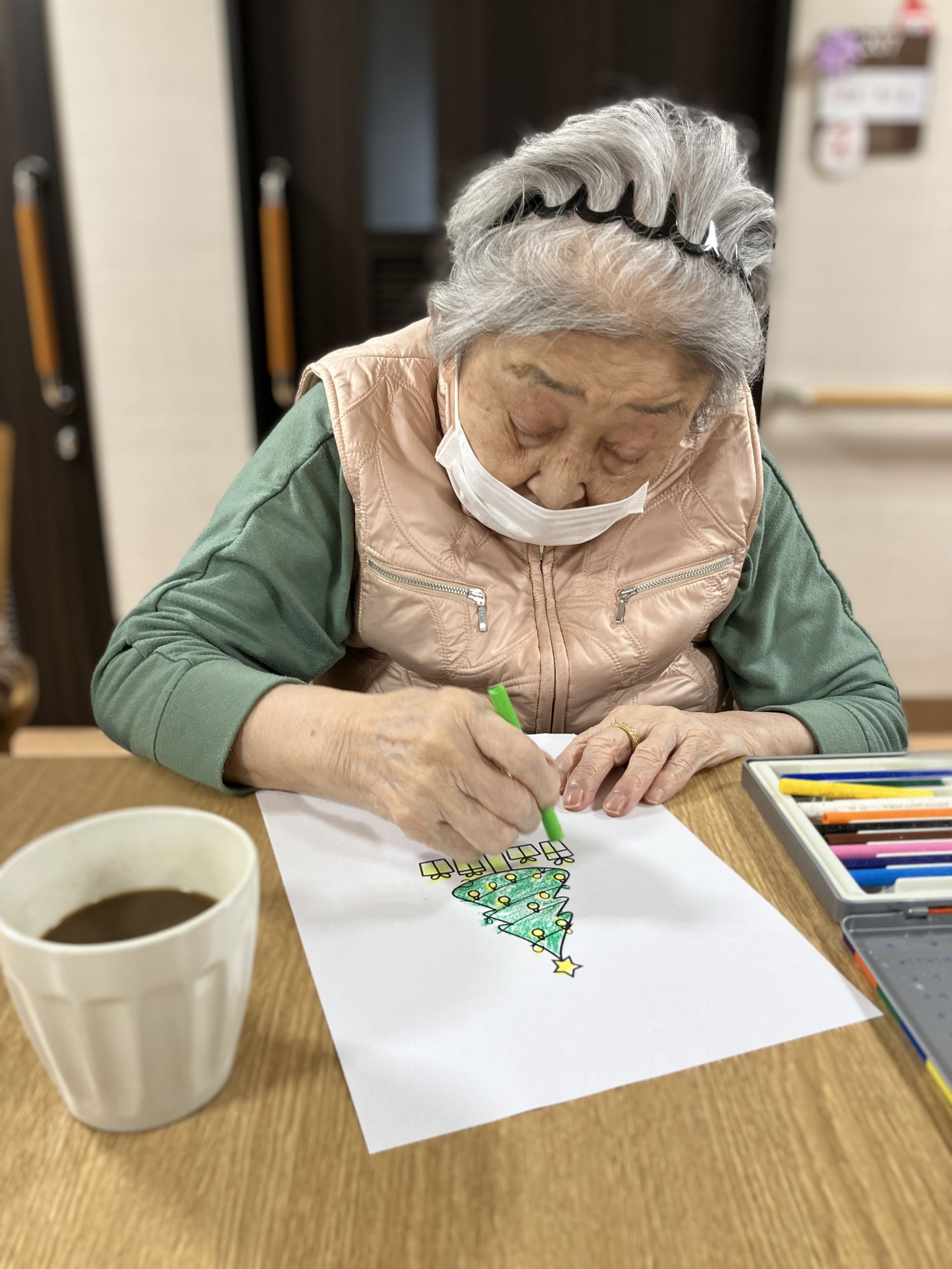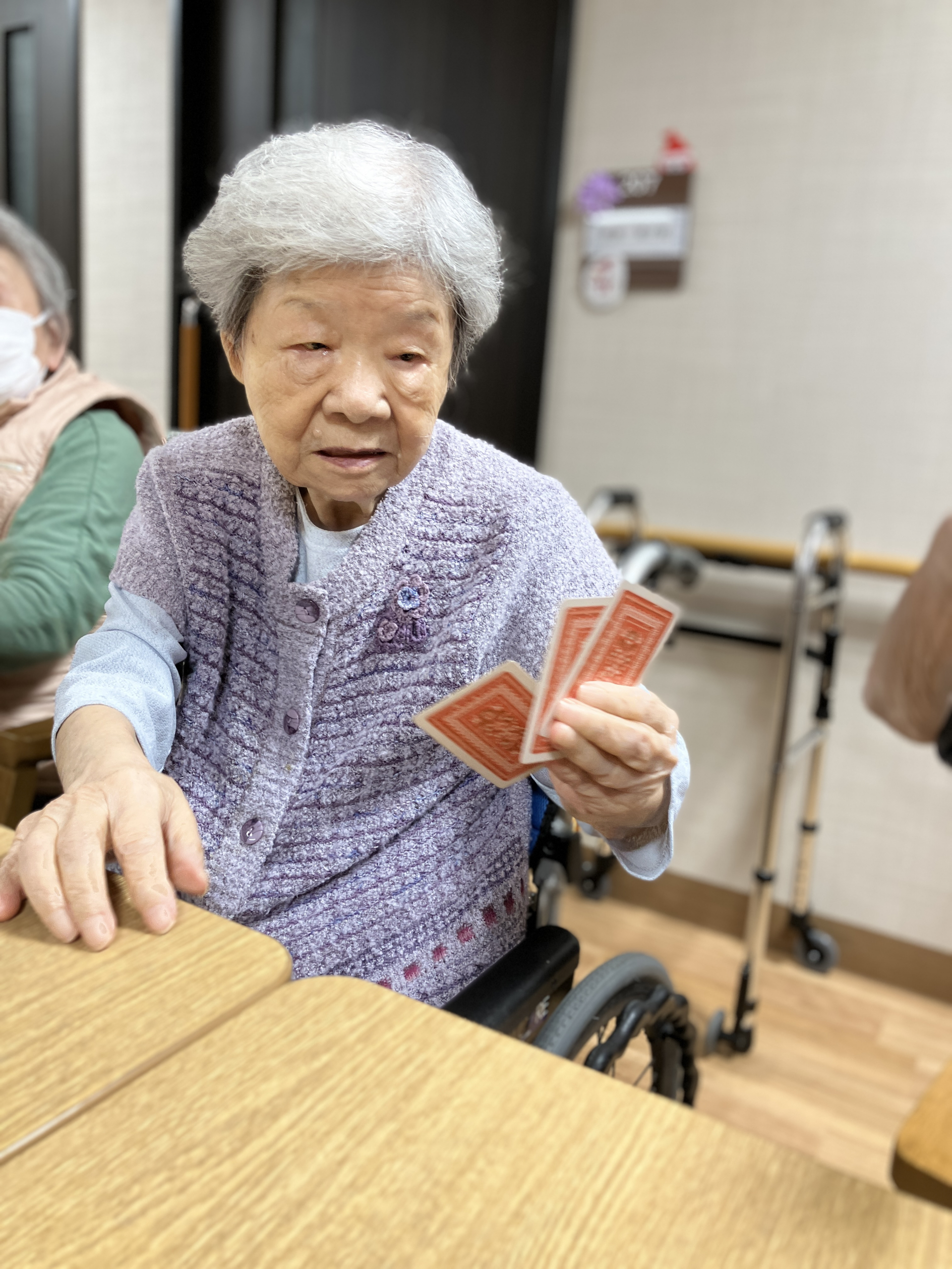 今日は朝から雨が降っています。フロアーではクリスマスの飾り付けをしたり、トランプをしたりしています。