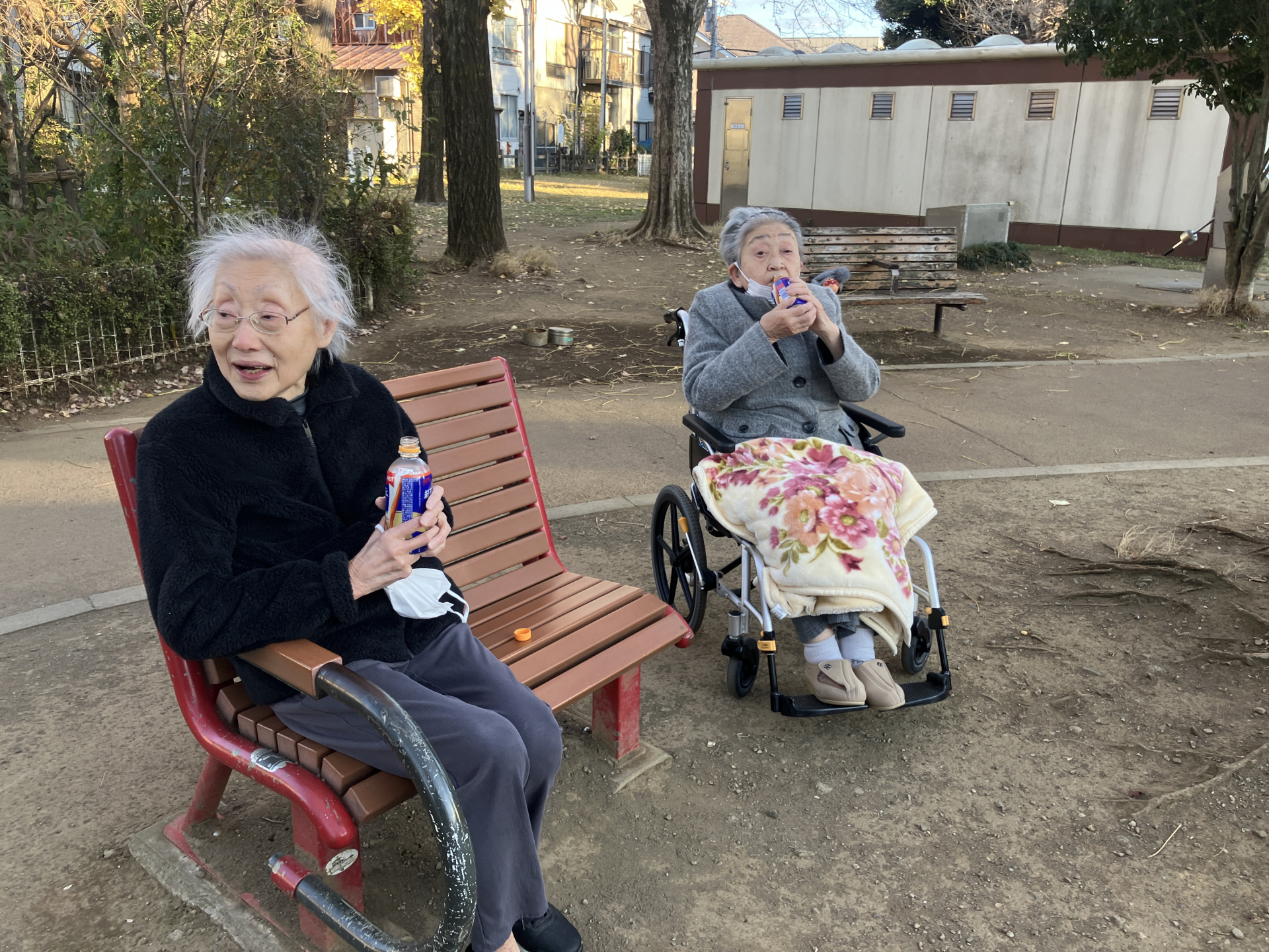 まだ寒くならない時間帯に、近所の公園まで行きました。