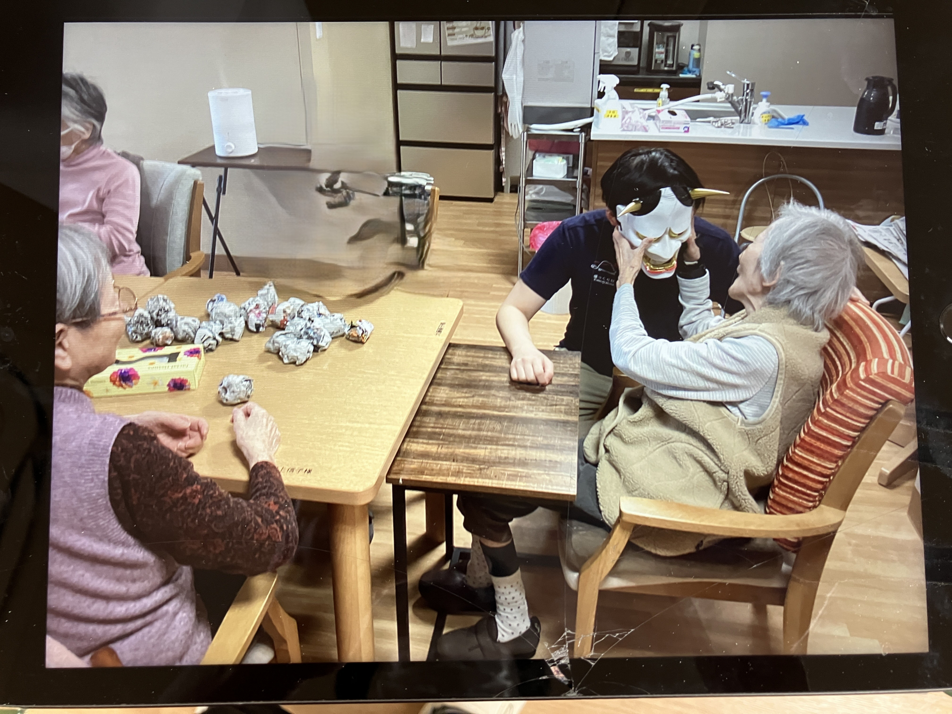 午後は職員が鬼になり、各フロアーを回りました。この後、文明堂のカステラをいただきました。