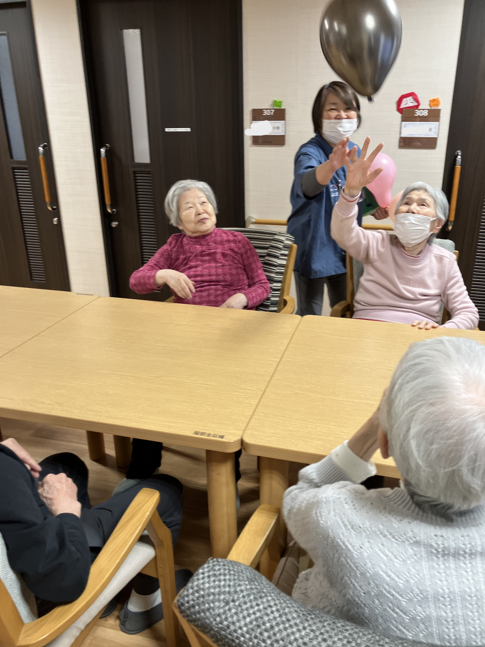 フロアーでは風船バレーが行われています。運動にもなりそうです。