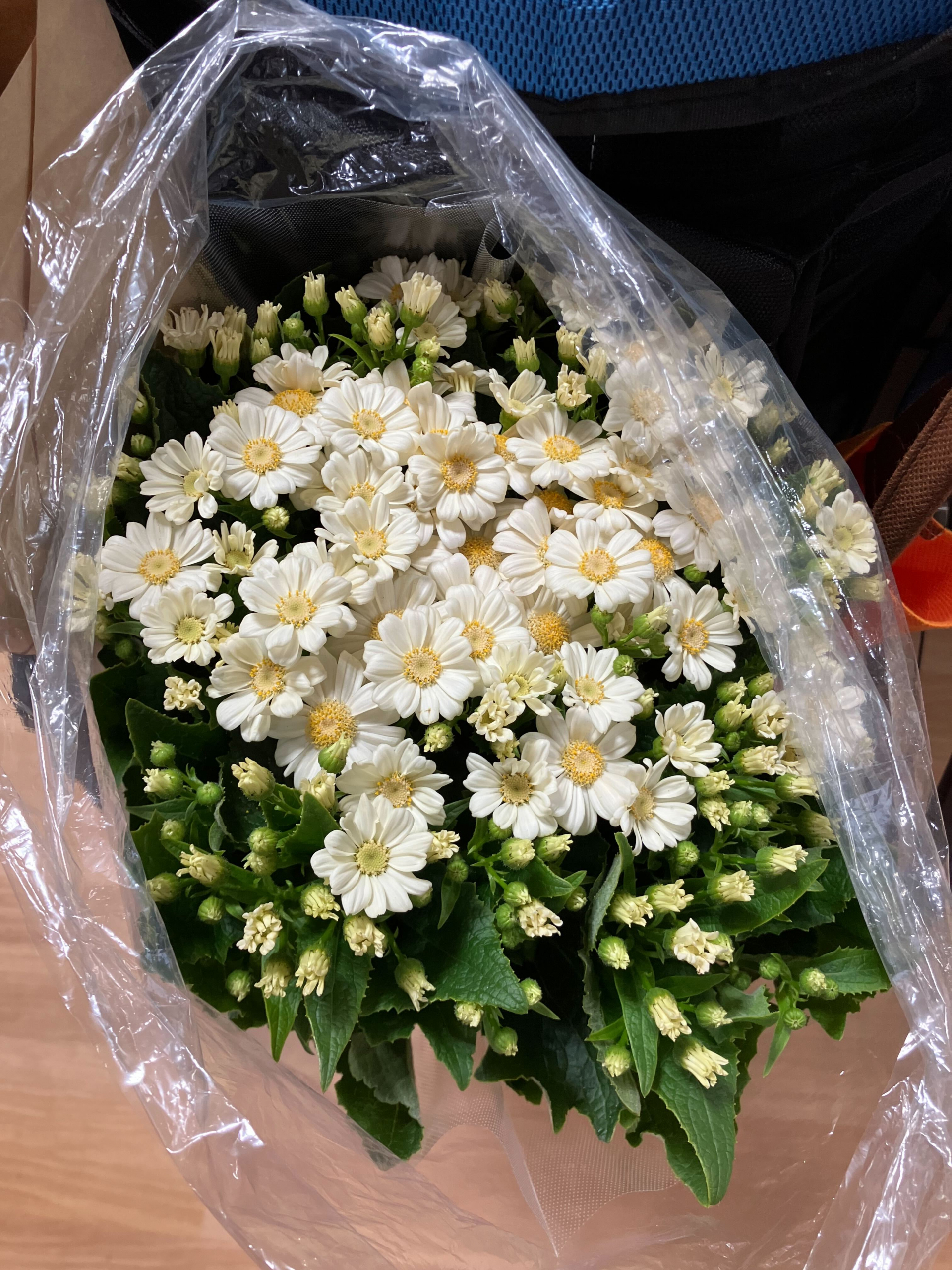 今日も買い物ついでに花屋さんに寄ったみたいで