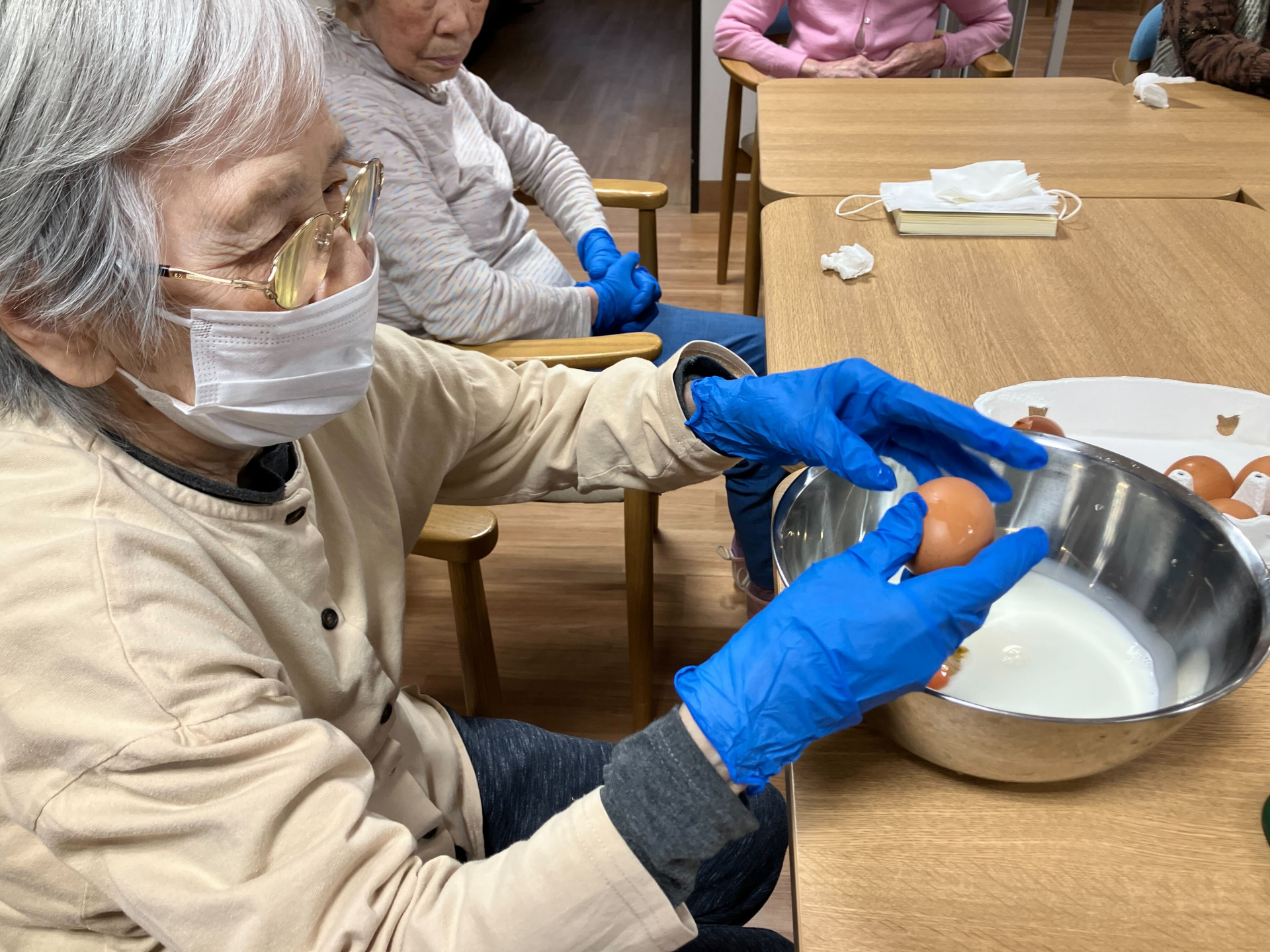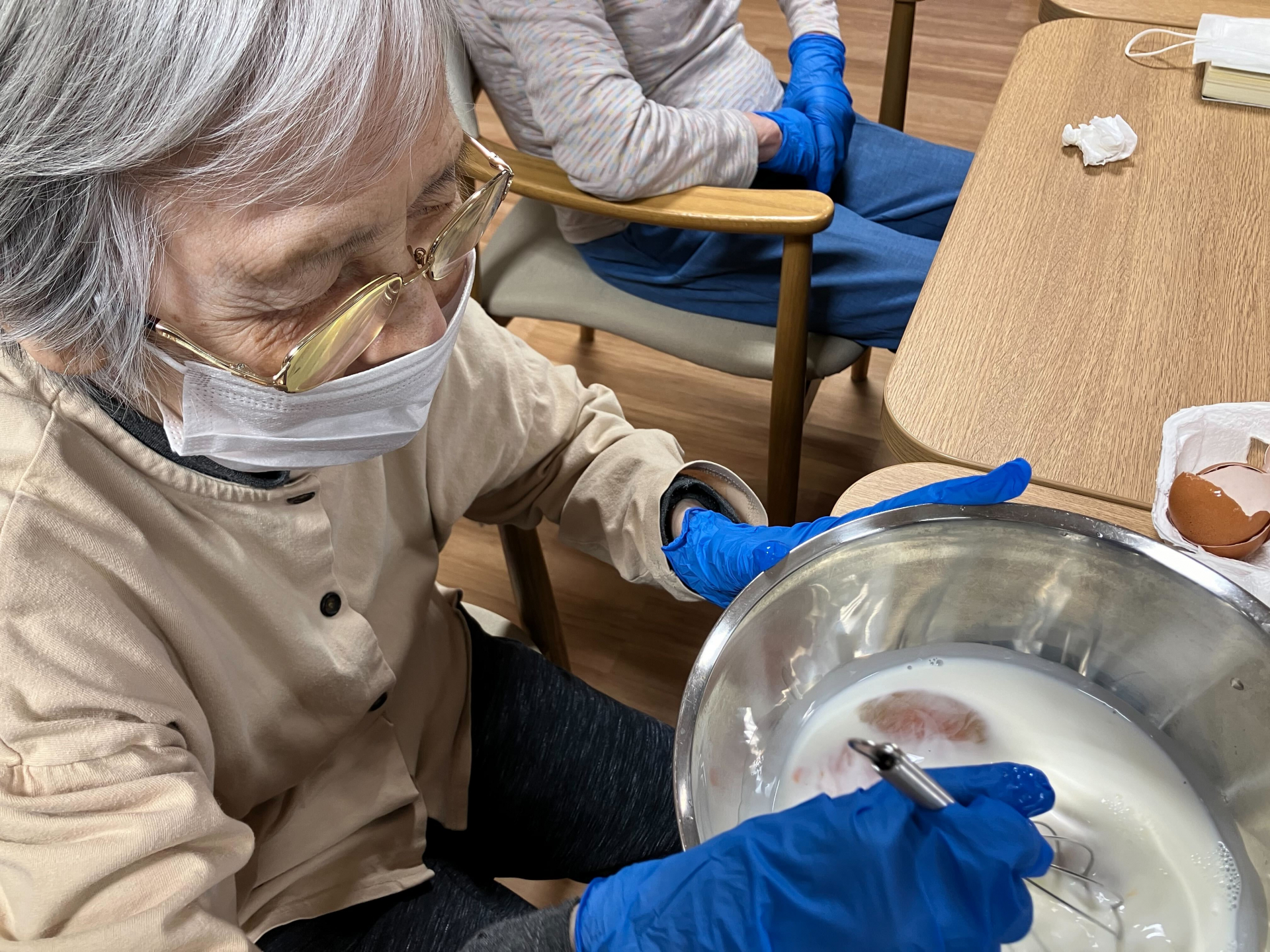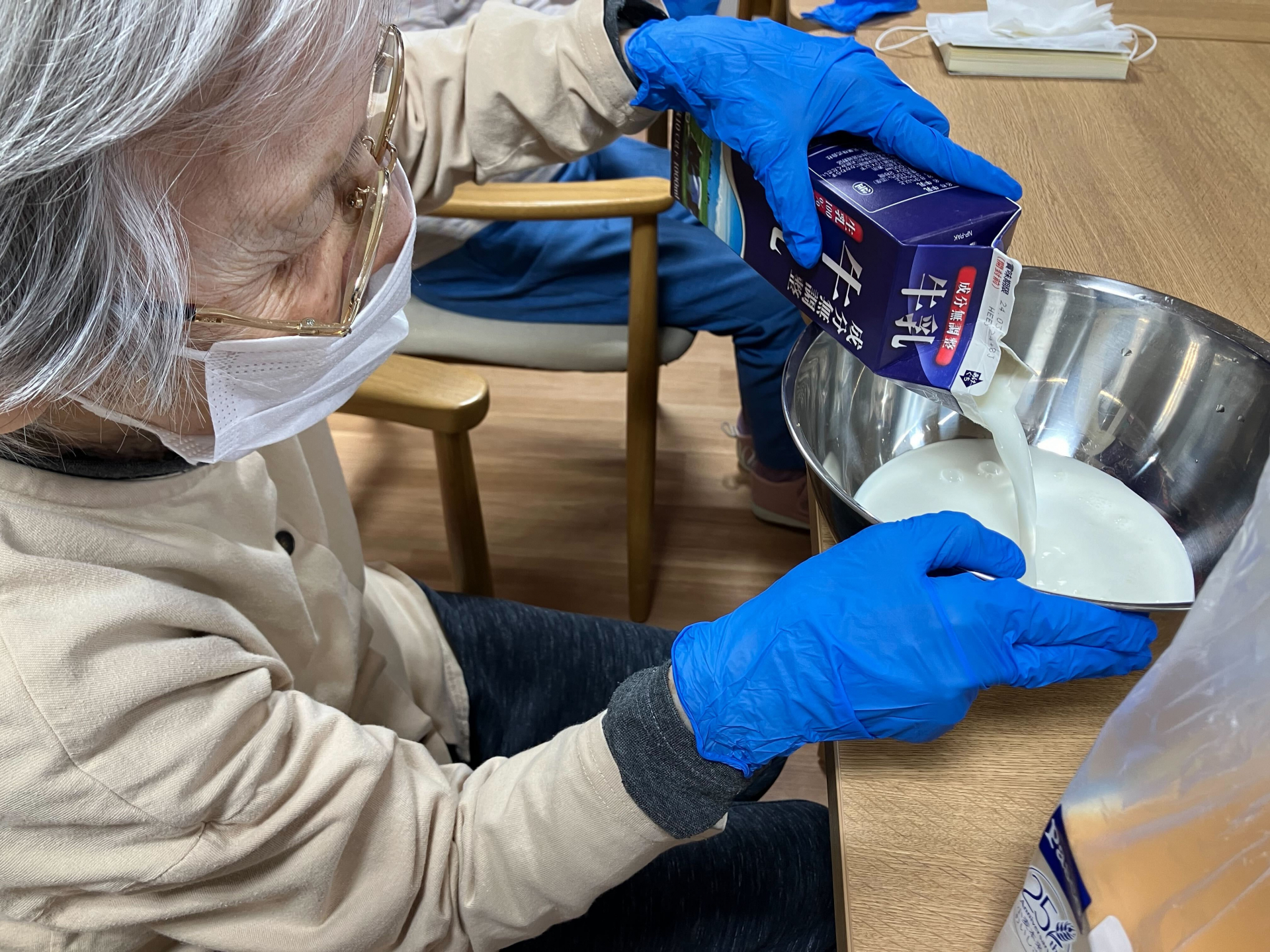 牛乳と卵を入れて、混ぜる係はS様♪