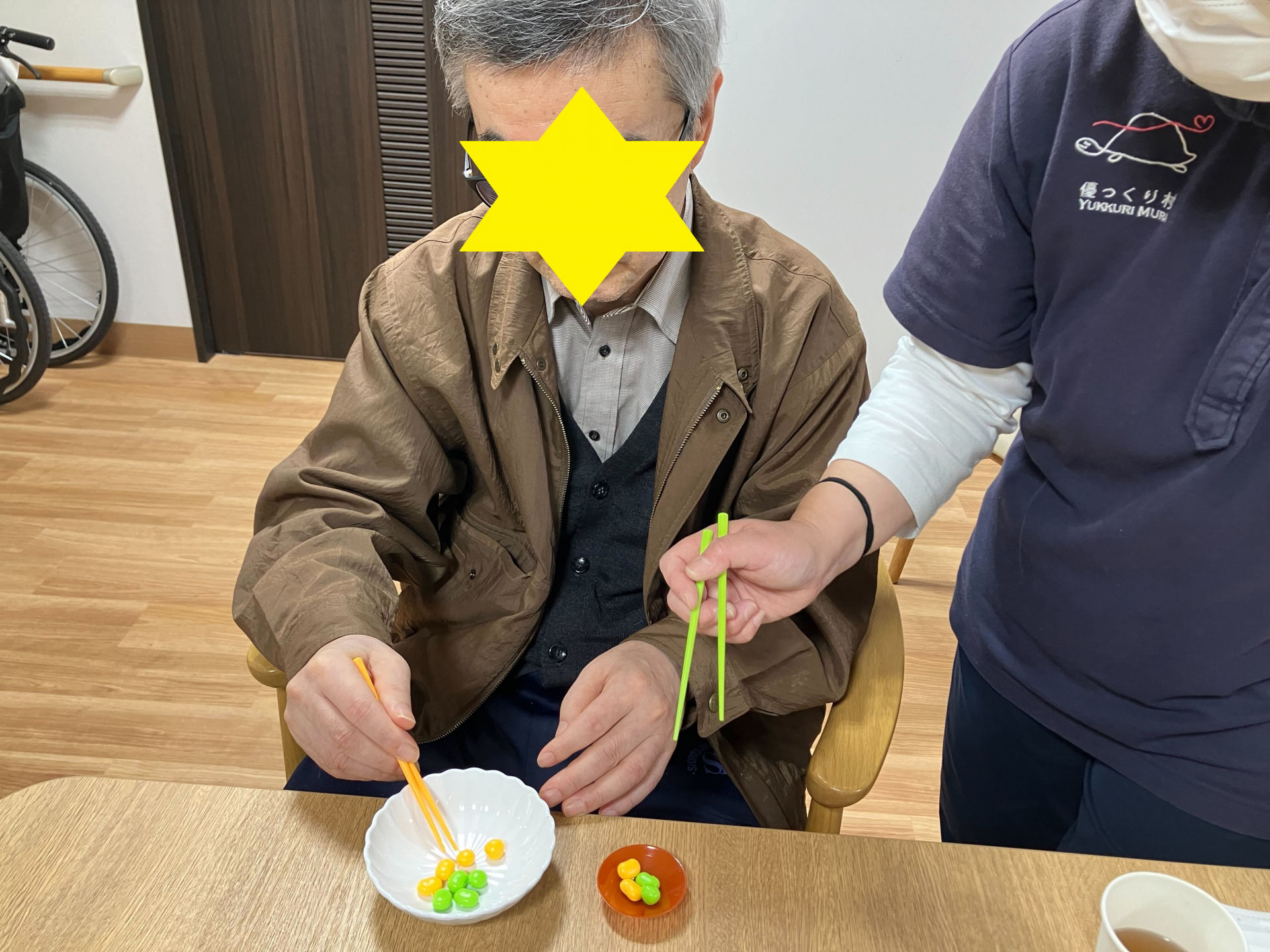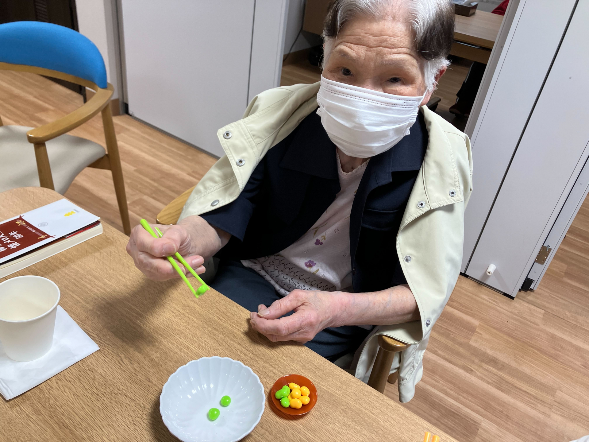 とっても器用なM様は、さっそく緑の豆をつかみました~(^^)v