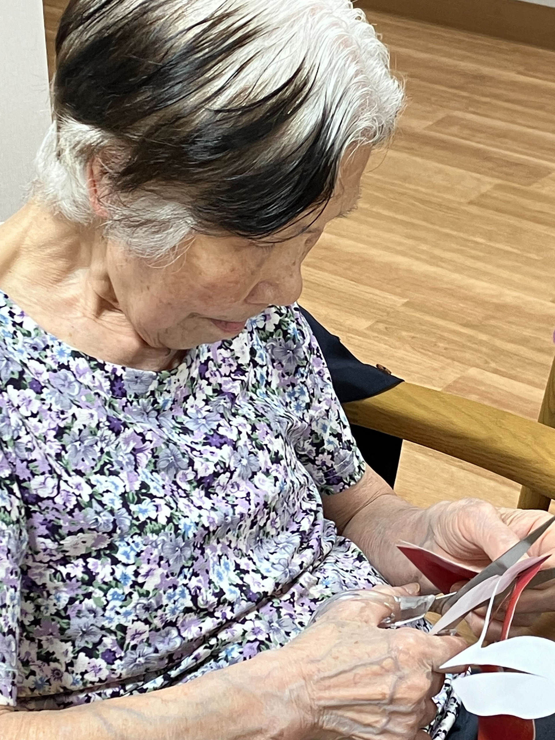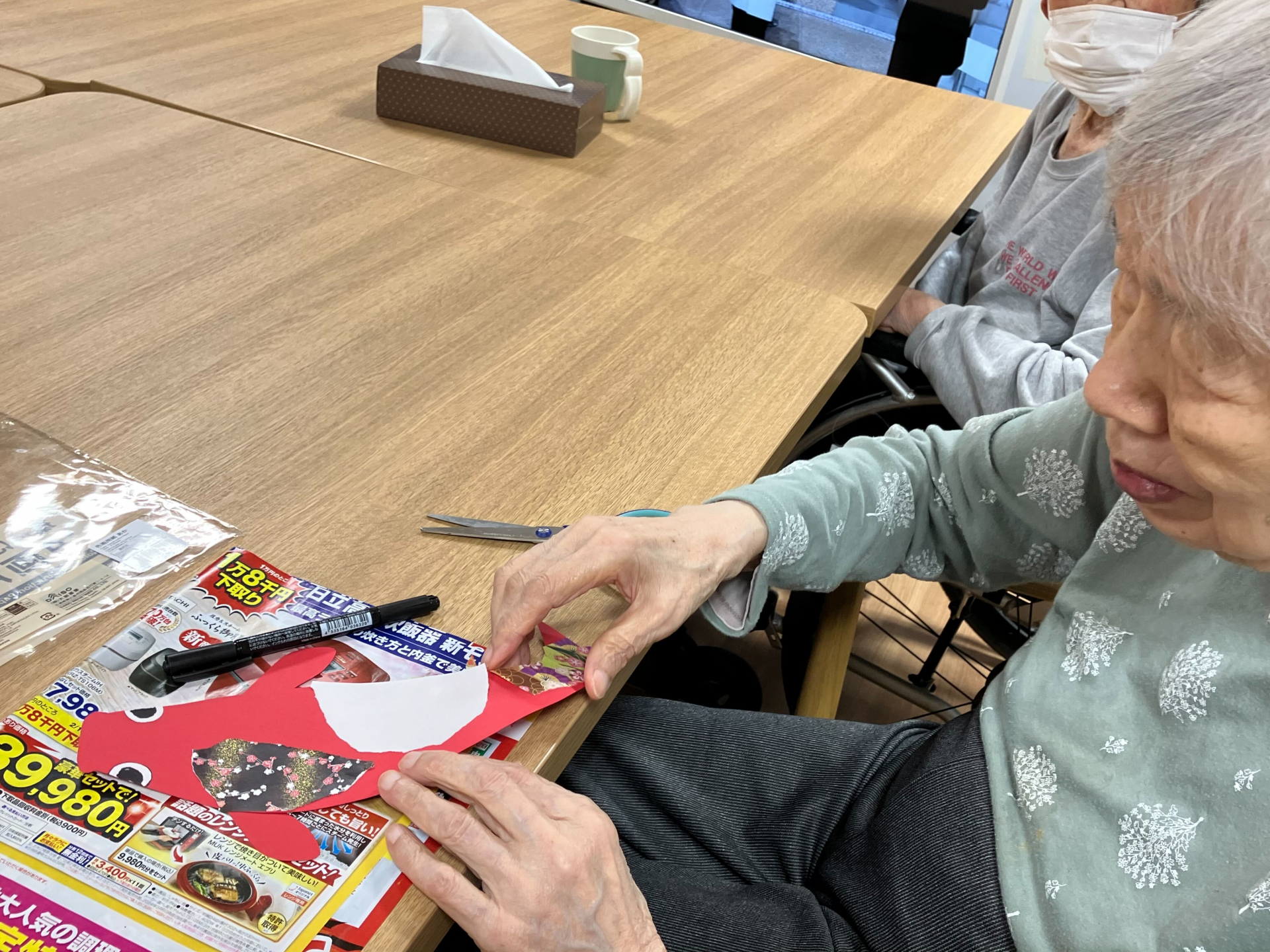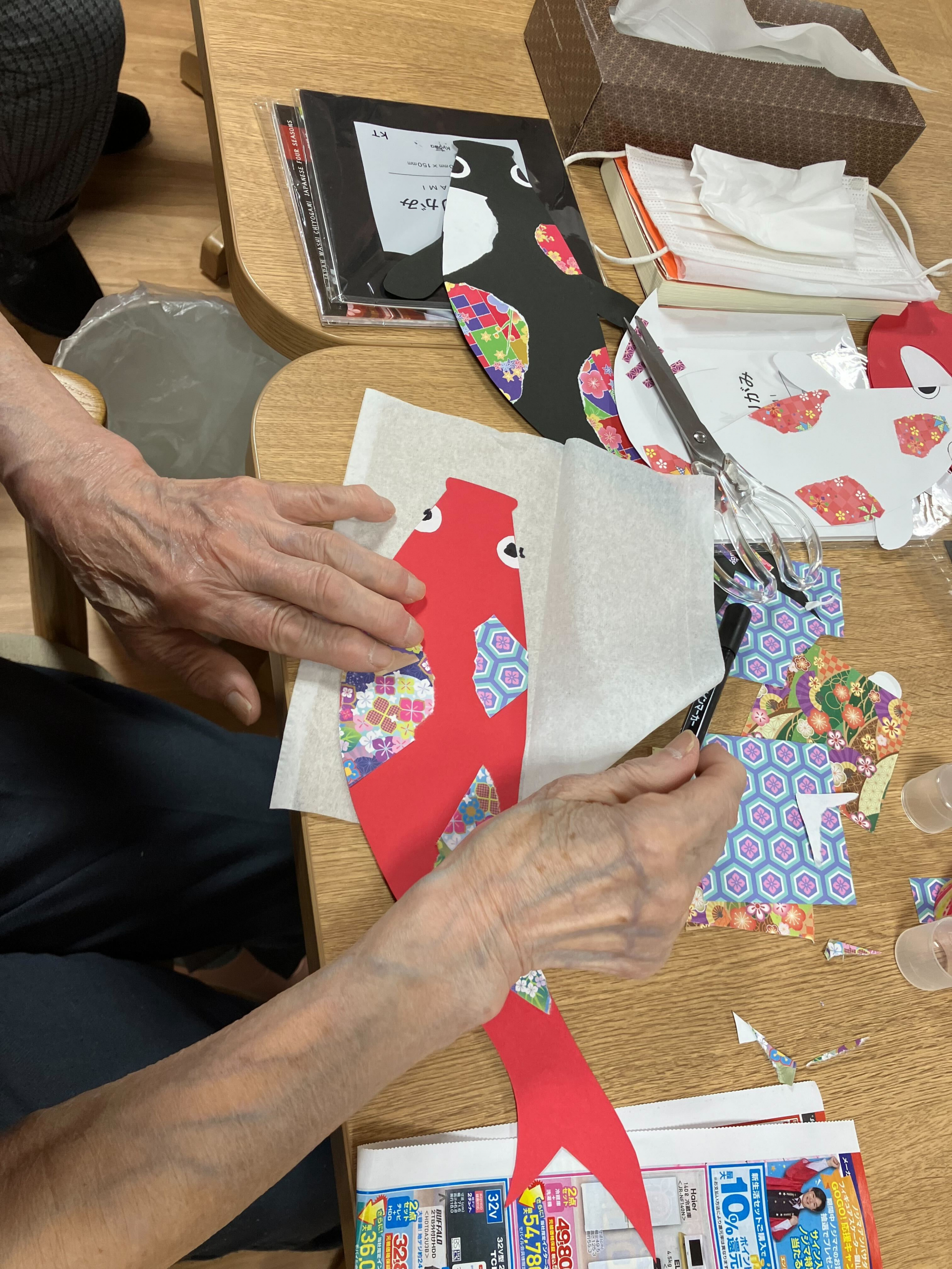 そのあとは、好きな柄の折り紙を切って貼り付けます(^^)v
