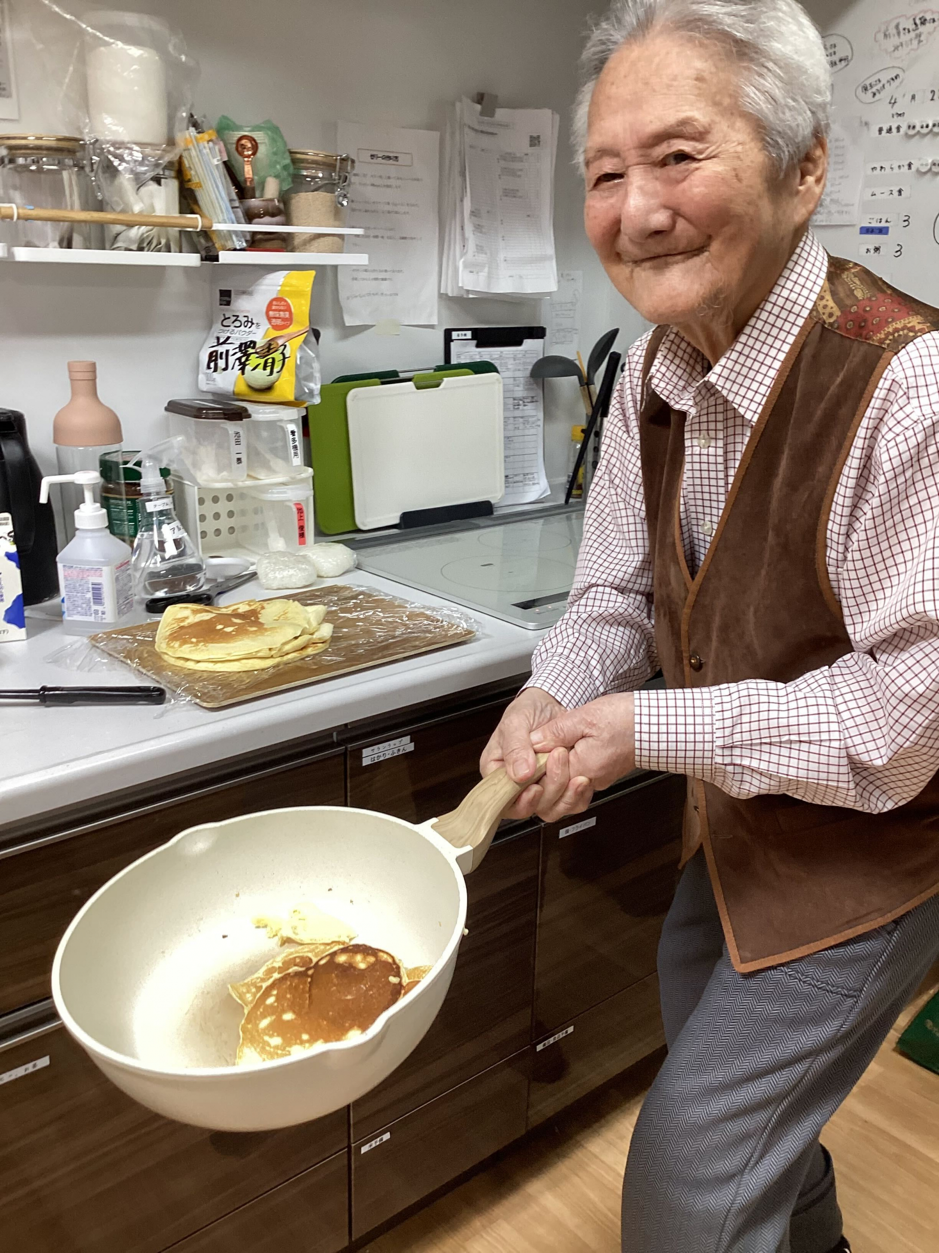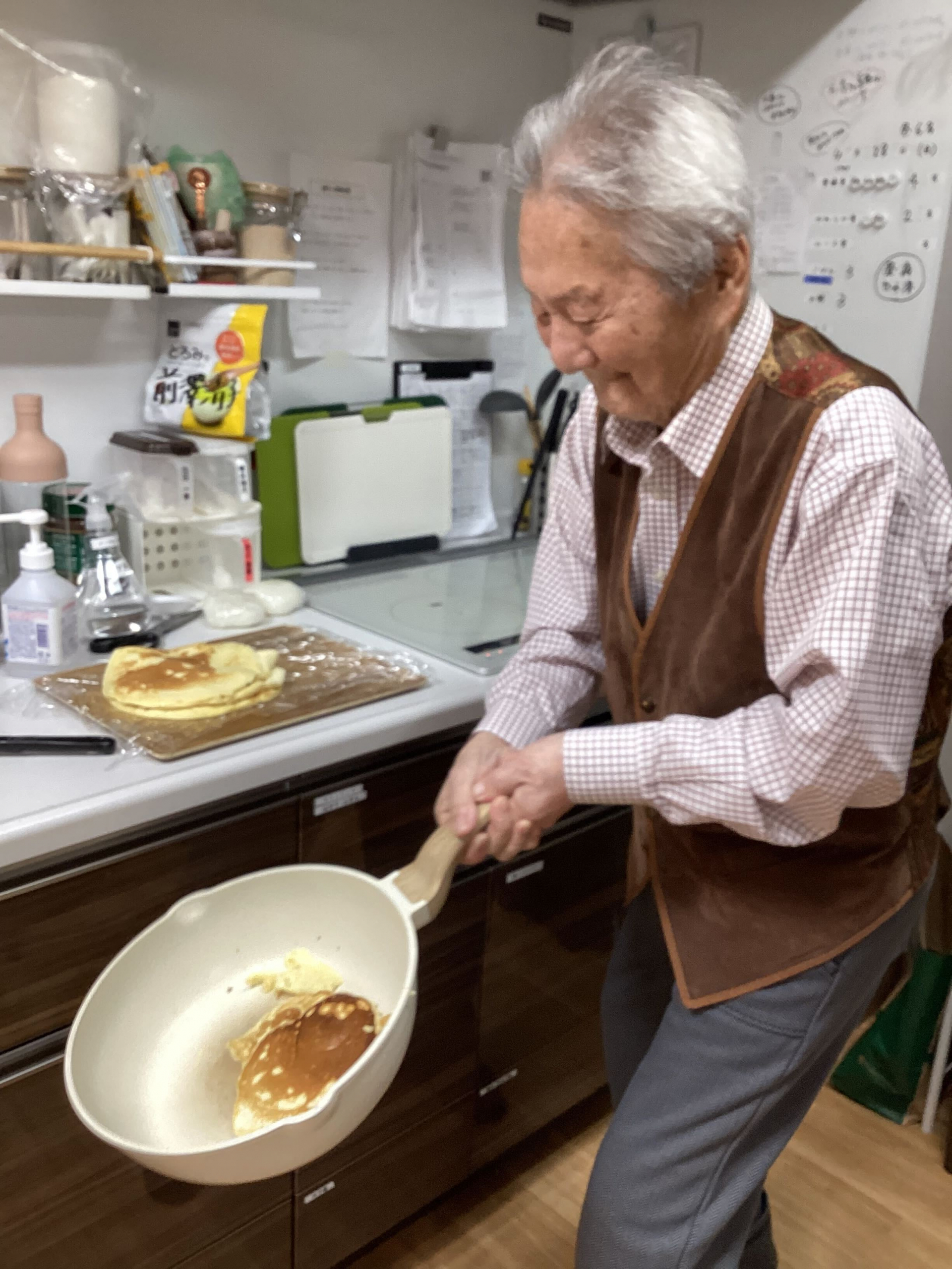 焼けた生地を裏返す!