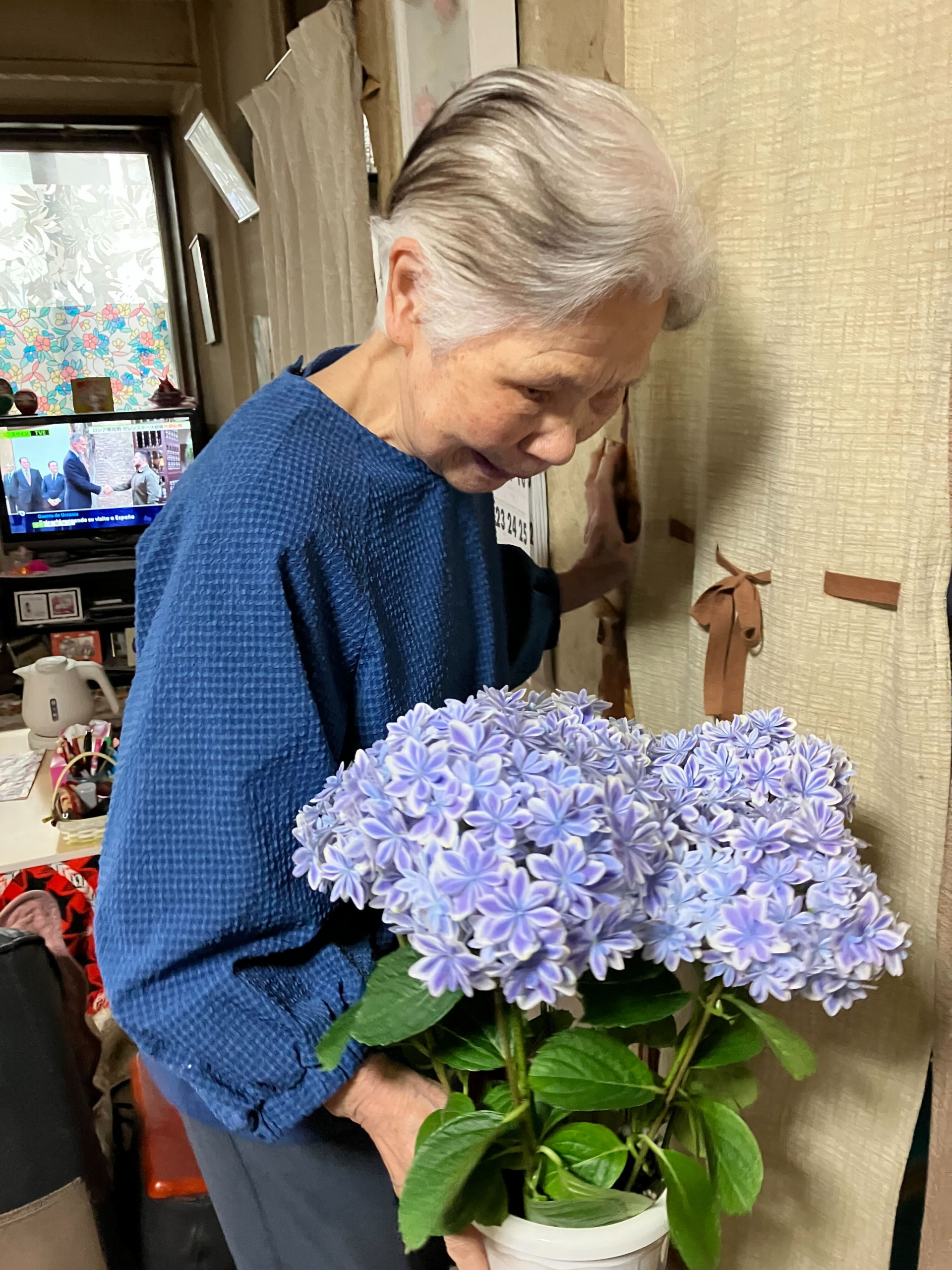 愛おしそうにあじさいを見つめるM様の優しそうな表情が印象的でした(^^♪