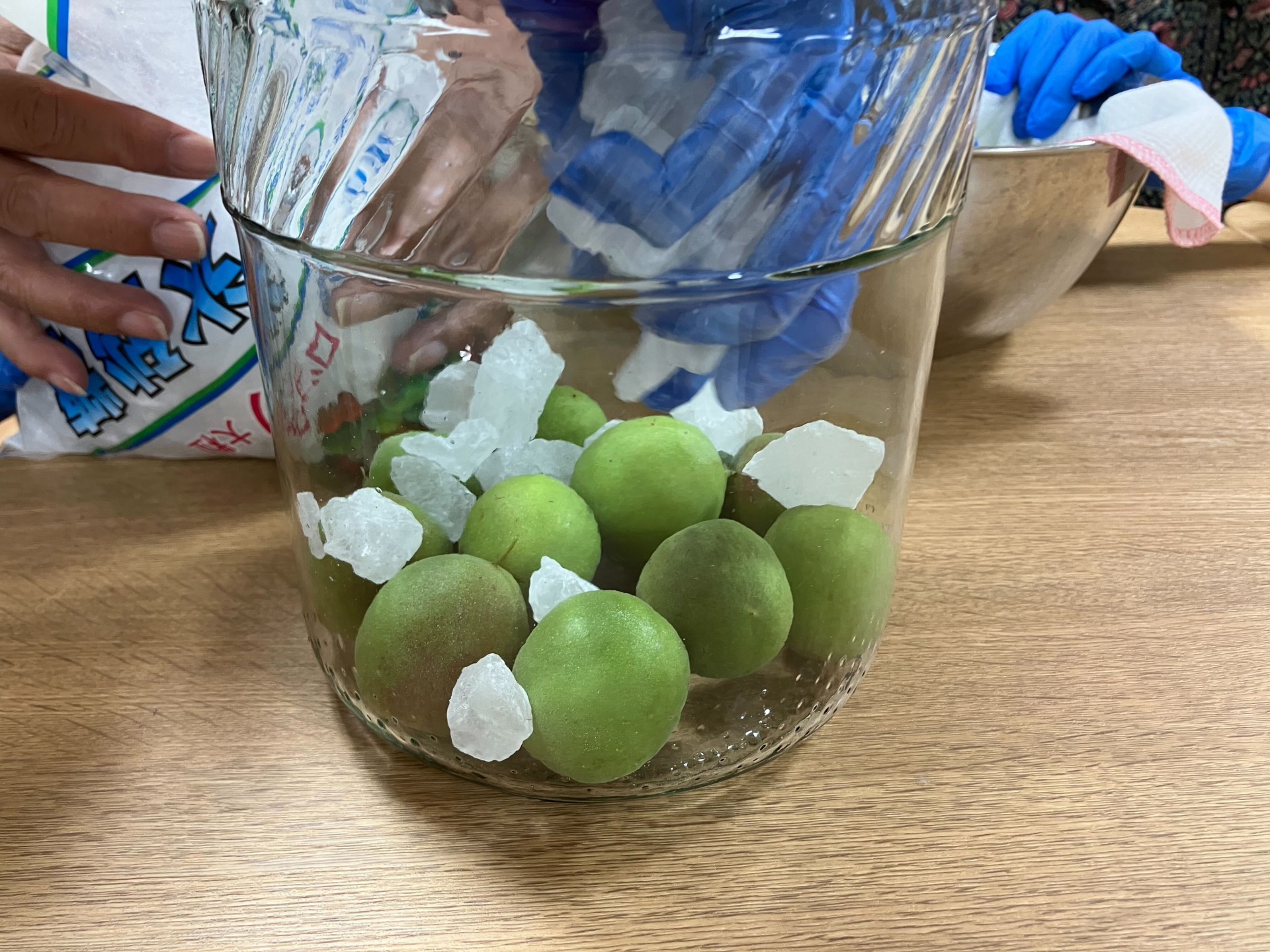 梅を洗って、容器もきちんと消毒します(^^)/