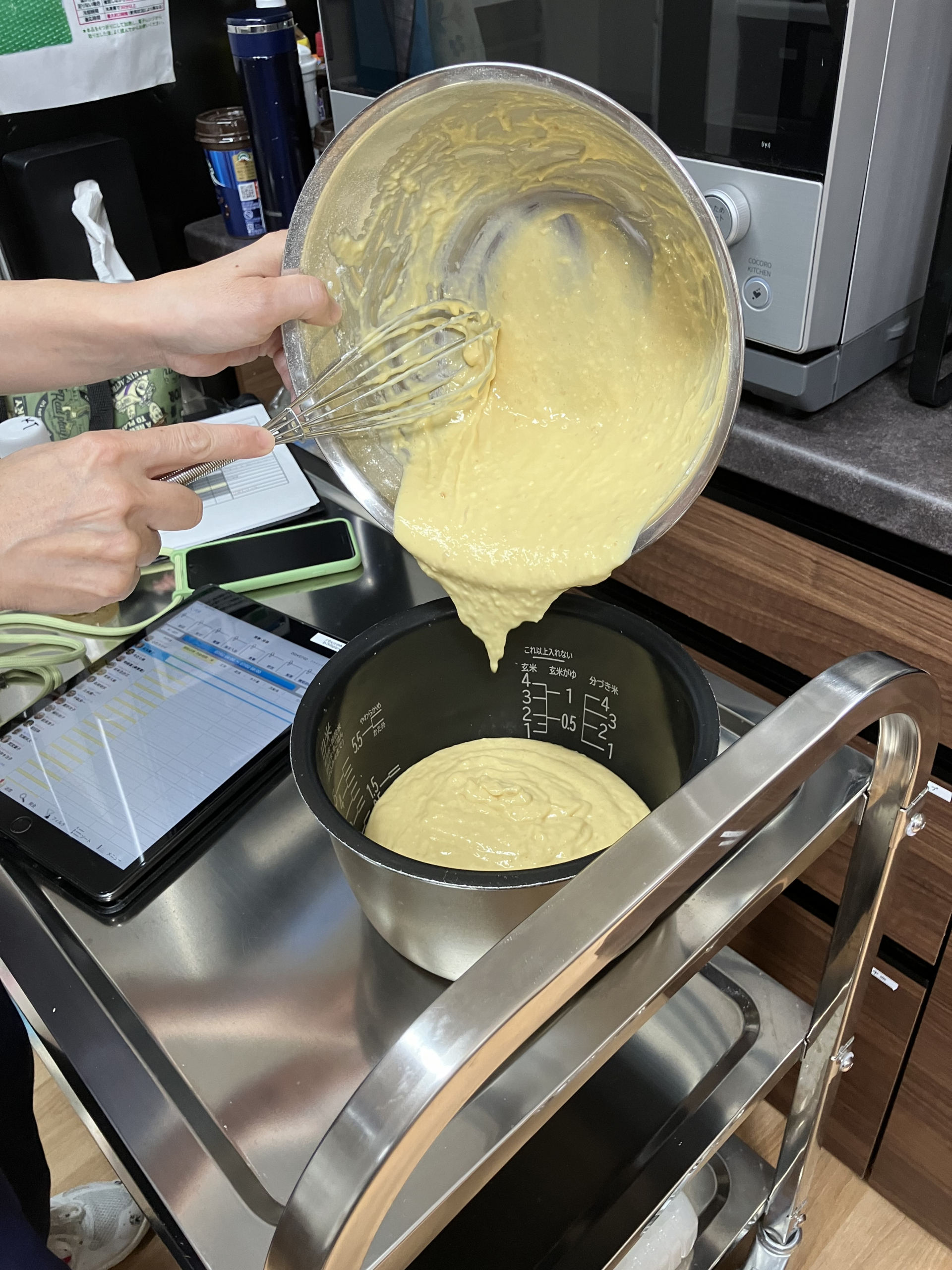 プッチンプリンとホットケーキミックスの粉、卵を使って