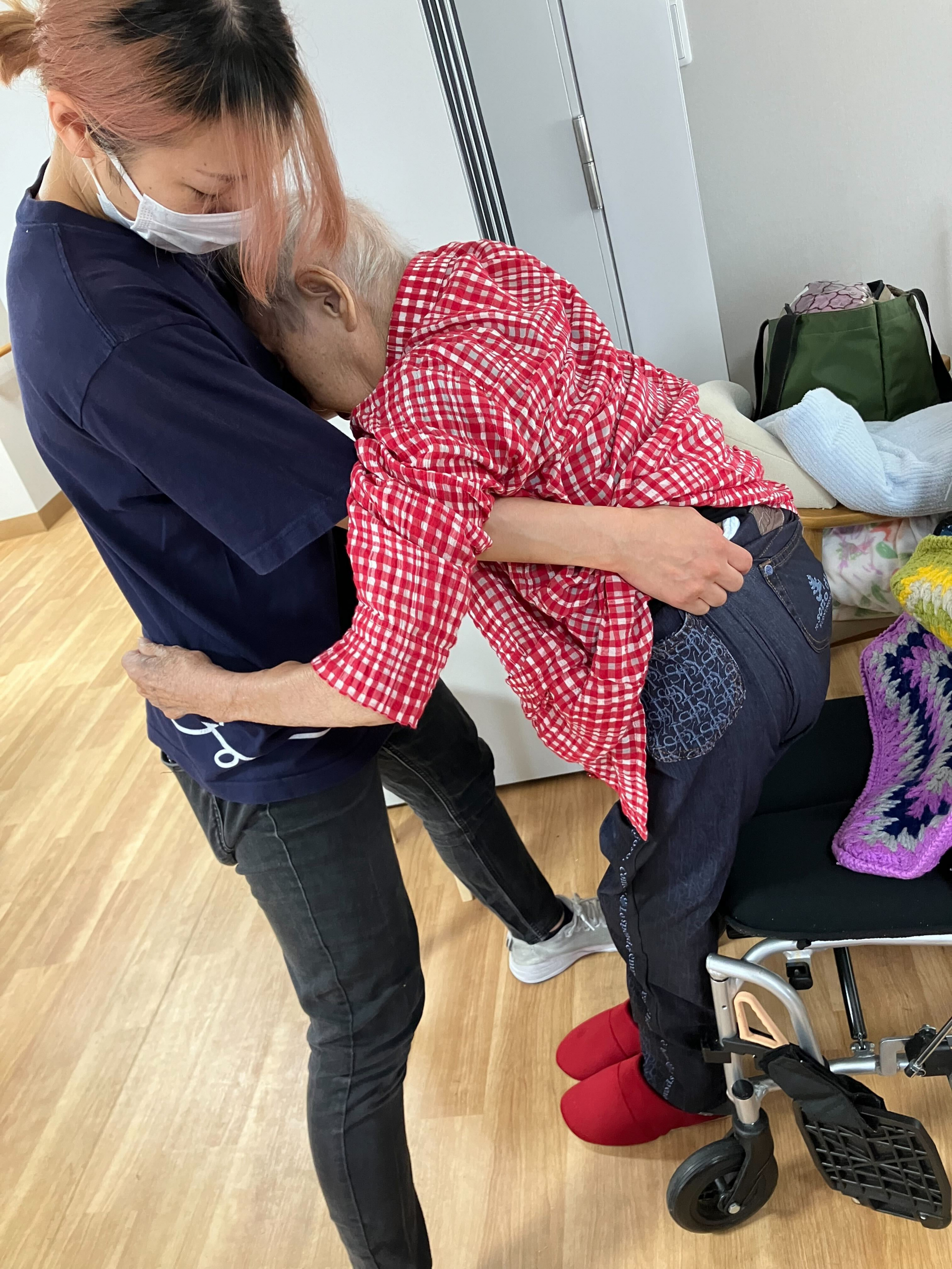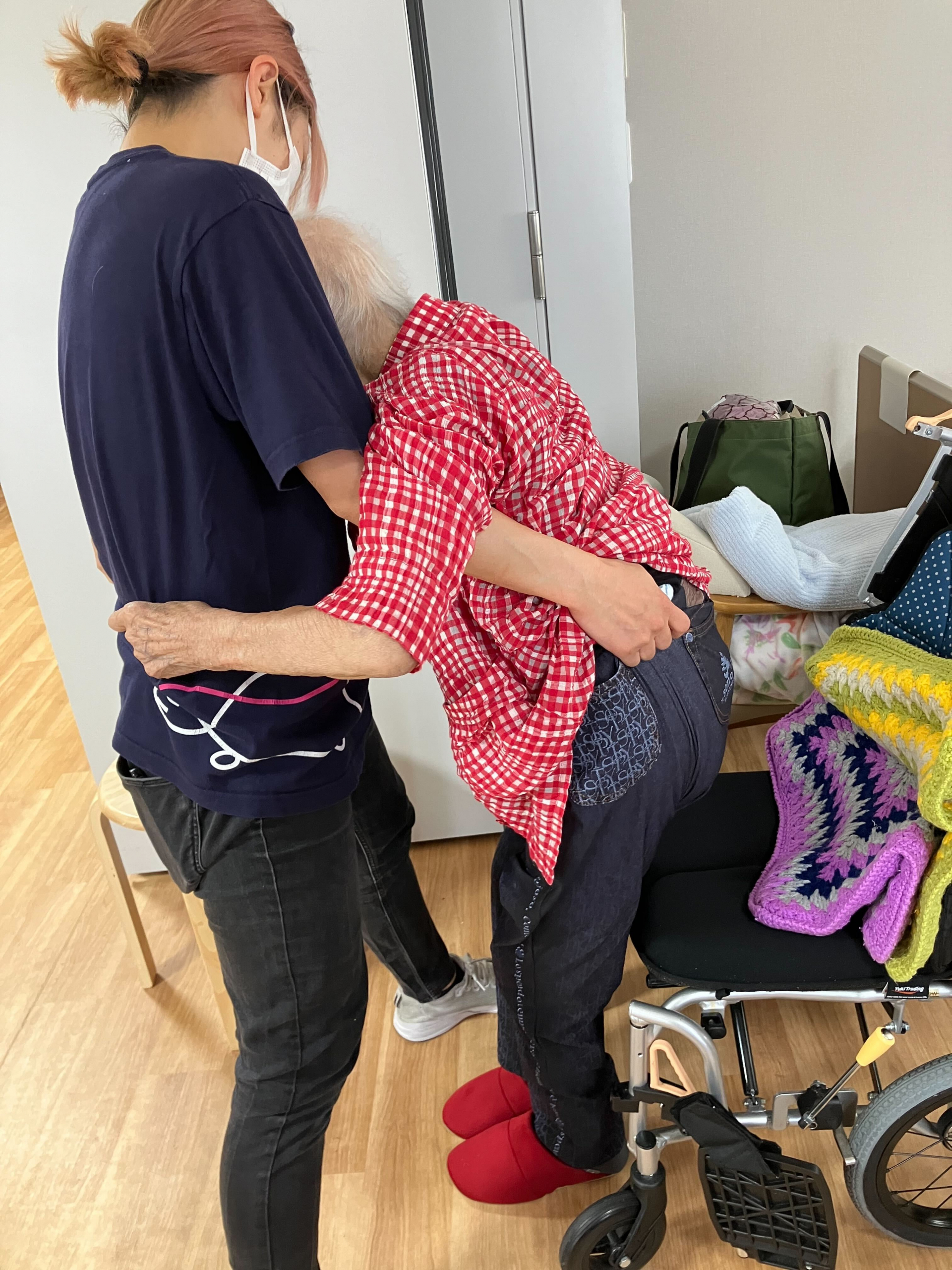 するとほんの少しの力で介助するだけで立ち上がれます(^^)v