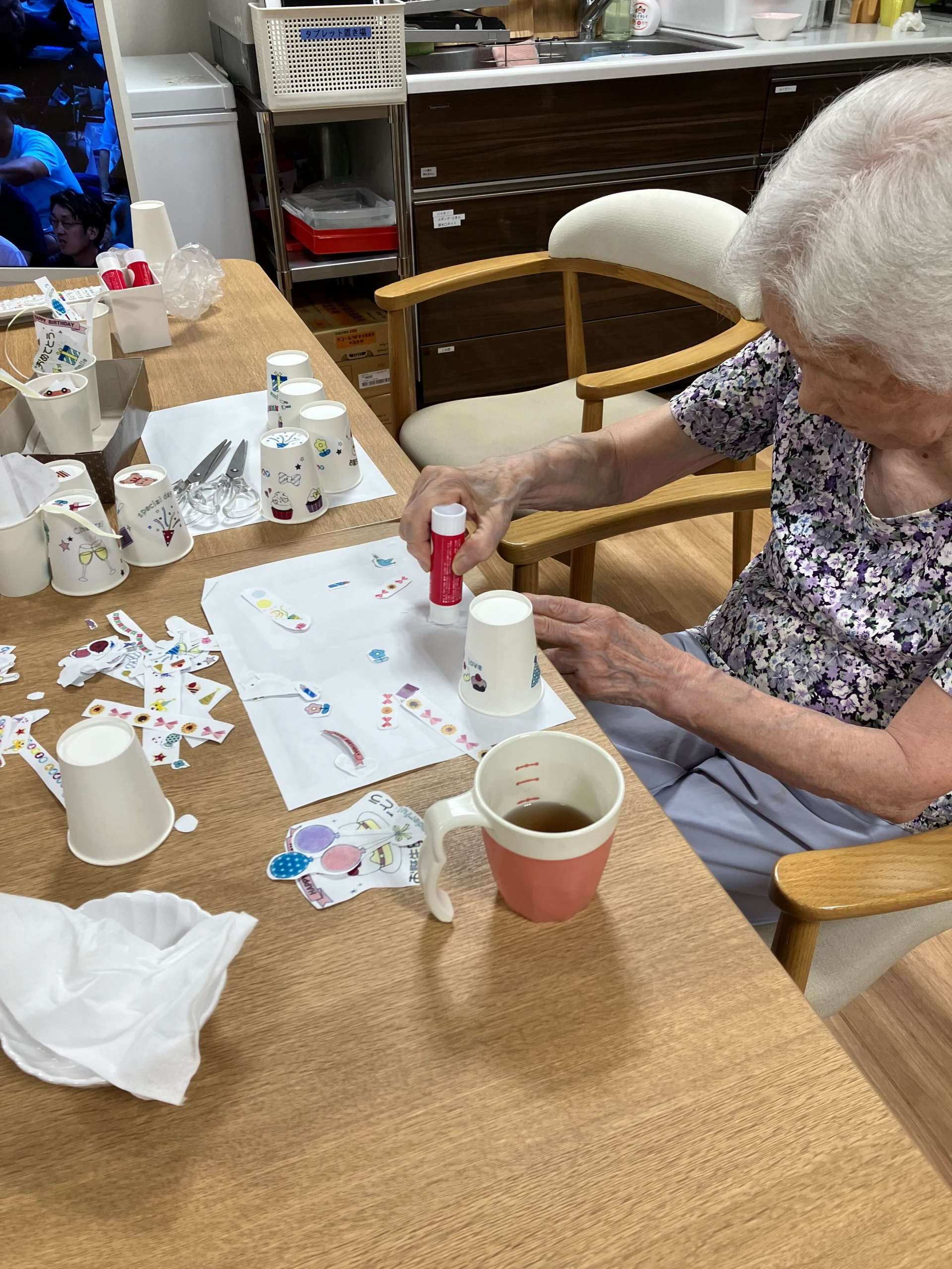 この紙コップを使ったレクリエーションは、またご紹介いたします(*^^*)