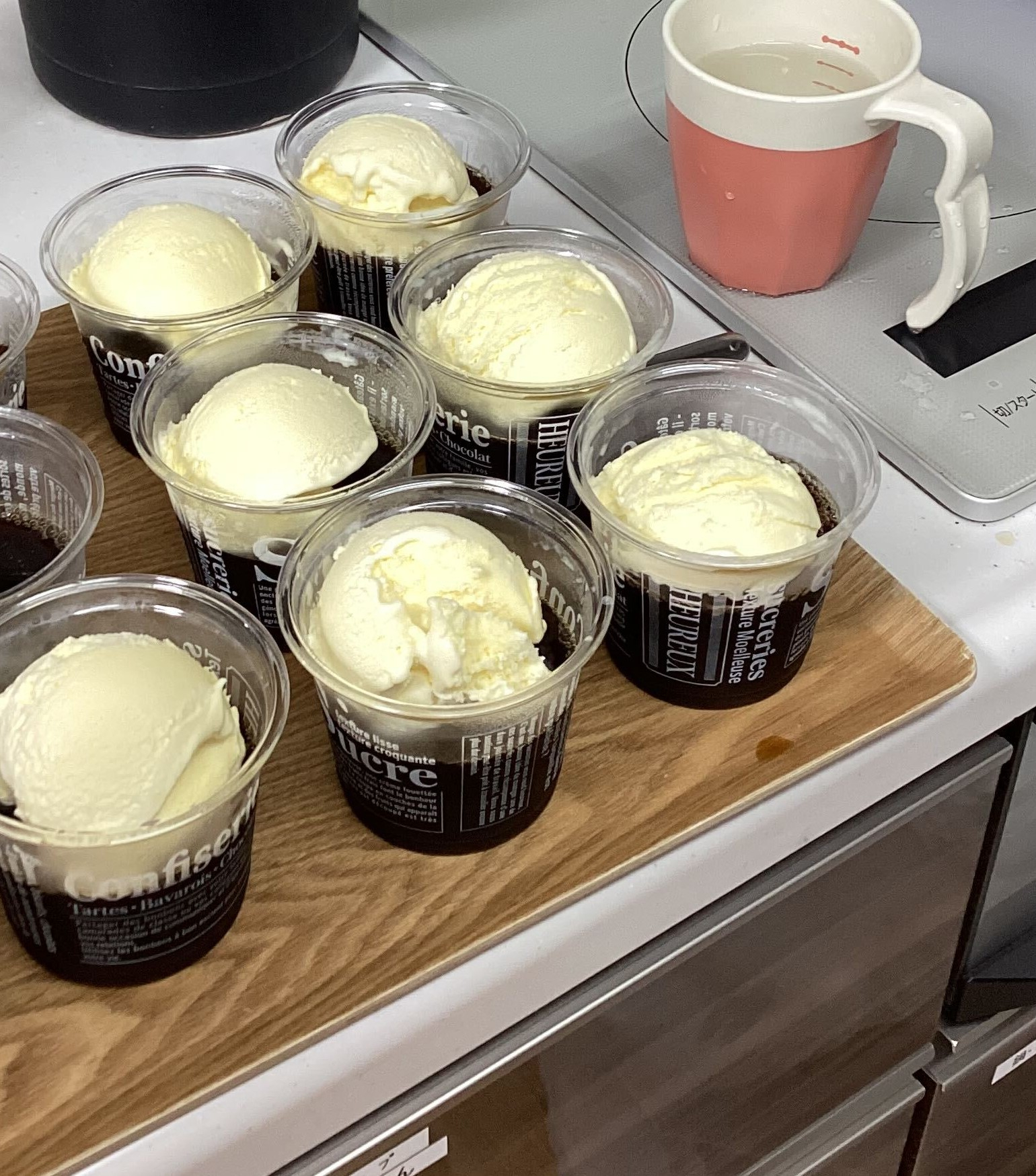 さらに食べやすくするためにアイスをトッピングしました(^^♪