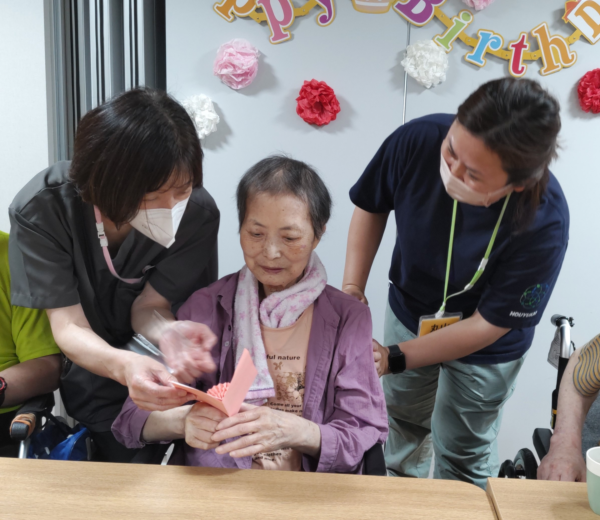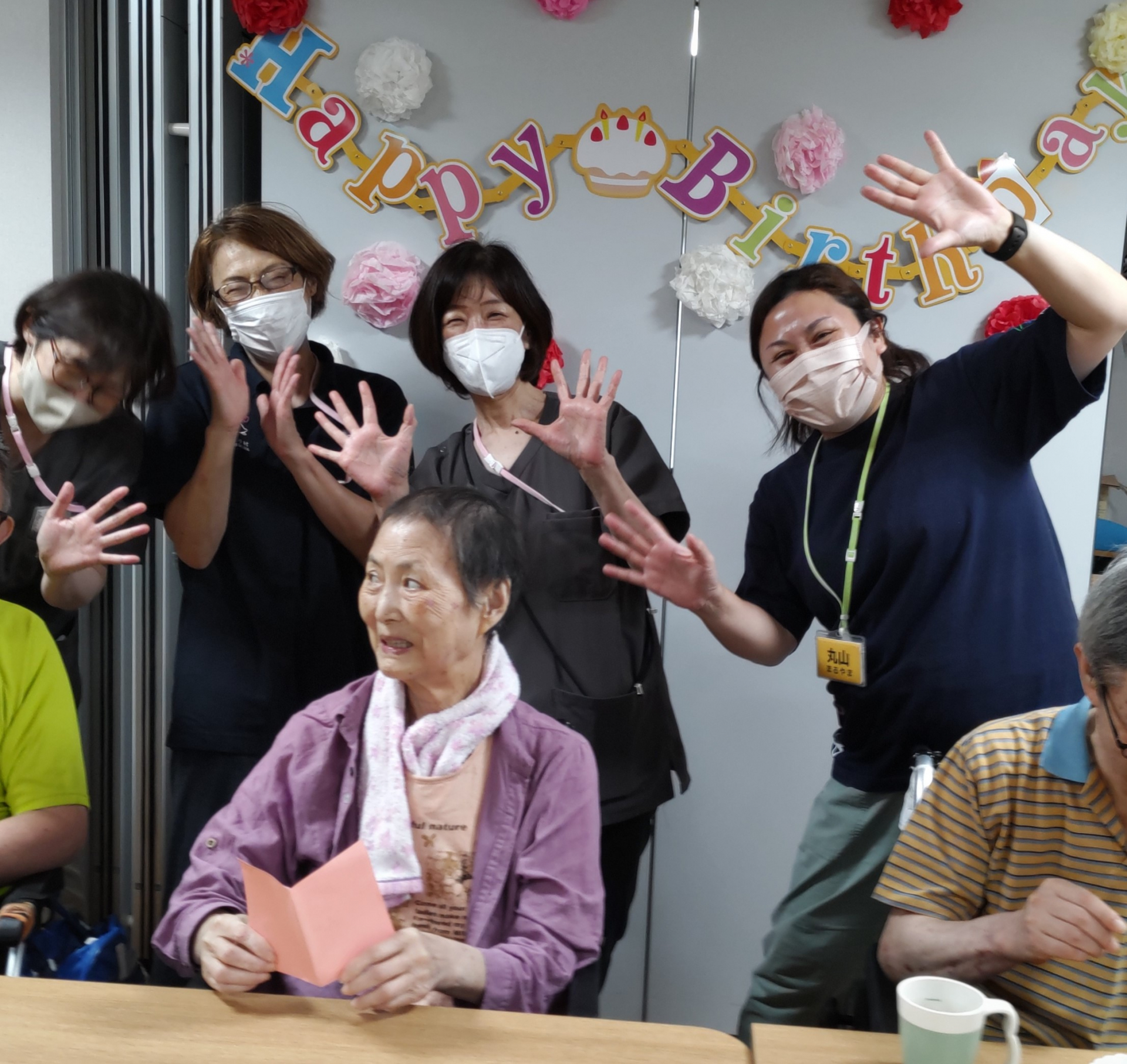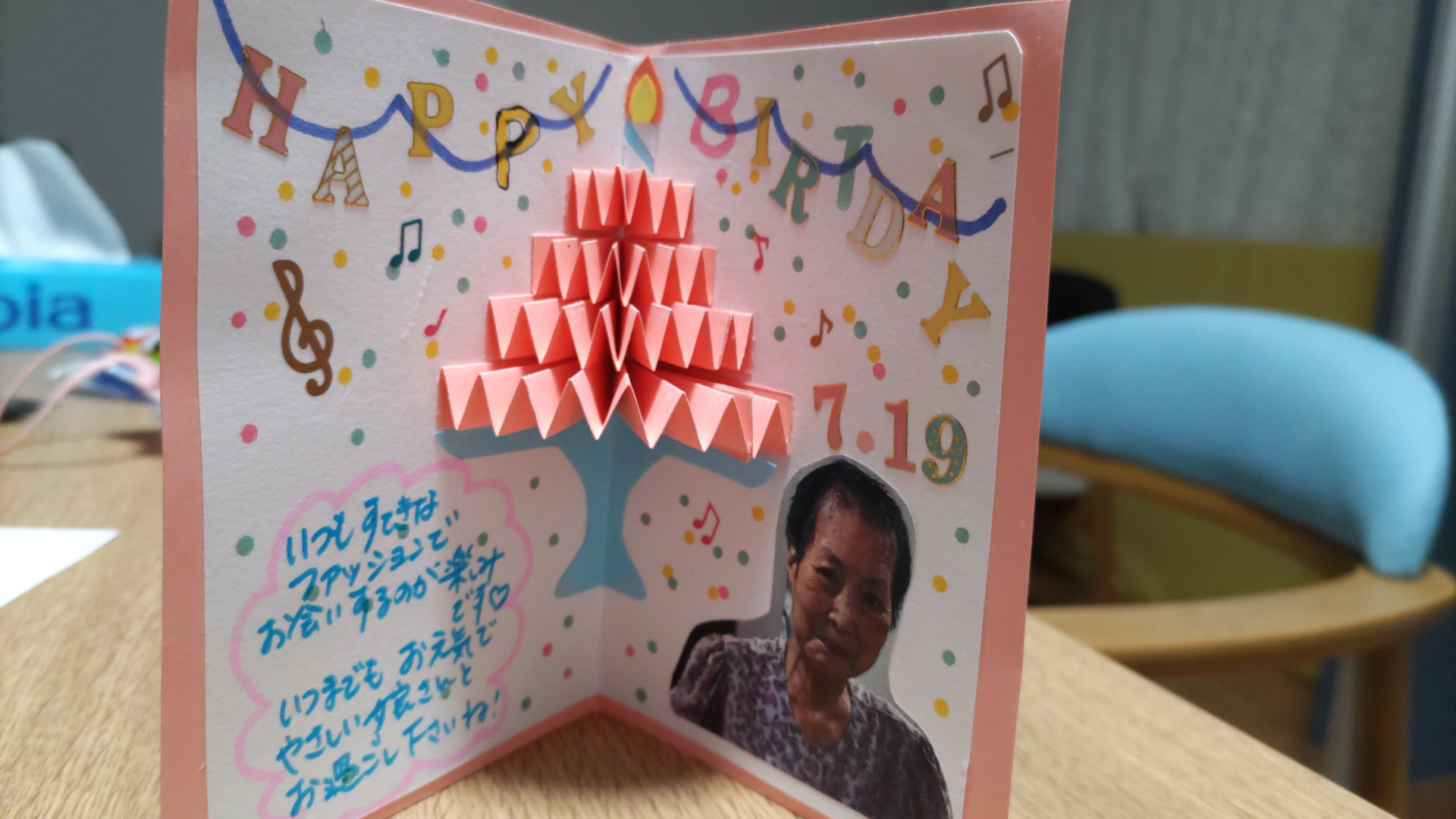 ハッピーバースデイの歌をみんなで歌い、職員からカードのプレゼントです(^^♪