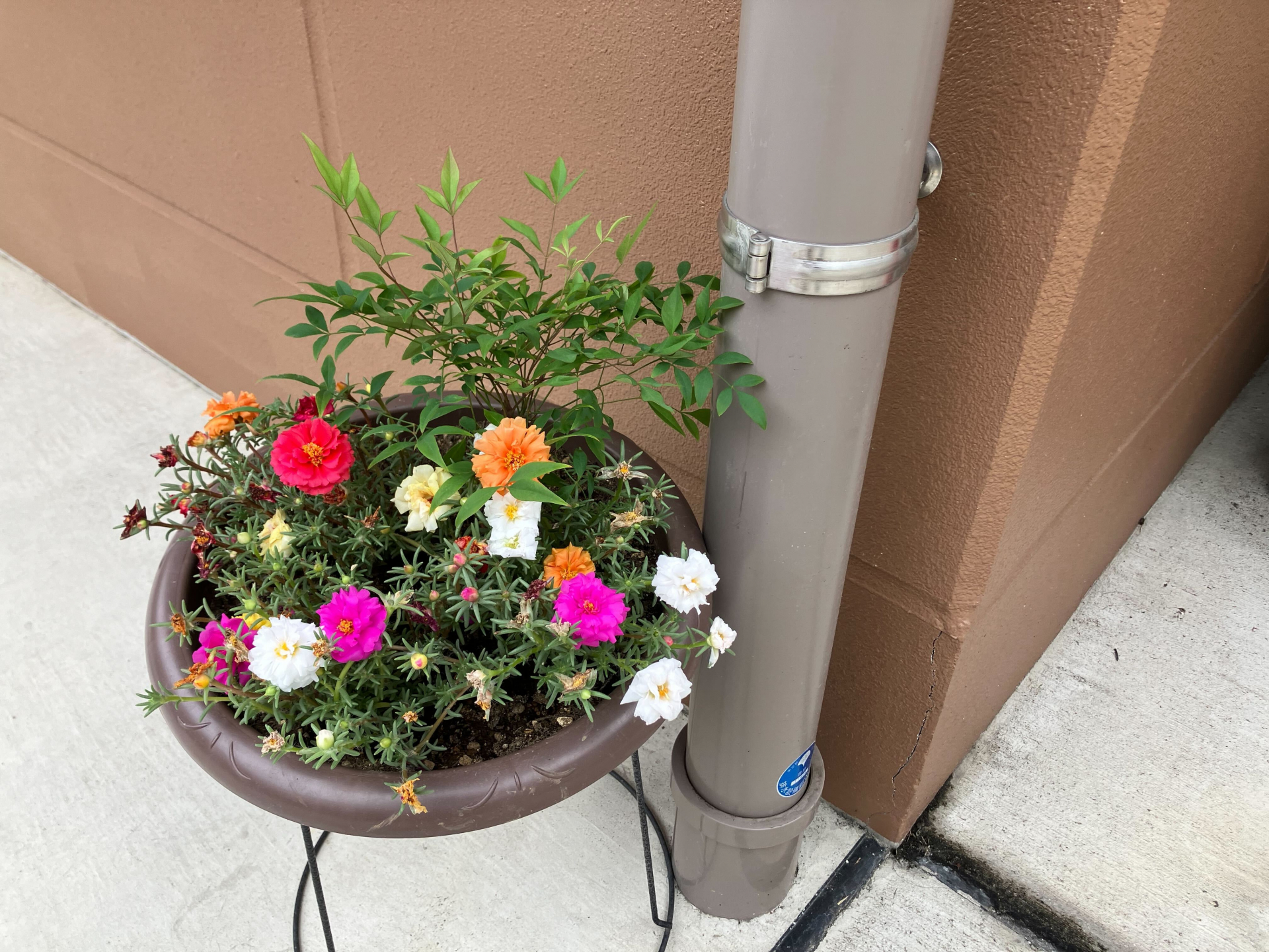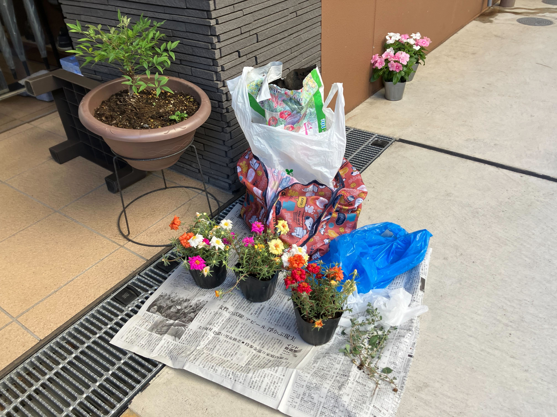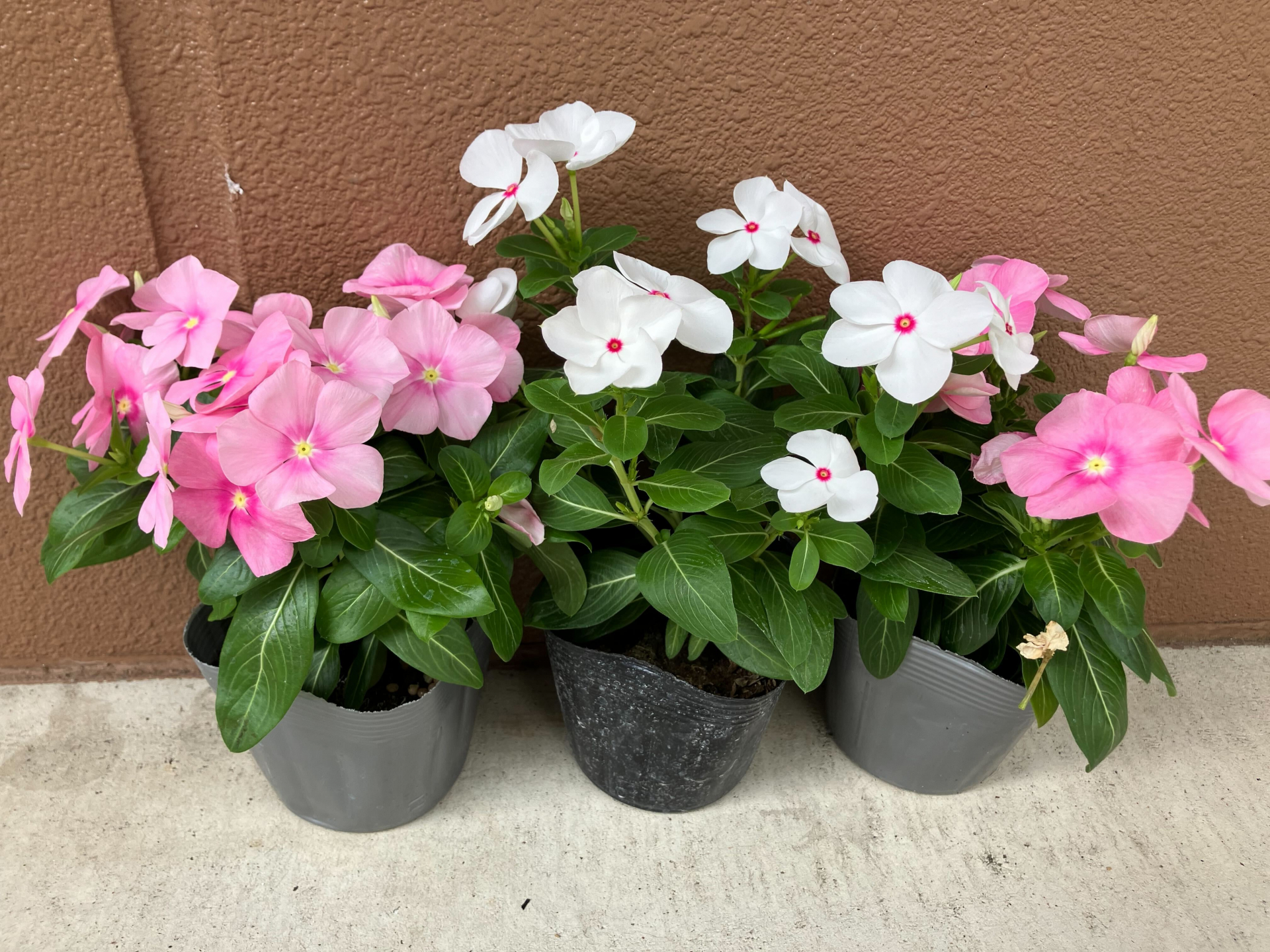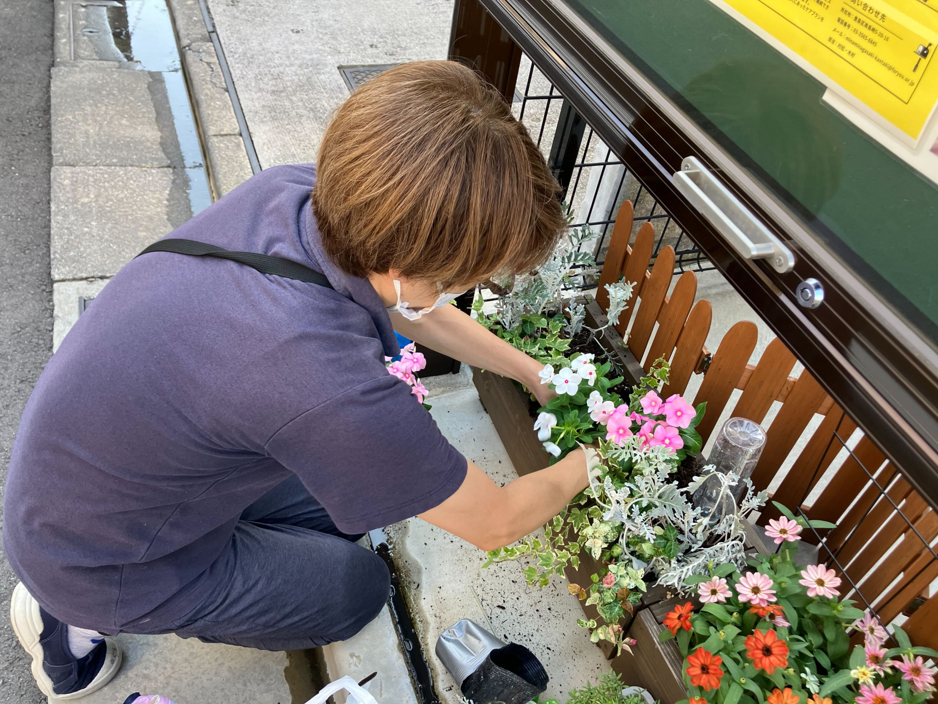 ピンクと白のお花はガーデニング部長が道路側のプランターに植えました(^^)v