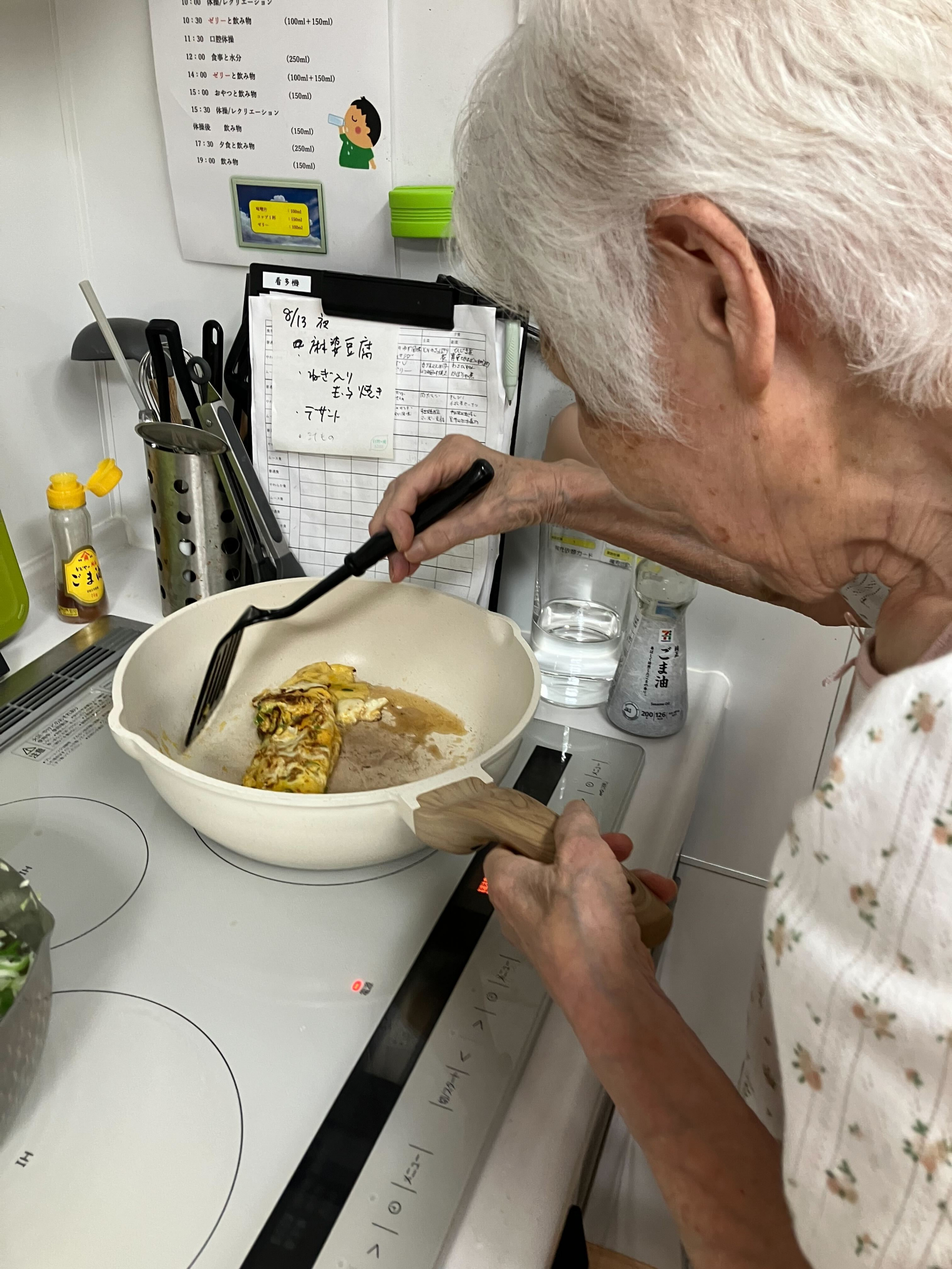 メニューは麻婆豆腐、ネギ入り卵焼き、果物です(^^)v