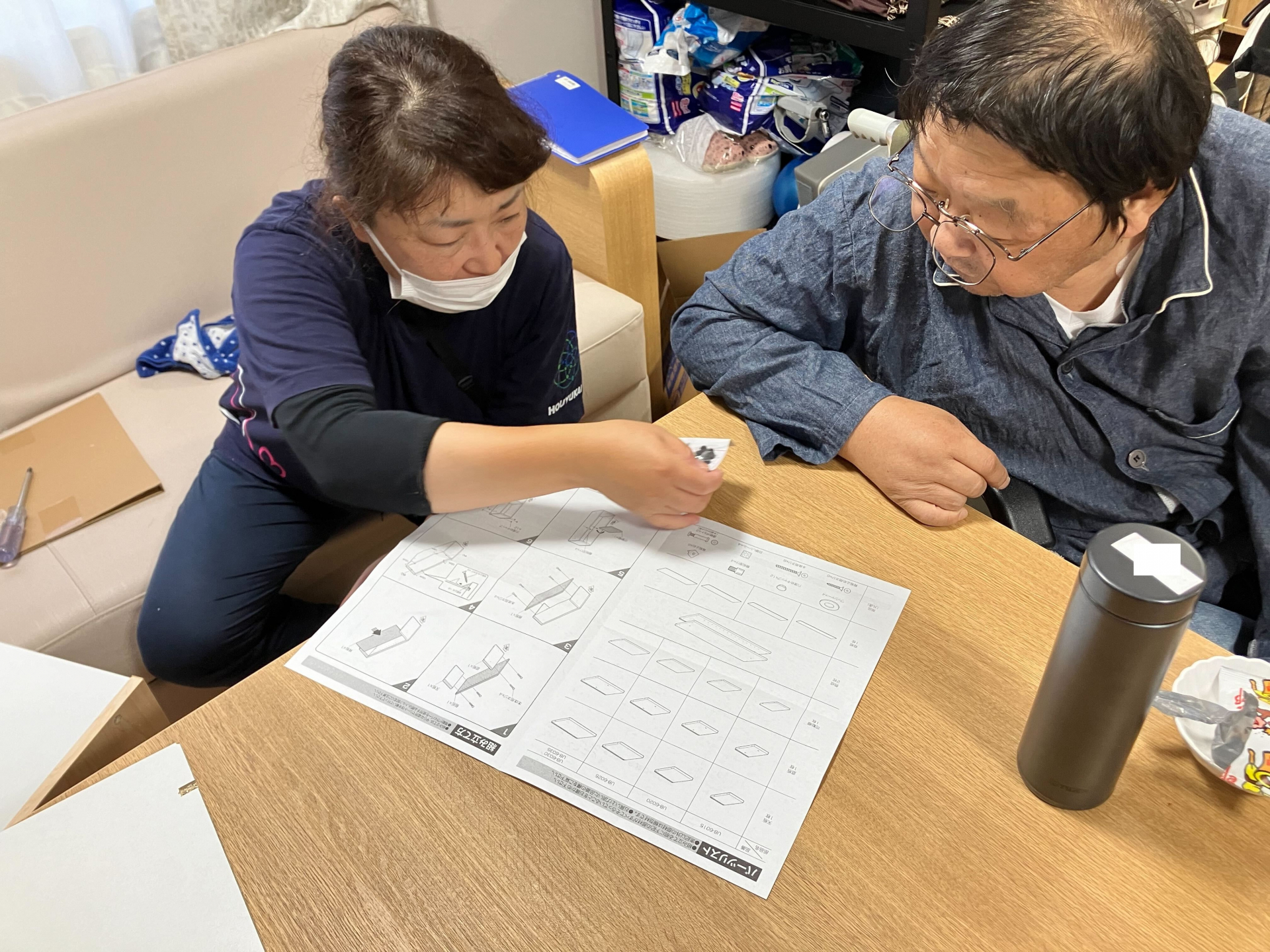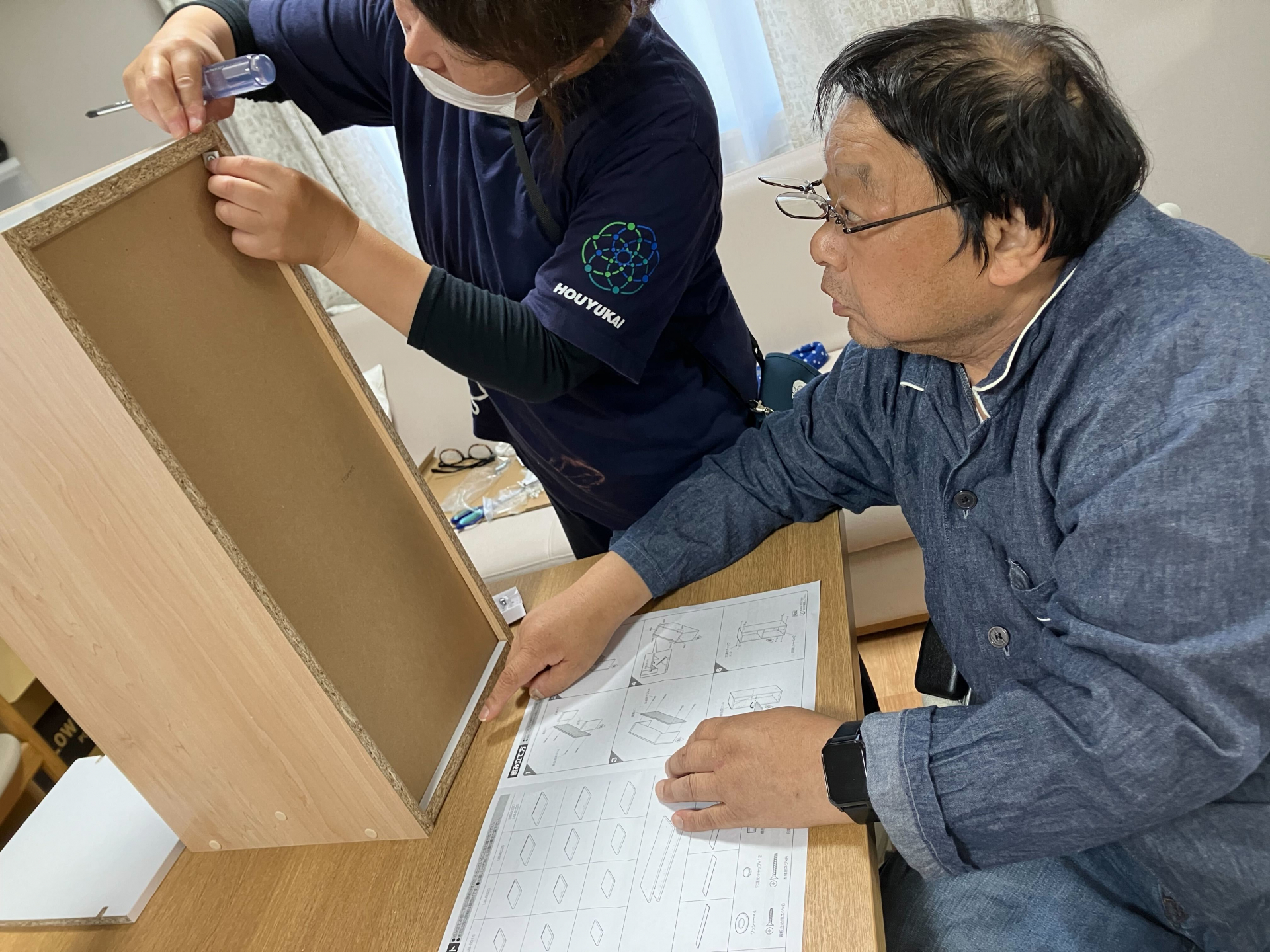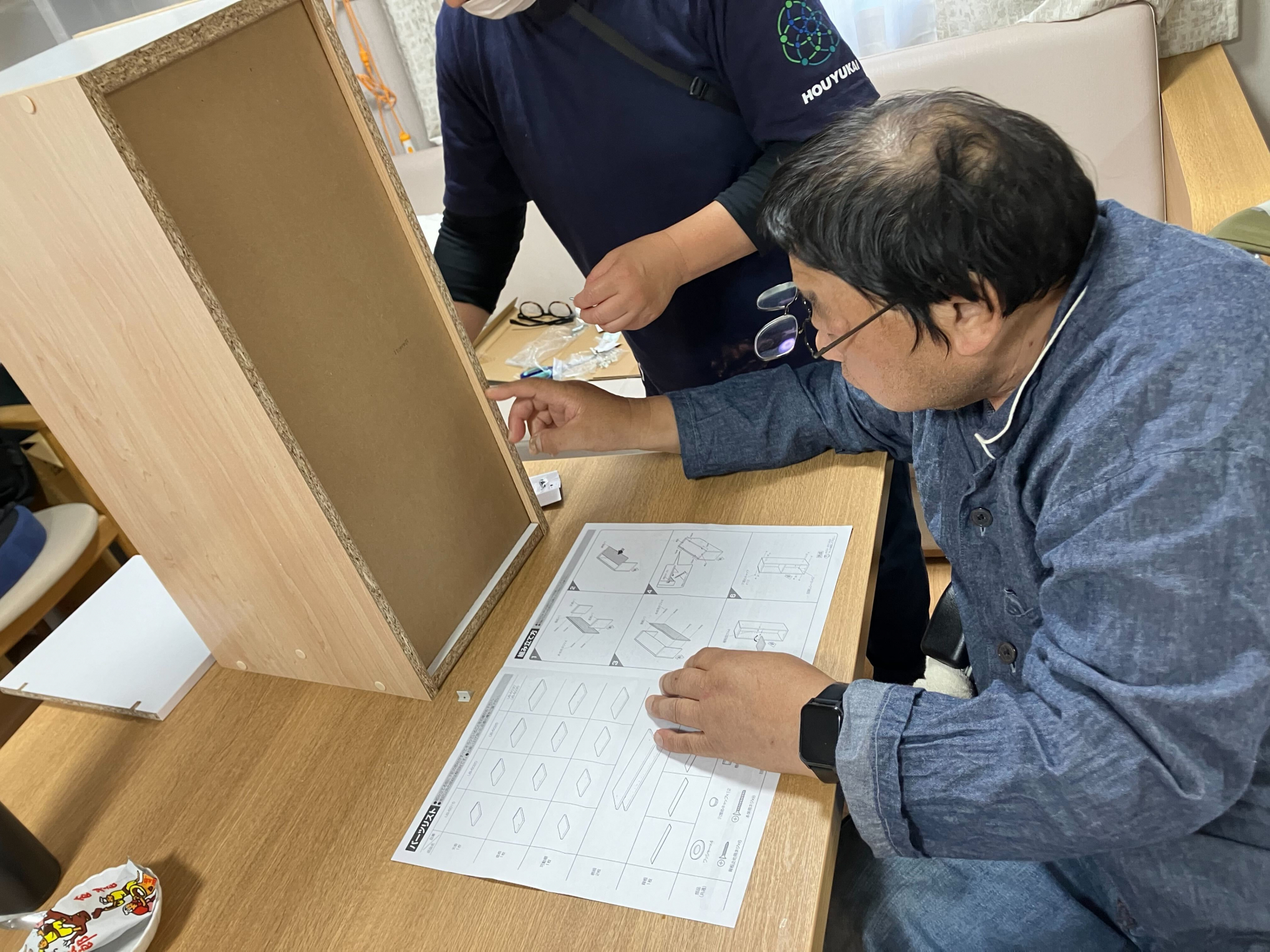 T様と職員が隙間ラックの製作中です♪