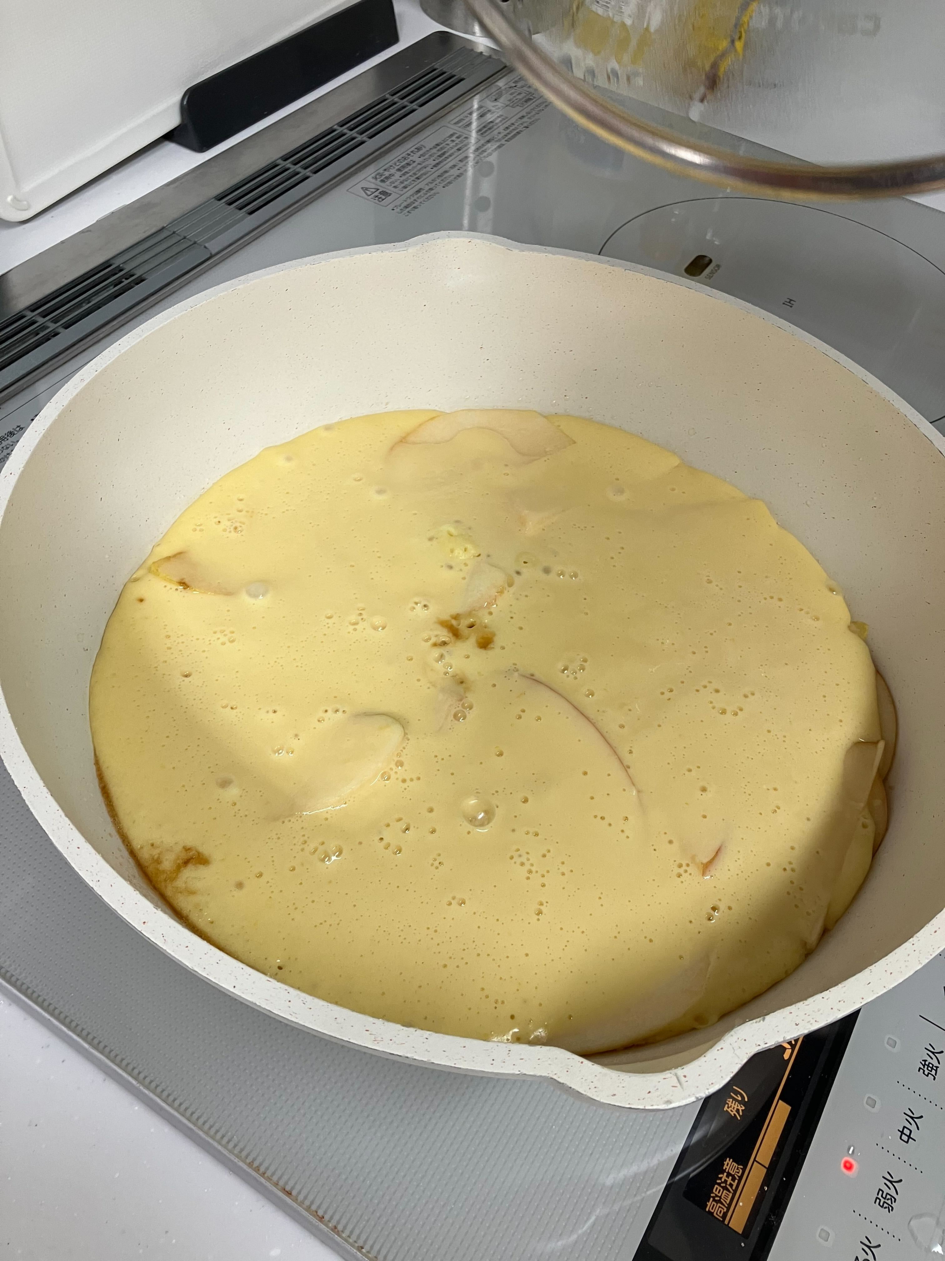 混ぜていただいた材料を並べたリンゴと共にフライパンで焼くだけ!