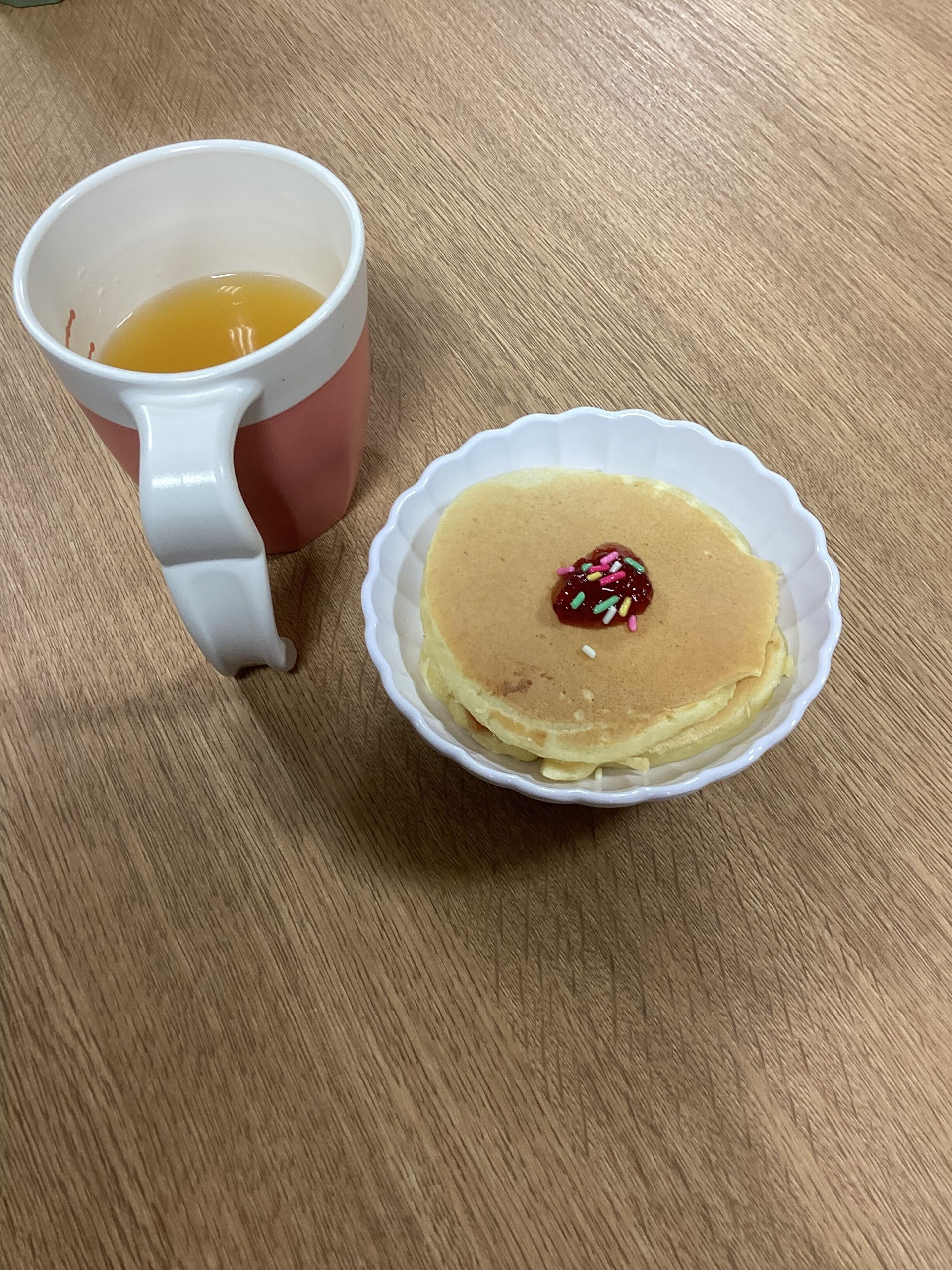 今日のおやつはホットケーキを作りました(^O^)