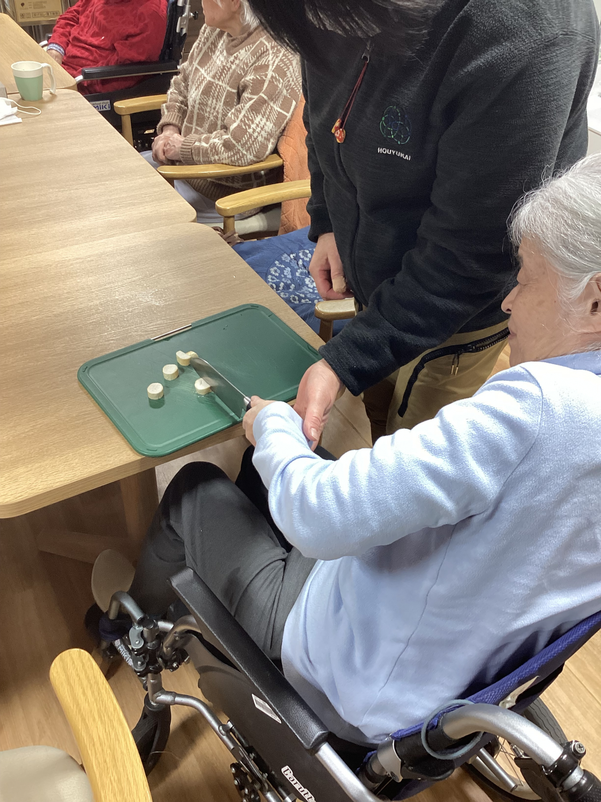 今日のお味噌汁の具材をK様にカットしていただきました(^O^)