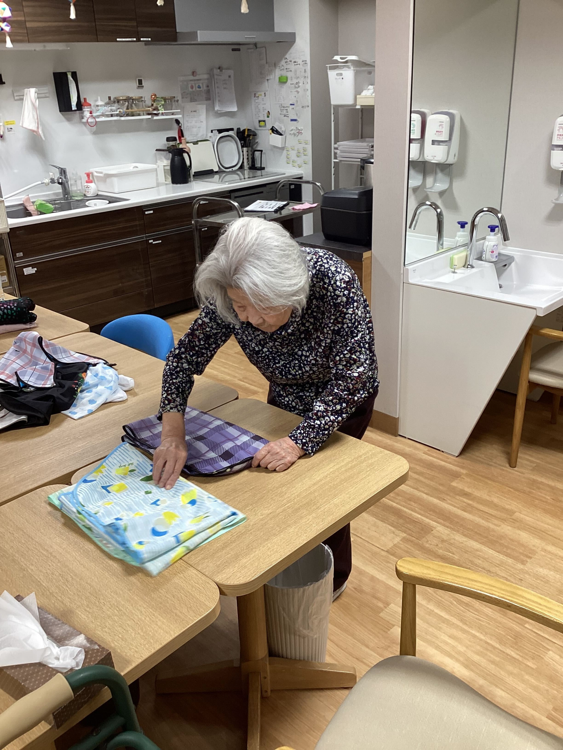 フロアではすでに起きているA様が洗濯物をたたんでくださっています(^^♪