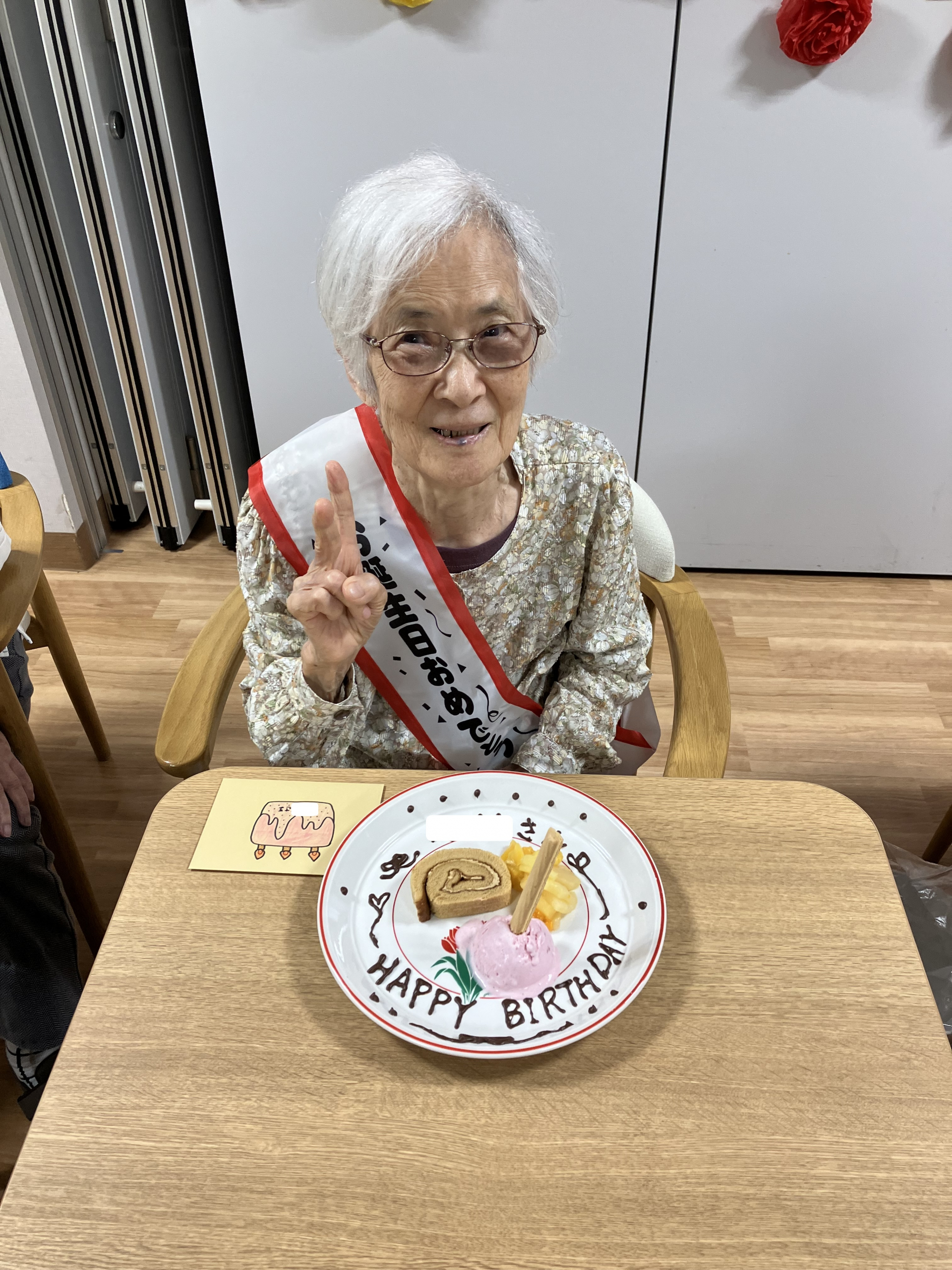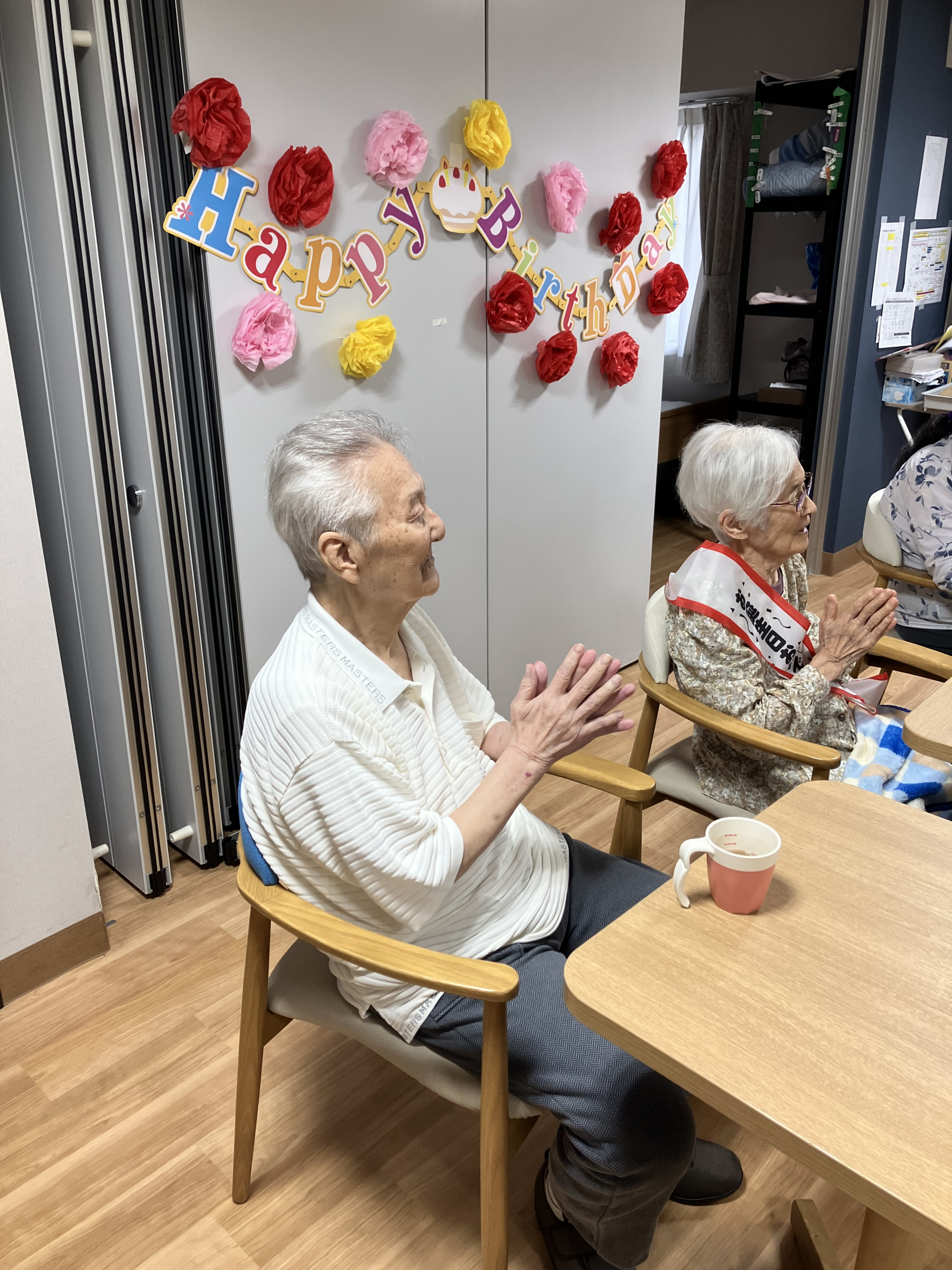 「ハッピーバースデイ」の歌をみんなで歌って、職員からカードのプレゼントです(^^)v