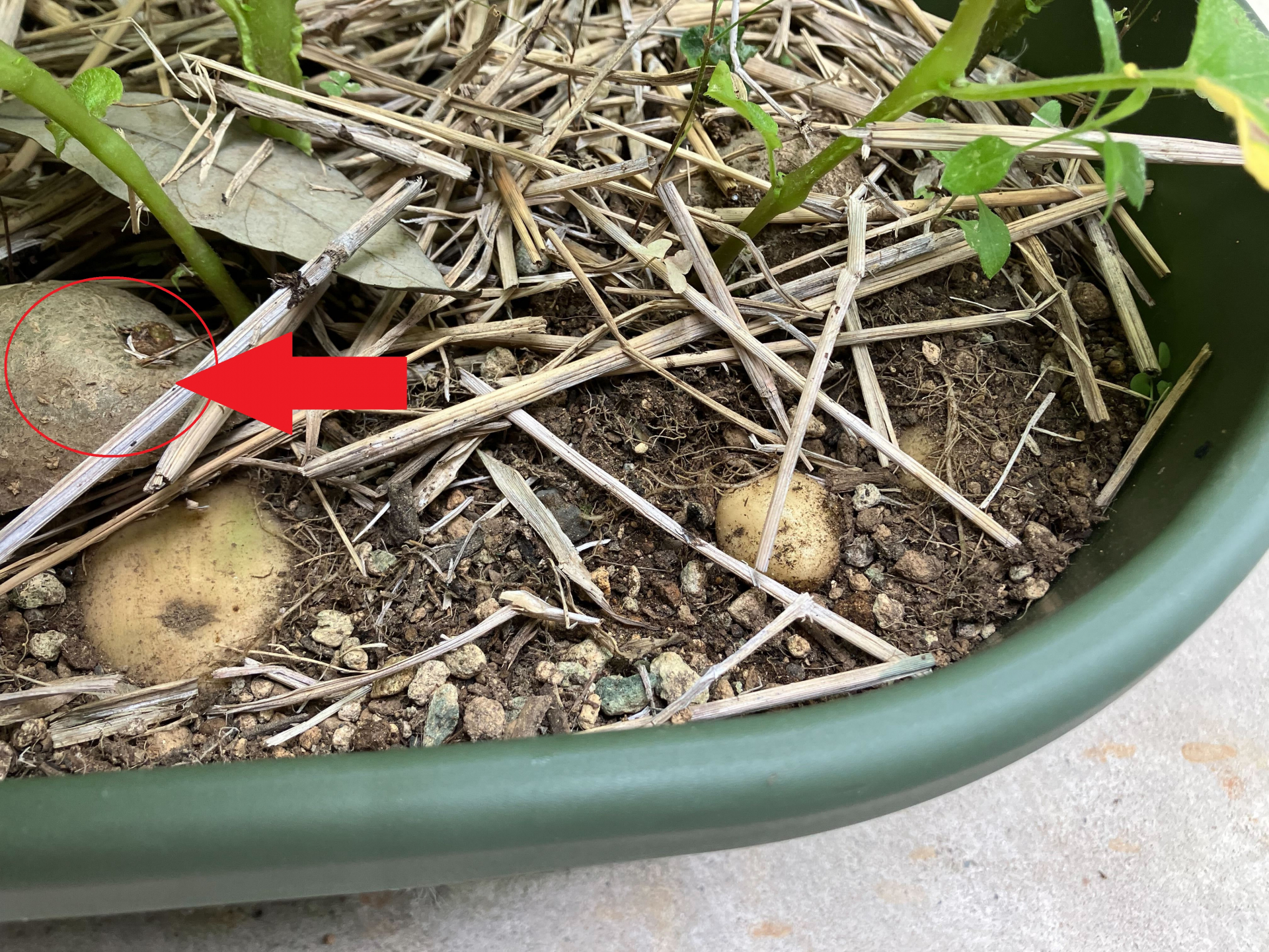 ちなみに、冷蔵庫で芽が出ていたジャガイモは赤の矢印のいもです(^O^)
