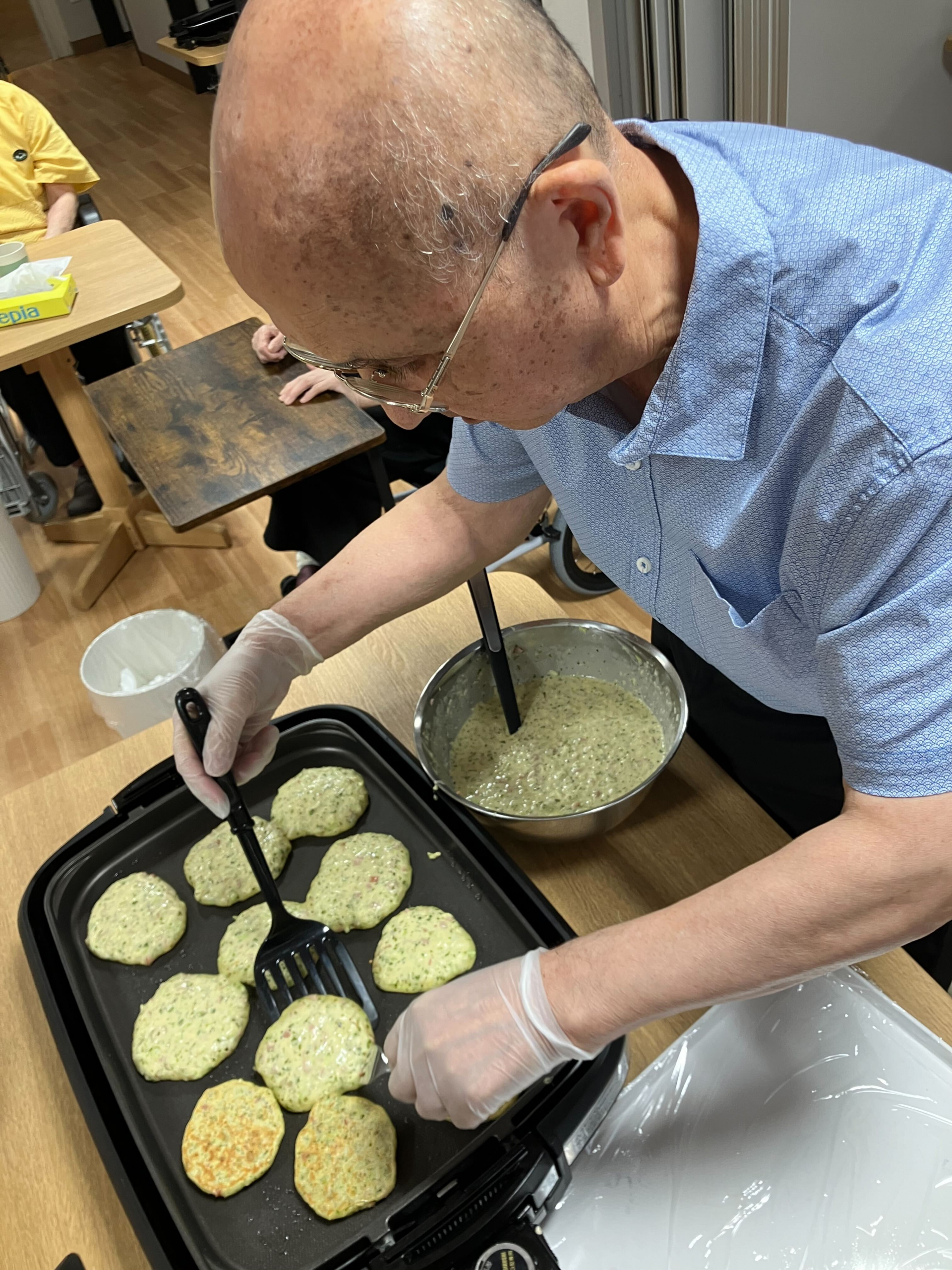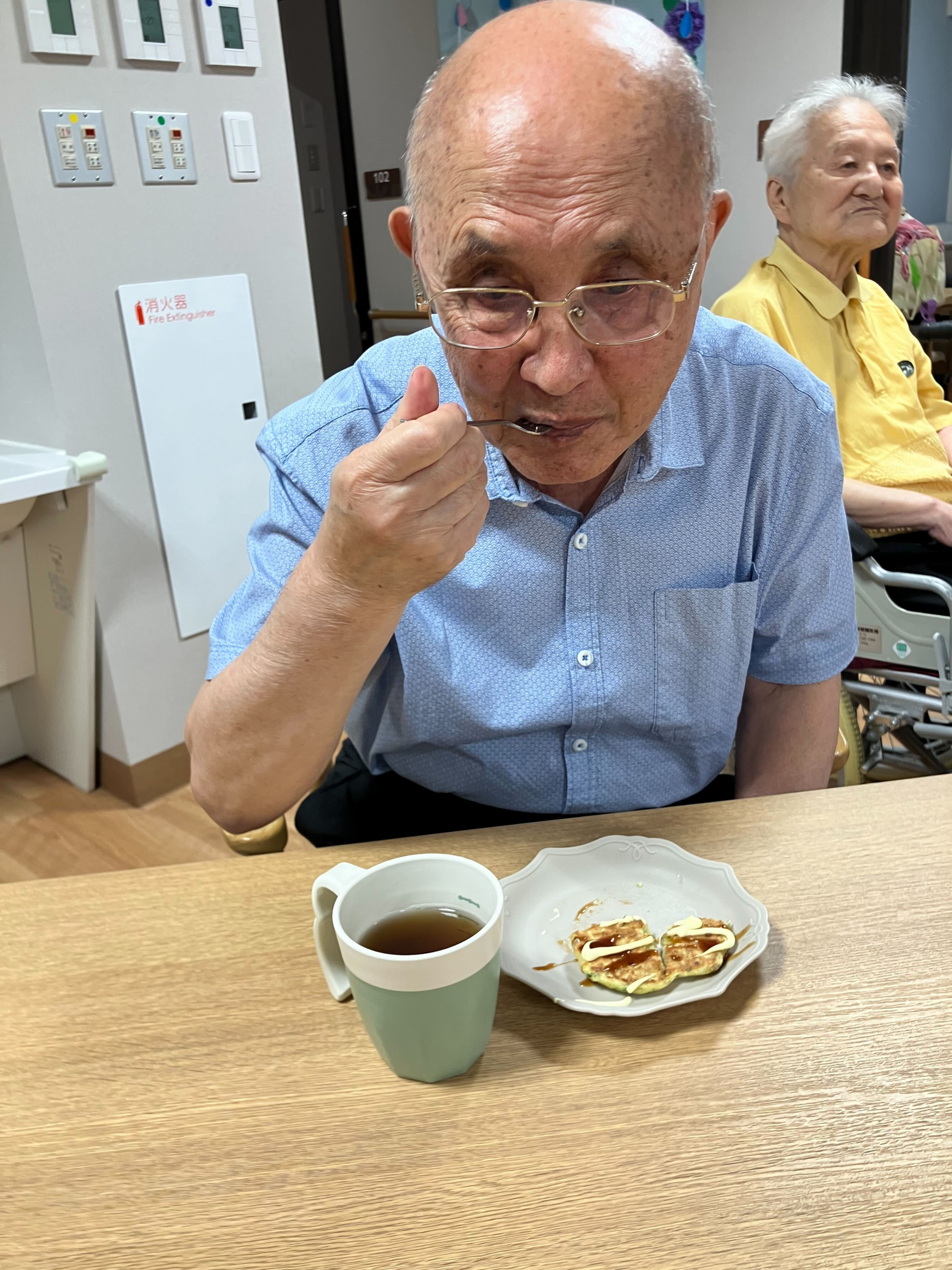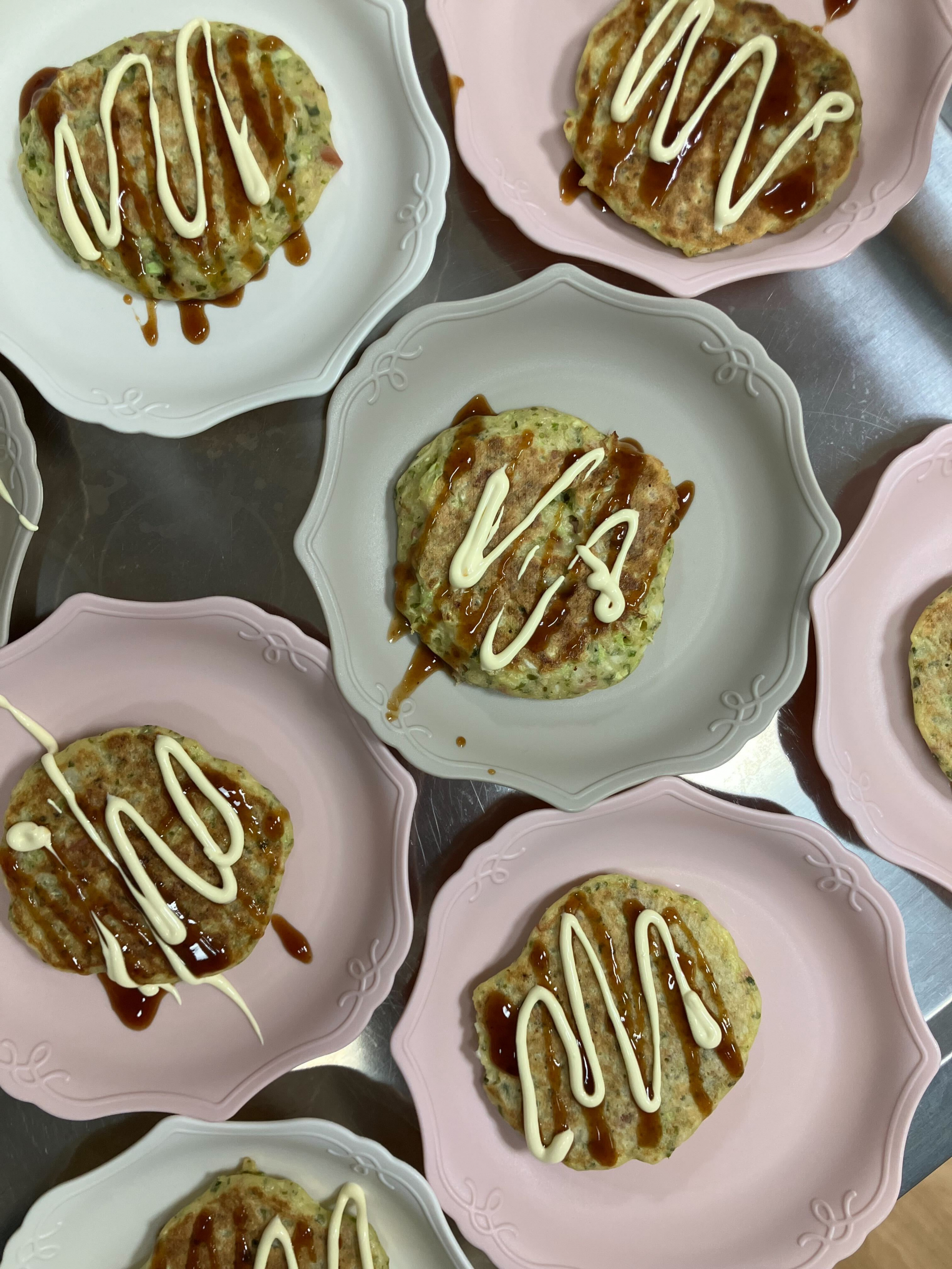 今日のおやつはとろろをたっぷり入れた「ふわふわお好み焼き」です(^^)v