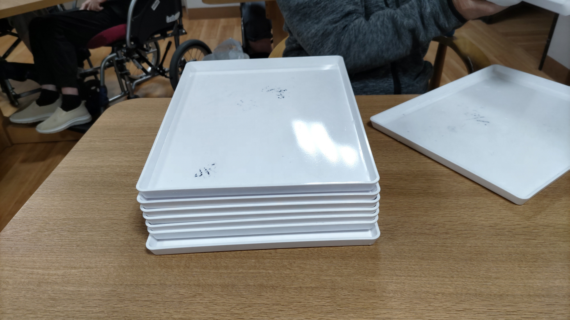 食事の時に使ったトレーを拭いてくださるのはM様です(^O^)