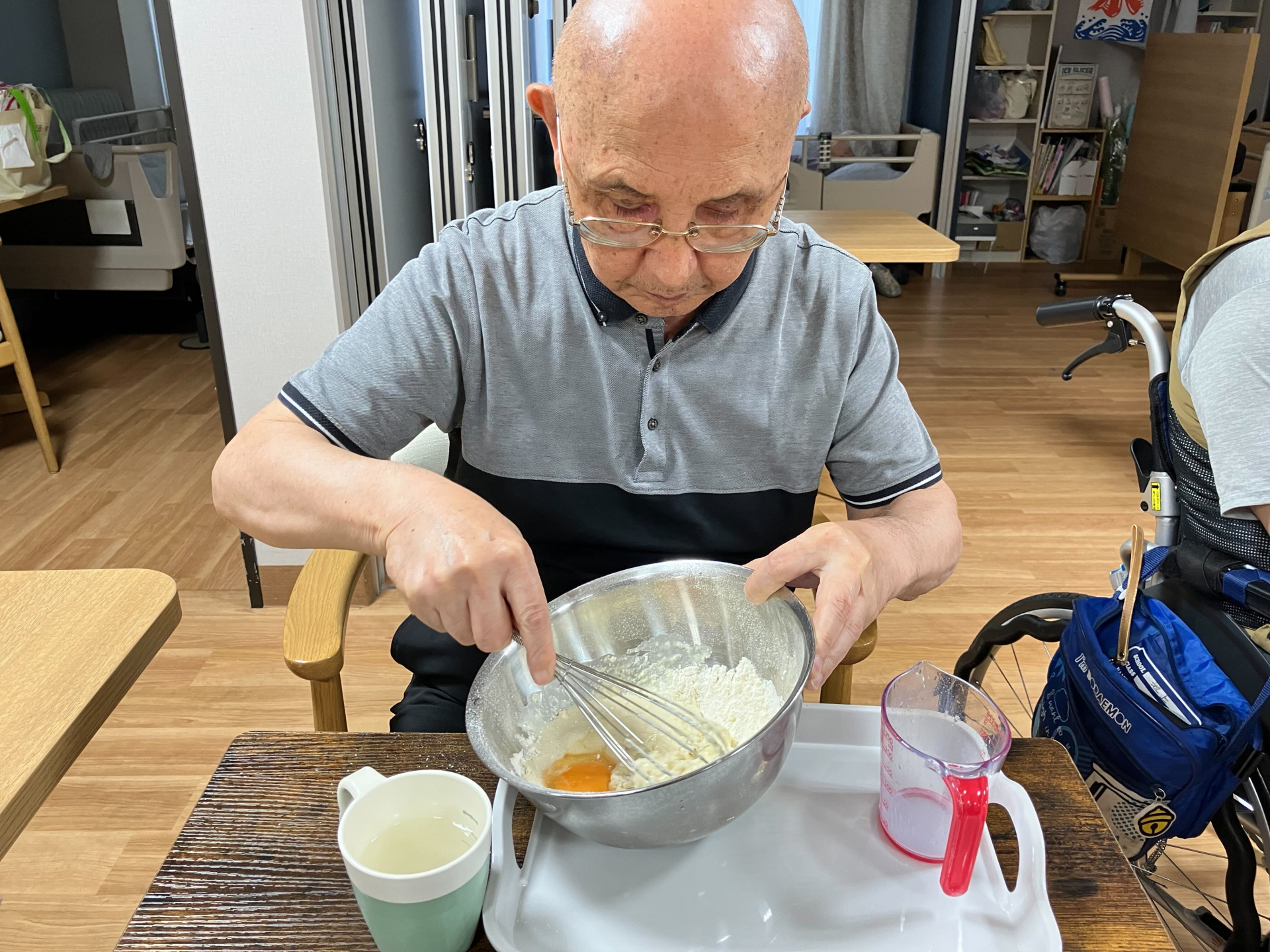 今日はM様にお手伝いいただきホットケーキ作りです(^O^)